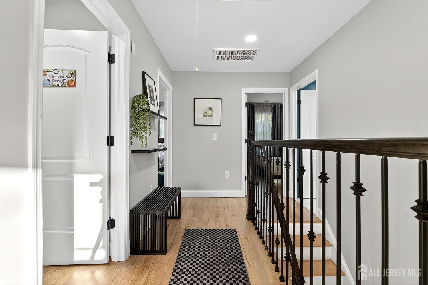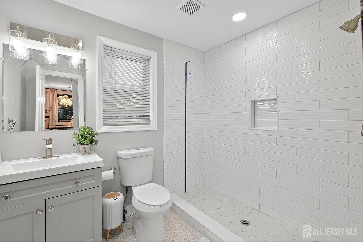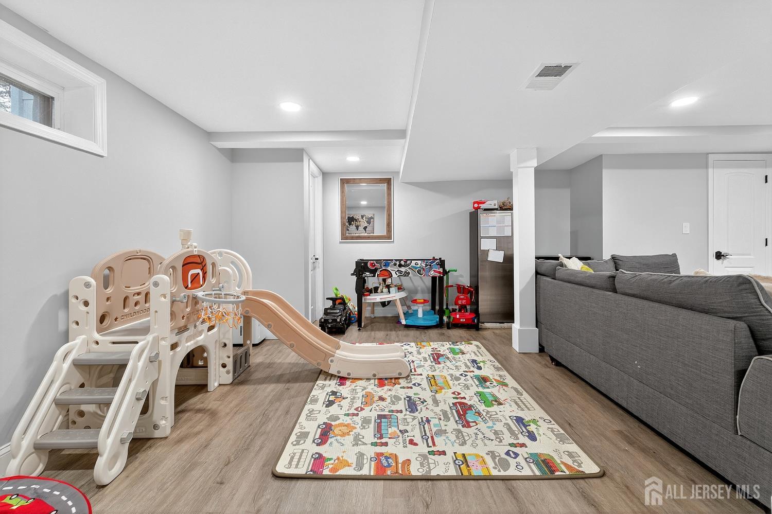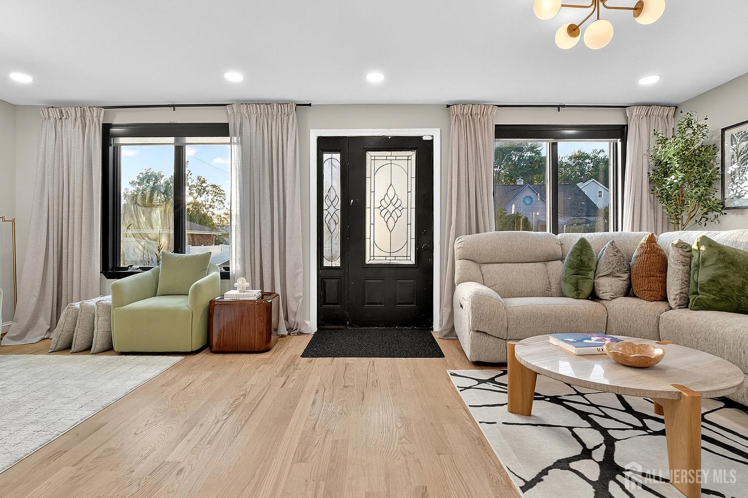 Prime location meets turn-key luxury enjoy effortless access to public transportation and a vibrant downtown scene filled with shopping, dining, and everyday conveniences. Welcome to this stunning Colonial, fully upgraded in 2022, where modern finishes and timeless design come together beautifully. Inside, the main level shines with an open-concept layout, luxury vinyl flooring, and recessed lighting throughout. The spacious living room flows seamlessly into the dining area and a true chef's kitchen complete with a center island, breakfast bar, and a sleek pull-out microwave drawer. You'll love the 42 shaker cabinetry with crown molding, gold hardware, subway tile backsplash, undermount sink, and premium stainless steel appliances including a French-door refrigerator, 5-burner gas range with overhead vent fan, dishwasher, and the built-in microwave drawer on the island. Sliding doors lead to the deck perfect for indoor-outdoor entertaining. A full first-floor bath with a tiled stall shower adds flexibility and convenience. Upstairs offers four generously sized bedrooms and two full baths including a private primary suite with a spa-like bath featuring custom tilework. The beautifully finished basement expands your living space with a large recreation area, a full bath with stall shower, and a dedicated laundry room with custom shelving ideal for movie nights, a home gym, play space, or guests. Step outside to your fully fenced backyard oasis designed for unforgettable summers. Enjoy the deck, paver walkways, and an in-ground pool complete with a waterfall and diving board perfect for entertaining, relaxing, and making memories. Additional highlights include dual-zone HVAC and stylish lighting selections throughout. Move-in ready and packed with upgrades, this home truly checks every box close to NYC-bound bus service, trains, downtown shopping and restaurants, and major roadways including 287, 1&9, GSP, and the NJ Turnpike.