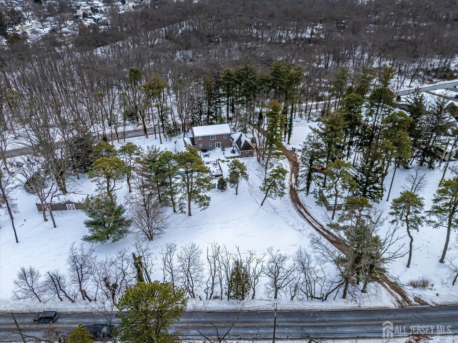 Welcome to 163 Dutch Road, your private retreat in the heart of East Brunswick! Nestled on 2.65 acres, this beautifully updated home blends space, comfort, and style. Step inside and fall in love with the open floor plan that's perfect for everyday living and entertaining. The spacious kitchen shines with a large center island, stainless steel appliances, pendant and recessed lighting, all overlooking the living room and the gorgeous backyard through sliding glass doors. The first floor also offers two large bedrooms, a cozy sitting room, a full bath, powder room, and convenient laundry room. Upstairs, the primary suite is a true retreat with an en-suite bath featuring a soaking tub and a seperate shower, a generous walk-in closet, and an additional room ideal for a home office, nursery, or extra closet space. A storage room completes the second floor. The backyard is the ultimate showstopper! Enjoy summers by the pool, relax on the paver patio, or unwind in the enormous three-season room, the perfect space for entertaining or a peaceful cup of morning coffee. It's a staycation destination right in your own backyard. The home also features a partially finished basement with additional living space and access to the three-season room, plus two sheds and a one-car garage for plenty of storage. Located within the top-rated East Brunswick school system and close to major highways and transportation, this home truly has it all: comfort, convenience, and charm.