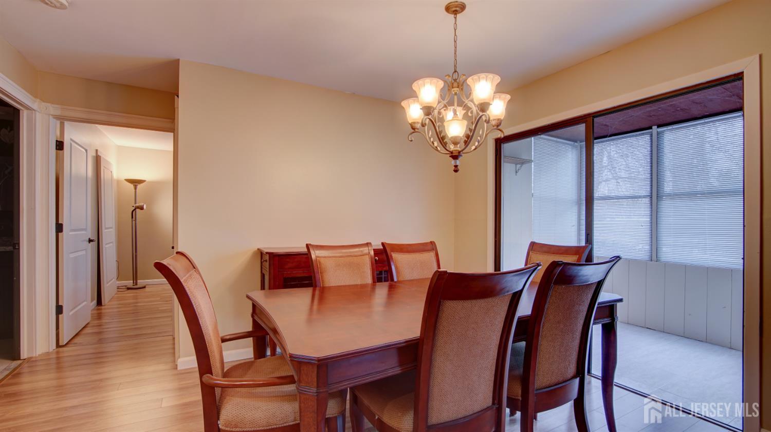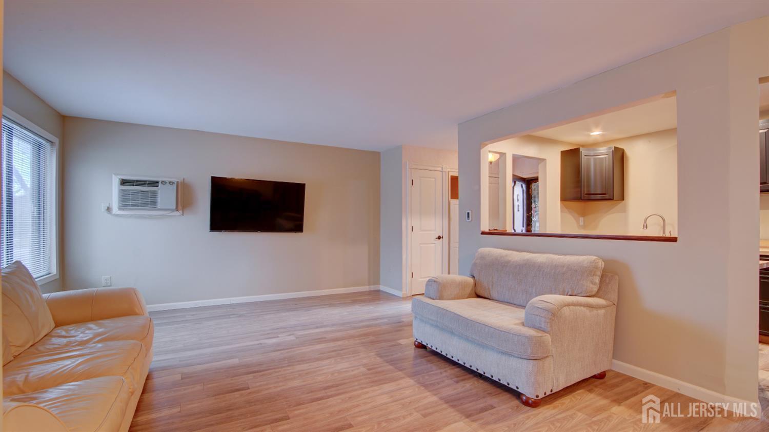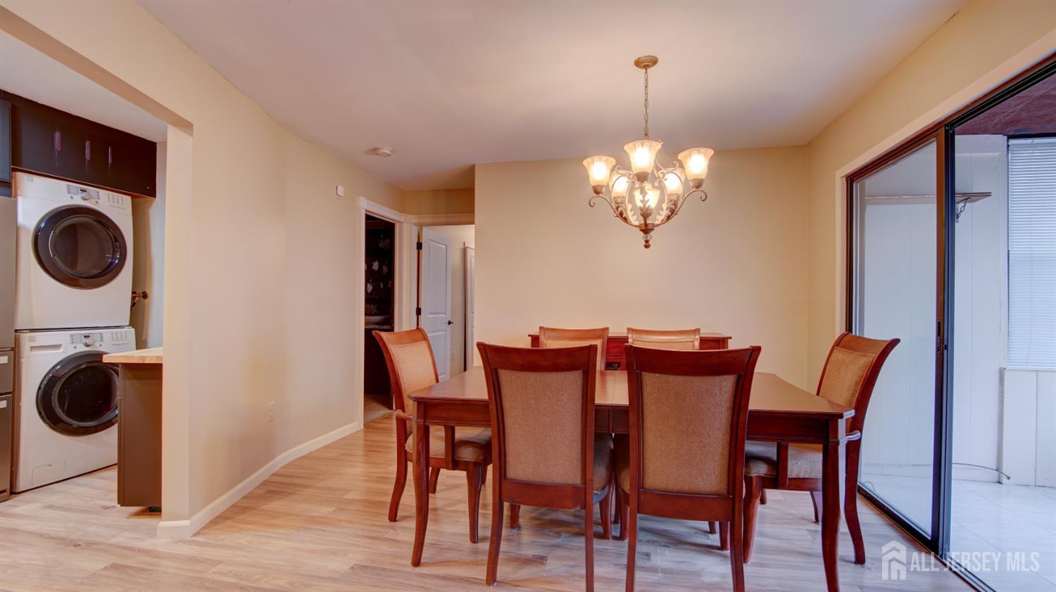 Lower-Level Unit - Beautifully renovated one-bedroom, one-bathroom condominium located in the highly desirable 55+ community of Covered Bridge. This residence features an updated kitchen with new countertops and stainless steel appliances, along with a spacious open-concept living and dining area. The generously sized bedroom offers two oversized closets, providing ample storage. An enclosed porch adds versatile space for relaxation or extra storage. Additional highlights include in-unit laundry and laminate flooring throughout. Residents enjoy exceptional community amenities such as a clubhouse, in-ground pool, tennis courts, and meticulously maintained common areas. Conveniently located near shopping, dining, Route 9, and public transportation.