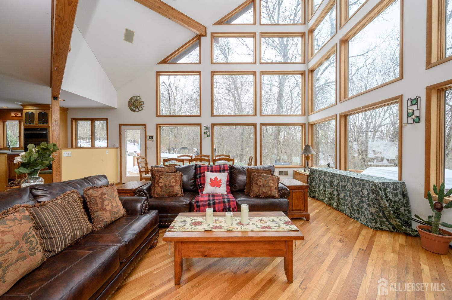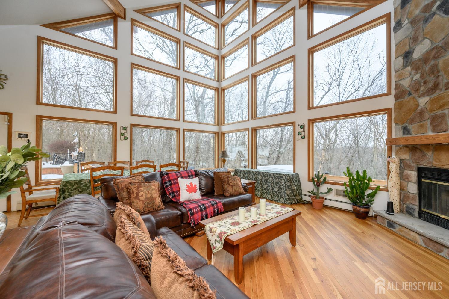 Look no further! Majestic Acres premieres this magnificent 5 Bed 4.5 Bath Contemporary Home with Walk-out Finished Basement, blissful Master Suite, Oversized 2 Car Garage, and In-Ground Pool, sure to impress! Tucked away on a quiet cul-de-sac on a private 2.6 acre lot with over 3600+ sq ft of finished luxurious living, this custom home offers a rare blend of scale, sophistication, and seclusion, presenting a lifestyle designed for those seeking both privacy and presence. Double door entry and grand tiled foyer with double staircase sets the stage for a lasting impression, offering expansive entertaining areas, rich woodwork, soaring ceilings, gleaming hardwood flooring, large picture windows, and plenty of natural light all through. The light and bright Great room is the heart of the home, adorned with floor to ceiling windows with breathtaking views, rich stonework, raised ceilings, and a cozy wood burning fireplace, blending indoor comfort with the beauty of the outdoors. Country eat-in-kitchen offers sleek SS appliances, ample cabinet storage, center island, and delightful breakfast area. Formal living room, elegant dining room, versatile home office, and den with slider to the rear deck offer plenty of space to entertain, relax, or work from home with ease. Convenient 1/2 bath and laundry room with laundry chute round out the main level of this gem. Upstairs, find two more full baths along with all 4 generous bedrooms, inc the spacious Master Suite. MBR boasts its own gas fireplace, private balcony, walk-in closet, and luxe ensuite bath with dual sinks, stall shower, and jetted tub. Huge finished walk-out basement adds to the package, offering a large multi-use rec room, full bath, utilities and storage. Resort-like backyard is one to be admired, featuring a stunning in-ground pool, wrap-around deck, patio, 14x14 storage shed, and serene nature views. Oversized 2 car garage with ample parking, multi-zone heating and cooling, the list of features goes on! Don't miss out! *Coming Soon - Showings begin Thurs 2/19*