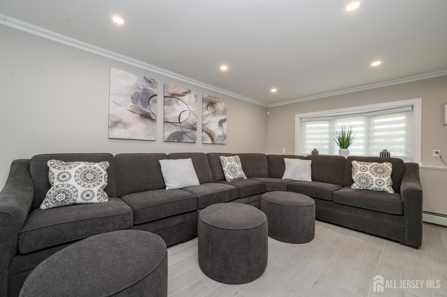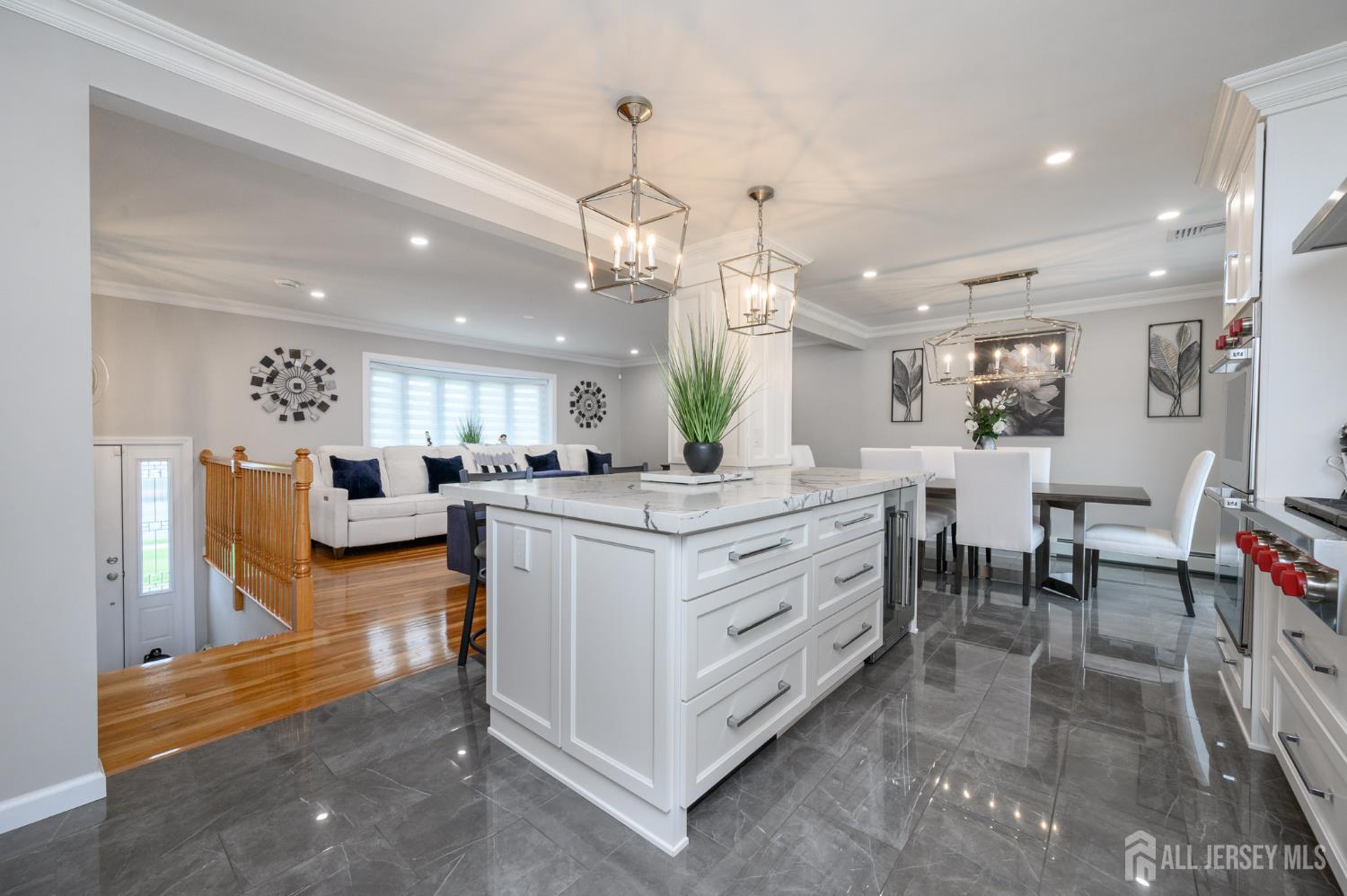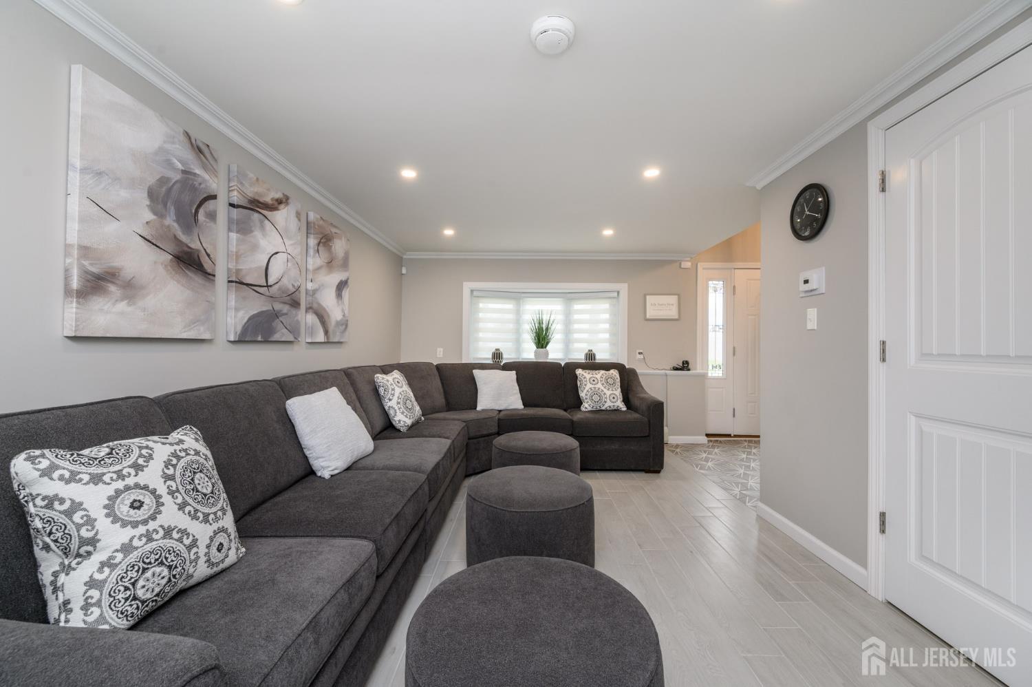 Home Sweet Home! Beautiful 3 Bed 2 Bath Turn-Key Split with 1 Car Garage in the sought after Chestnut Hill section of desirable Clark is sure to impress! Well maintained inside and out with curb appeal and plenty of modern upgrades all through, move-in-ready and waiting for you. Inviting foyer entry welcomes you in to find a spacious and sophisticated interior with generous room sizes, hardwood floors that shine, recessed lighting, and plenty of natural light all through. Light and bright living room with crisp crown molding and big bay window brings in tons of natural light, and flows seamlessly into the elegant dining room and gorgeous open eat-in-kitchen for easy living and entertaining. Formal dining room and eat-in-kitchen are adorned with sleek ceramic tile flooring, crown molding, and sliders off the dining area open to the rear deck for easy al fresco dining. Gourmet eat-in-kitchen will delight any home chef, offering top-of-the-line SS appliances, upgraded Quartz counters, tiled backsplash, ample cabinet storage, and center island that is ideal for gathering. Head upstairs to find the beautifully updated main full bath, along with all 3 generous bedrooms with plush carpets and lighted ceiling fans for added comfort. The finished lower level holds a beautiful family room with sliders to the outdoor paver patio, along with a 2nd upgraded full bath. Basement with laundry facilities, sink, and utilities offers plenty of storage space. Peaceful, park-like backyard with 20x25 Trex deck, paver patio and storage shed is partially fenced-in for your privacy and comfort, and is perfect for summer gatherings. 1 car garage with double wide paver drive offers plenty of guest parking & lighting. Paved walkways & exterior lighting w/timer adds to this home's ambiance, along with beautiful landscaping. This home also features leaf gutter guards and 8 outdoor security cameras around the property. All in a great neighborhood, just minutes to the elementary school, close to parks, shopping, dining, and easy access to the GSPWY for a seamless commute. Don't miss out! Truly a Move-in-Ready MUST SEE!! **Showings Begin 3/28/26**