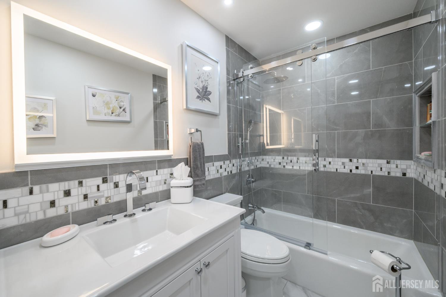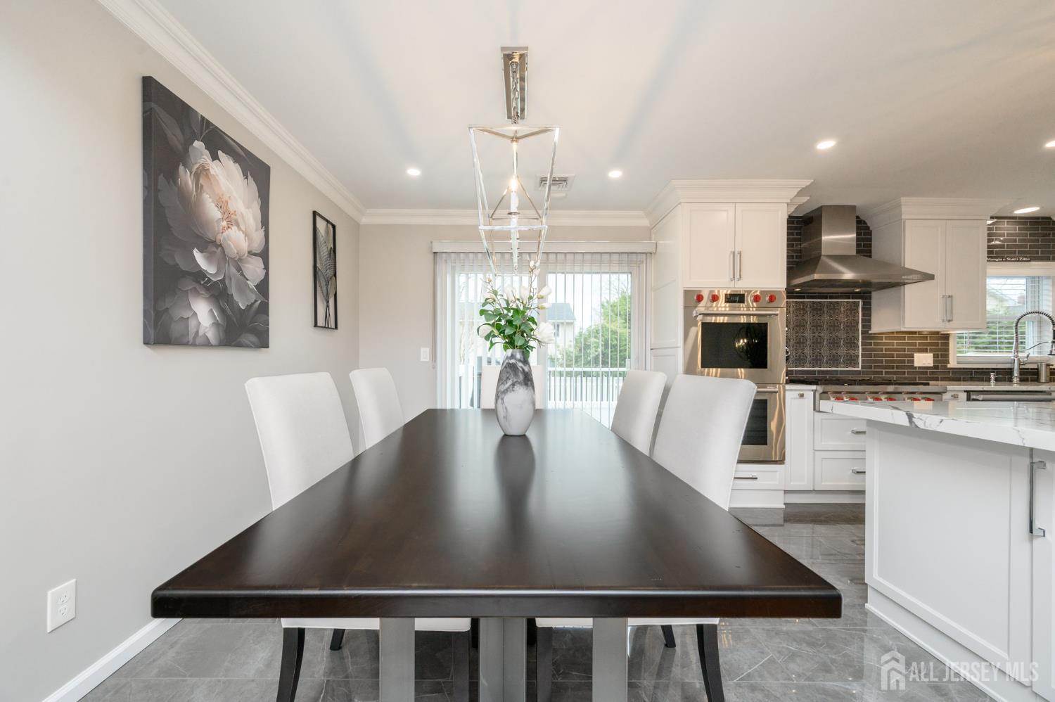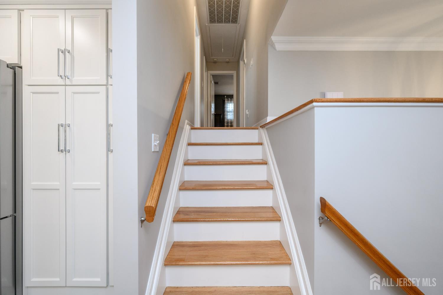 Home Sweet Home! Beautiful 3 Bed 2 Bath Turn-Key Split with 1 Car Garage in the sought after Chestnut Hill section of desirable Clark is sure to impress! Well maintained inside and out with curb appeal and plenty of modern upgrades all through, move-in-ready and waiting for you. Inviting foyer entry welcomes you in to find a spacious and sophisticated interior with generous room sizes, hardwood floors that shine, recessed lighting, and plenty of natural light all through. Light and bright living room with crisp crown molding and big bay window brings in tons of natural light, and flows seamlessly into the elegant dining room and gorgeous open eat-in-kitchen for easy living and entertaining. Formal dining room and eat-in-kitchen are adorned with sleek ceramic tile flooring, crown molding, and sliders off the dining area open to the rear deck for easy al fresco dining. Gourmet eat-in-kitchen will delight any home chef, offering top-of-the-line SS appliances, upgraded Quartz counters, tiled backsplash, ample cabinet storage, and center island that is ideal for gathering. Head upstairs to find the beautifully updated main full bath, along with all 3 generous bedrooms with plush carpets and lighted ceiling fans for added comfort. The finished lower level holds a beautiful family room with sliders to the outdoor paver patio, along with a 2nd upgraded full bath. Basement with laundry facilities, sink, and utilities offers plenty of storage space. Peaceful, park-like backyard with 20x25 Trex deck, paver patio and storage shed is partially fenced-in for your privacy and comfort, and is perfect for summer gatherings. 1 car garage with double wide paver drive offers plenty of guest parking & lighting. Paved walkways & exterior lighting w/timer adds to this home's ambiance, along with beautiful landscaping. This home also features leaf gutter guards and 8 outdoor security cameras around the property. All in a great neighborhood, just minutes to the elementary school, close to parks, shopping, dining, and easy access to the GSPWY for a seamless commute. Don't miss out! Truly a Move-in-Ready MUST SEE!! **Showings Begin 3/28/26**