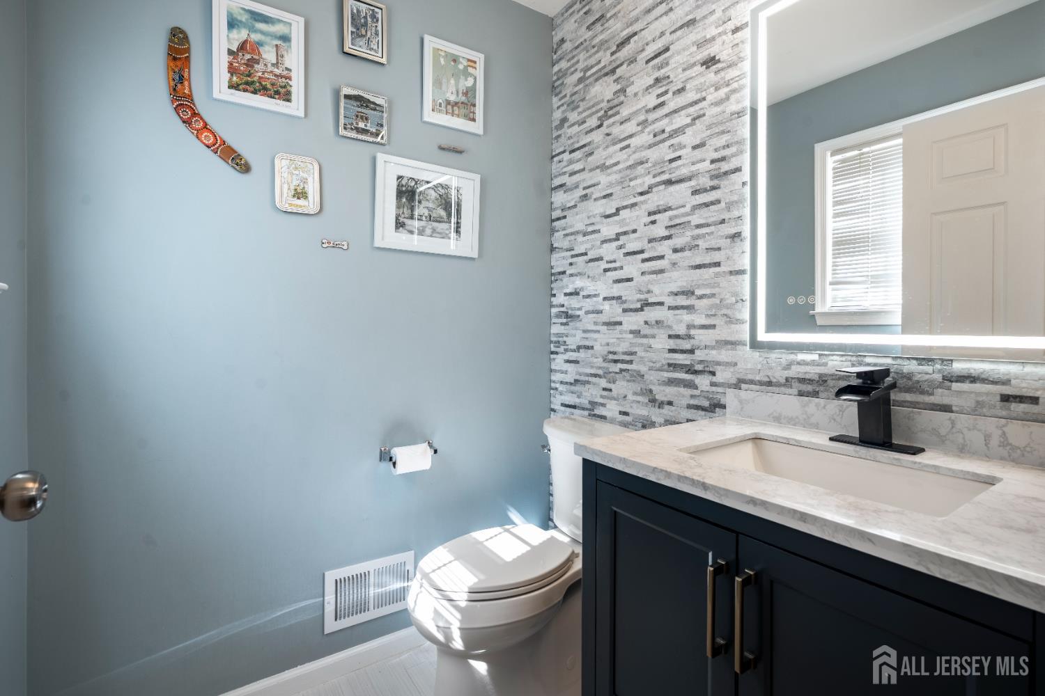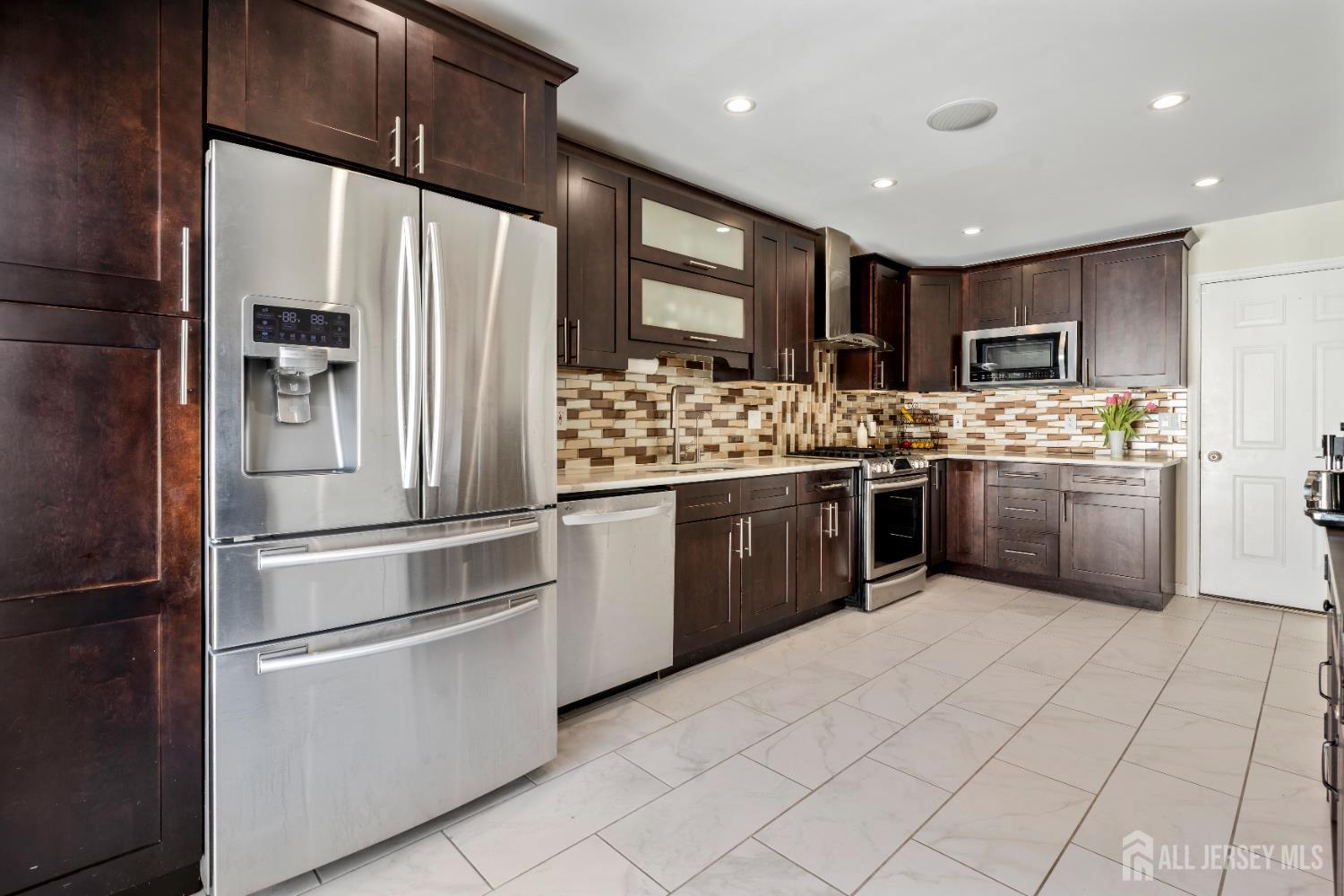 Welcome to this open & bright colonial custom home located in a quiet neighborhood in the most desirable Park Ridge community. This home features hardwood floors and an abundance of windows for lots of natural light. Enjoy cooking in the first-class, custom gourmet kitchen with s/s appliances, Granite counter tops. Relax in the soaring two-story family room with a wood-burning fireplace. The spacious family room & formal dining room complete the main level. The upper level boasts a master bedroom with large organised His & Her walk-in closets & a master bath with a separate tub & shower stall, two additional good-sized bedrooms & the main bath. The laundry room is conveniently located on the upper level & can easily be converted to a home office. The basement has a sizable space that would be great for a recreation or exercise room, utility room & storage space. A glass sliding door from the kitchen leads to a fenced-in backyard with a patio. Great for entertaining family & friends! Electric car outlet in garage. Newer roof (2 years old) and HVAC system 5 years old . Community living with NO HOA fee! Easy access to Rt 18, Rt 1, NJ Tpk, Downtown New Brunswick & Rutgers University. Very close to NYC buses, shopping, dining & recreation. East Brunswick Award-Winning Blue Ribbon Schools!