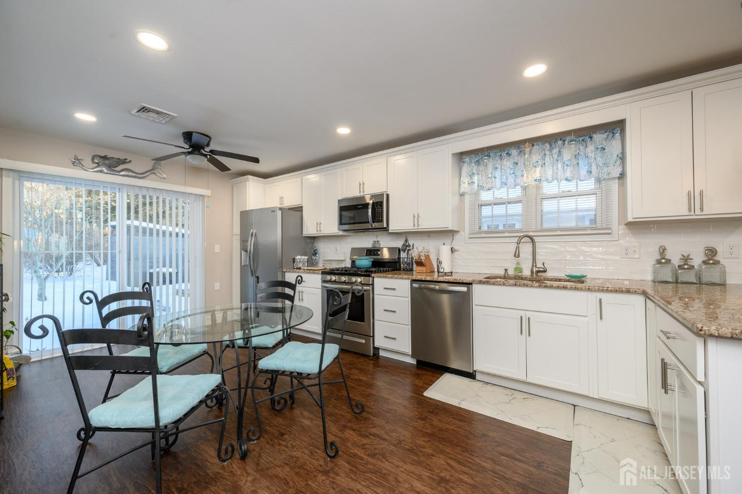 Home Sweet Home! Holiday City Silverton's 55+ Community premieres this lovely 2 Bed 1 Bath Ranch with 1 Car Garage, ready and waiting for you! Beautifully maintained and fully renovated in 2020, this home boasts big ticket upgrades like a newer roof, newer heating and central air, newer luxury hardwood/laminate flooring, newer doors, newer windows, newer hot water heater, upgraded kitchen, and so much more! Step in to find a spacious, accessible, light and bright open concept layout for comfortable living and entertaining, with generous room sizes, recessed lighting, and plenty of natural light all through. Sunset views from the large front picture window are a true delight. The living room flows right into the charming dining area and sleek, renovated eat-in-kitchen. The EIK offers sleek SS appliances, gorgeous granite counters, tiled backsplash with ample cabinet storage, delightful breakfast bar, and sliders to the rear patio for easy al fresco dining. Down the hall, find the convenient in-unit laundry, the upgraded full bath with handi-accessible stall shower, and 2 generous bedrooms with ample closets. Plush, park-like backyard with patio and storage shed is perfect for enjoying your morning coffee or summer bbq's. Central air/forced heat, 1 car garage with driveway parking, and plenty of amenities to indulge! Enjoy amenities such as the clubhouse, heated saltwater outdoor pool, and shuffleboard courts, along with an on site lake which is just a 5 minute scenic stroll away, for fishing and boating. Public transit bus stop just minutes away. All of this and more, ready and waiting for you. Don't miss out! Come and see TODAY!