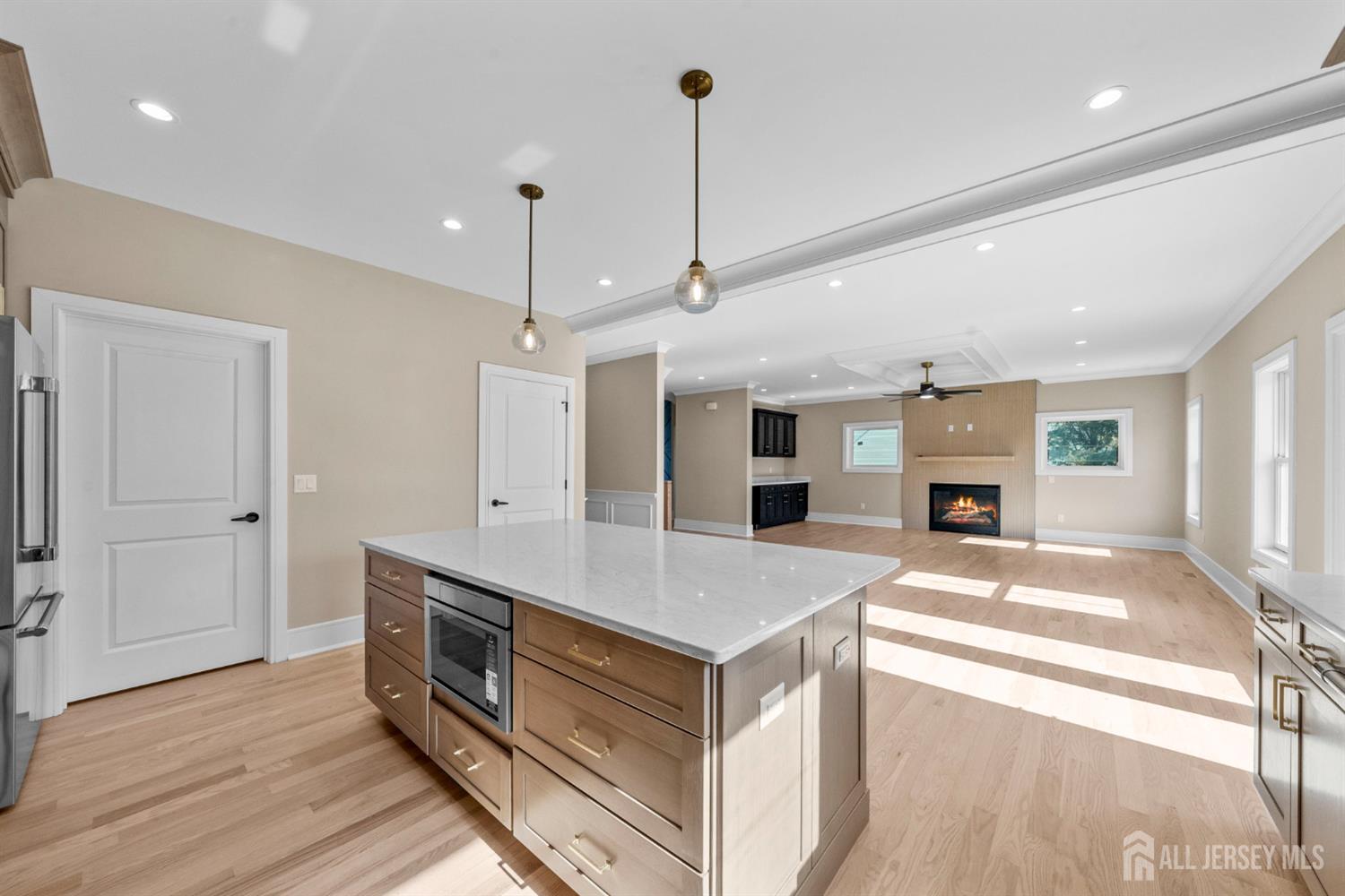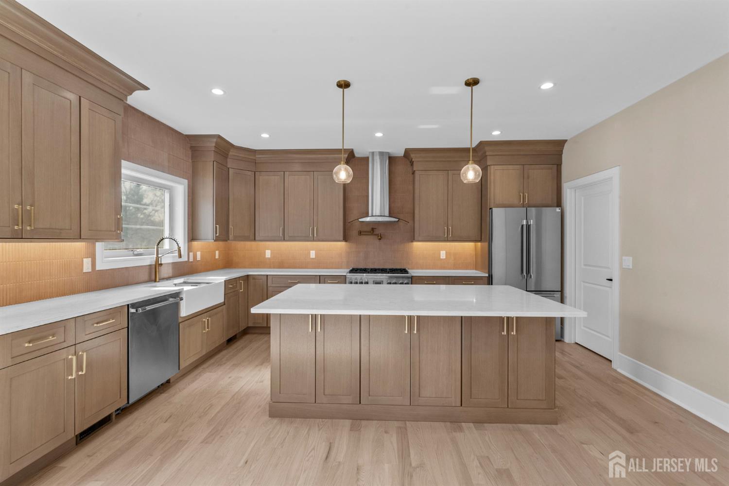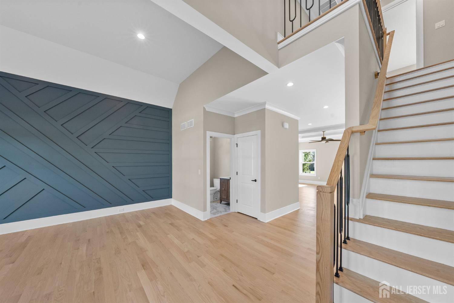 This stunning new construction home perfectly blends luxurious, thoughtful design on a spacious property with a circular drive. The heart of the residence is a chef-inspired kitchen, featuring a generous layout with ample custom cabinetry, expansive counter space, a dedicated walk-in pantry, and a suite of gleaming stainless steel appliances. The main level also provides ideal flexibility with a private first-floor bedroom and accompanying full bath. Upstairs, the opulent primary suite serves as a true sanctuary, boasting a dedicated sitting room with a volume ceiling, a extensive closet, and an amazing spa-like bath highlighted by a dramatic volume ceiling, a deep soaking tub, a substantial glass shower, and a Toto bidet. The finished basement dramatically expands the functional living area, offering a spacious recreation room, a quiet home office, and another full bath, while the home's premier location-just 1.2 miles from both the train and bus lines. Also close by are the YMCA, JCC, downtown and the Fanwood library. RWC 10 Year Home Warranty.
