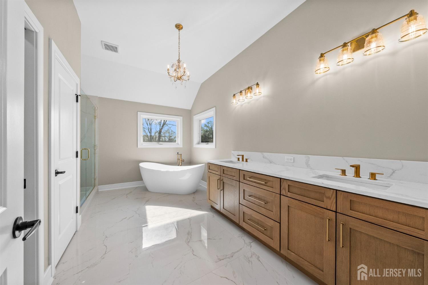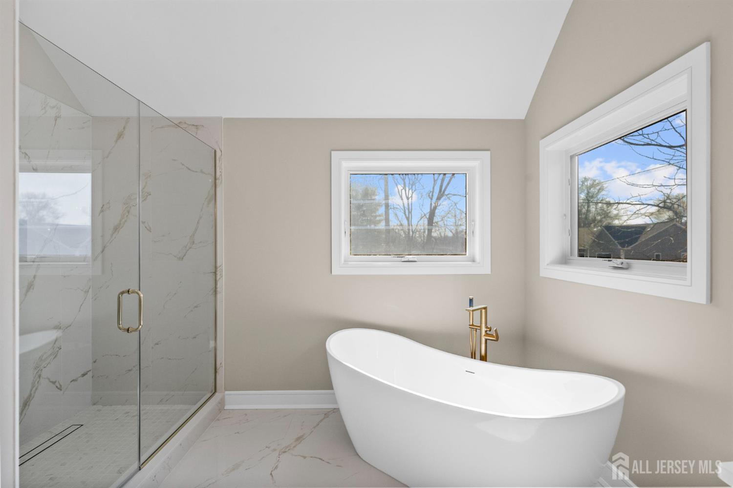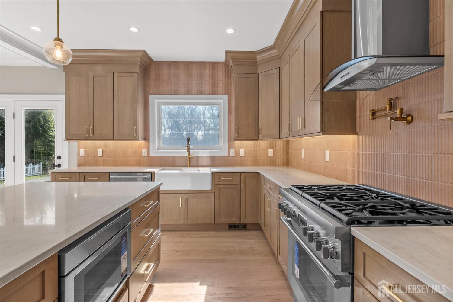 This stunning new construction home perfectly blends luxurious, thoughtful design on a spacious property with a circular drive. The heart of the residence is a chef-inspired kitchen, featuring a generous layout with ample custom cabinetry, expansive counter space, a dedicated walk-in pantry, and a suite of gleaming stainless steel appliances. The main level also provides ideal flexibility with a private first-floor bedroom and accompanying full bath. Upstairs, the opulent primary suite serves as a true sanctuary, boasting a dedicated sitting room with a volume ceiling, a extensive closet, and an amazing spa-like bath highlighted by a dramatic volume ceiling, a deep soaking tub, a substantial glass shower, and a Toto bidet. The finished basement dramatically expands the functional living area, offering a spacious recreation room, a quiet home office, and another full bath, while the home's premier location-just 1.2 miles from both the train and bus lines. Also close by are the YMCA, JCC, downtown and the Fanwood library. RWC 10 Year Home Warranty.
