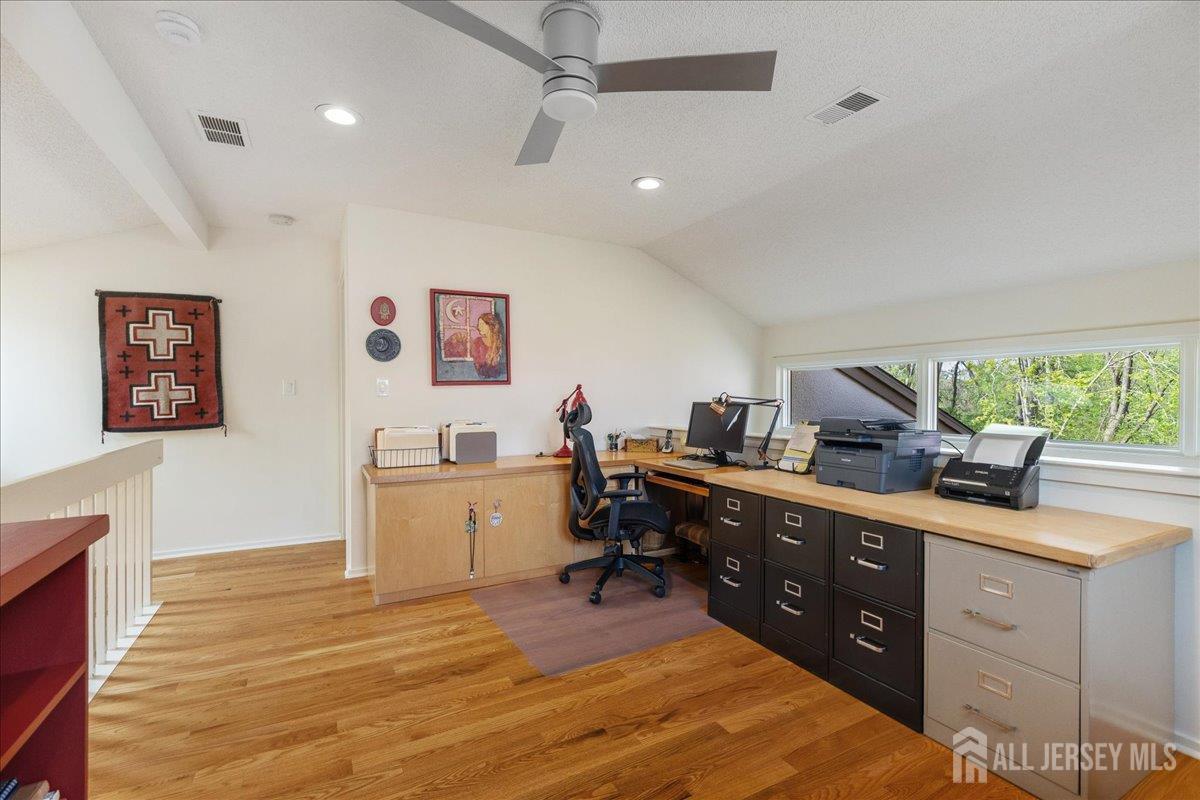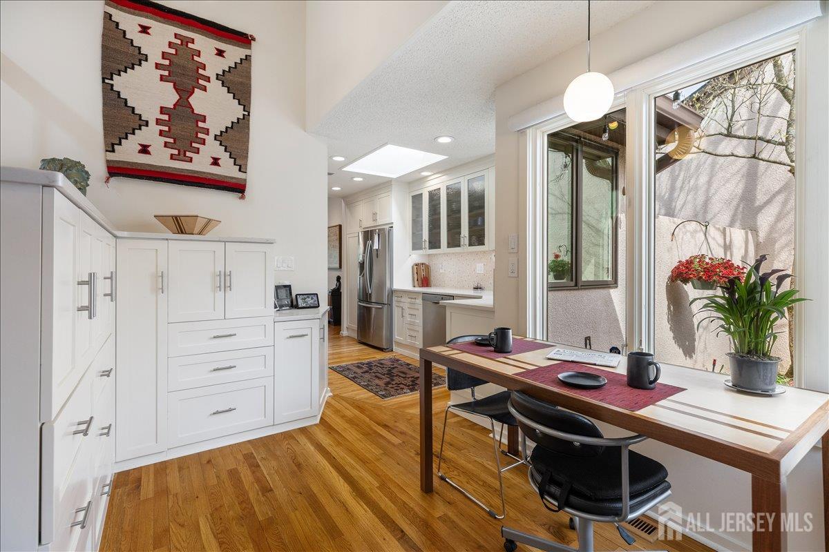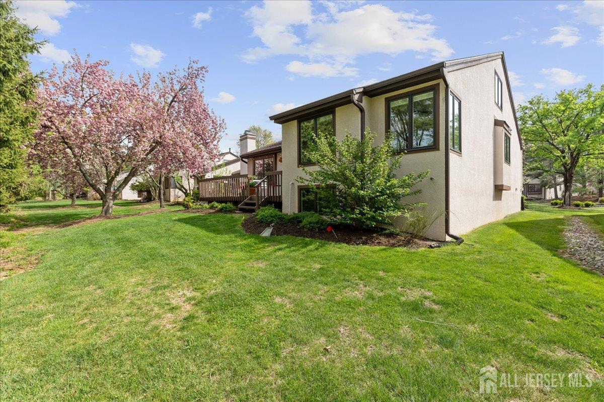 Welcome to this beautifully updated single-family home in the highly desirable Princeton Landing community of Plainsboro. This thoughtfully renovated residence offers 3 bedrooms and 3 full bathrooms, combining modern upgrades with a warm, inviting layout. You are welcomed into the home through a stunning glass breezeway, setting the tone for the light-filled spaces throughout. The sunken family room features a cozy fireplace and a sliding glass door that opens to a private atriumperfect for relaxing or entertaining. The updated kitchen flows seamlessly between the family room and the dining room, creating an ideal space for everyday living and gatherings. Adjacent to the dining room is a spacious living room with access to a secluded deck overlooking serene wooded surroundingsoffering rare privacy and a truly peaceful setting. The primary suite is a standout, featuring abundant built-in closets and windows facing the rear of the home from three directions, bringing in natural light and tranquil views. The primary bathroom has been tastefully updated with modern finishes. A second bedroom and full bathroom are conveniently located on the main level. Upstairs, a large loft provides flexible space perfect for a home office, gym, or additional living area, along with a third bedroom that includes its own private full bathroom. The finished basement has been freshly painted and updated, offering excellent potential for a variety of uses. It is currently set up for storage and a woodworking shop. Recent upgrades include new windows, fresh interior paint, refinished oak floors, an EV charger, updated lighting, new kitchen cabinetry and countertops, and a new HVAC system. (Please refer to the attached list for a complete summary of improvements.) Ideally located near Route 1 and Princeton, and part of the highly regarded West Windsor-Plainsboro school district, this home offers a rare combination of privacy, convenience, and modern comfort.