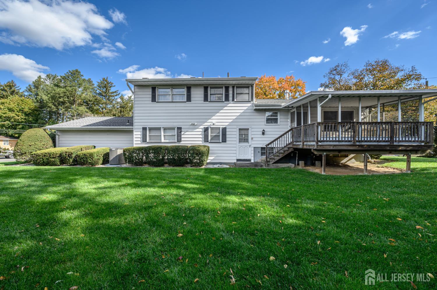 Home Sweet Home! Spacious 4 Bed 2.5 Bath Split with Master Suite, Partial Finished Basement and 2 Car Garage in highly desirable East Brunswick is bursting with possibilities. Lovingly owned and maintained, pride of ownership shines through with only one owner throughout the life of the home. Situated on a park-like corner lot in a sought after neighborhood, just steps to the elementary school and easy access to major roads for a seamless commute. Curb appeal and foyer entry welcome you into the first level, featuring a large family room, accessible first floor bedroom, and convenient 1/2 bath with laundry room. The light and bright main level features a living room with big bay window, decorative fireplace, and soaring cathedral ceiling that truly opens up the space, flowing right into the elegant dining room for easy entertaining. Eat-in-kitchen offers ample cabinet storage and access to the blissful enclosed sun porch, great for al fresco dining or enjoying your morning coffee. Upstairs, find the main full bath along with 3 more generous bedrooms, inc the Master Suite. MBR boasts its own walk-in closet and ensuite bath with accessible stall shower. Partial finished basement is an added bonus, offering a versatile rec room with dry bar, storage and utilities. Peaceful backyard is your blank canvas, with plenty of extra space to expand and play. 2 car garage with double wide driveway offers ample guest parking. Multi-zoned heating and cooling, newer water heater and AC unit, the list goes on! Don't miss out! This could be the hidden gem you've been searching for!