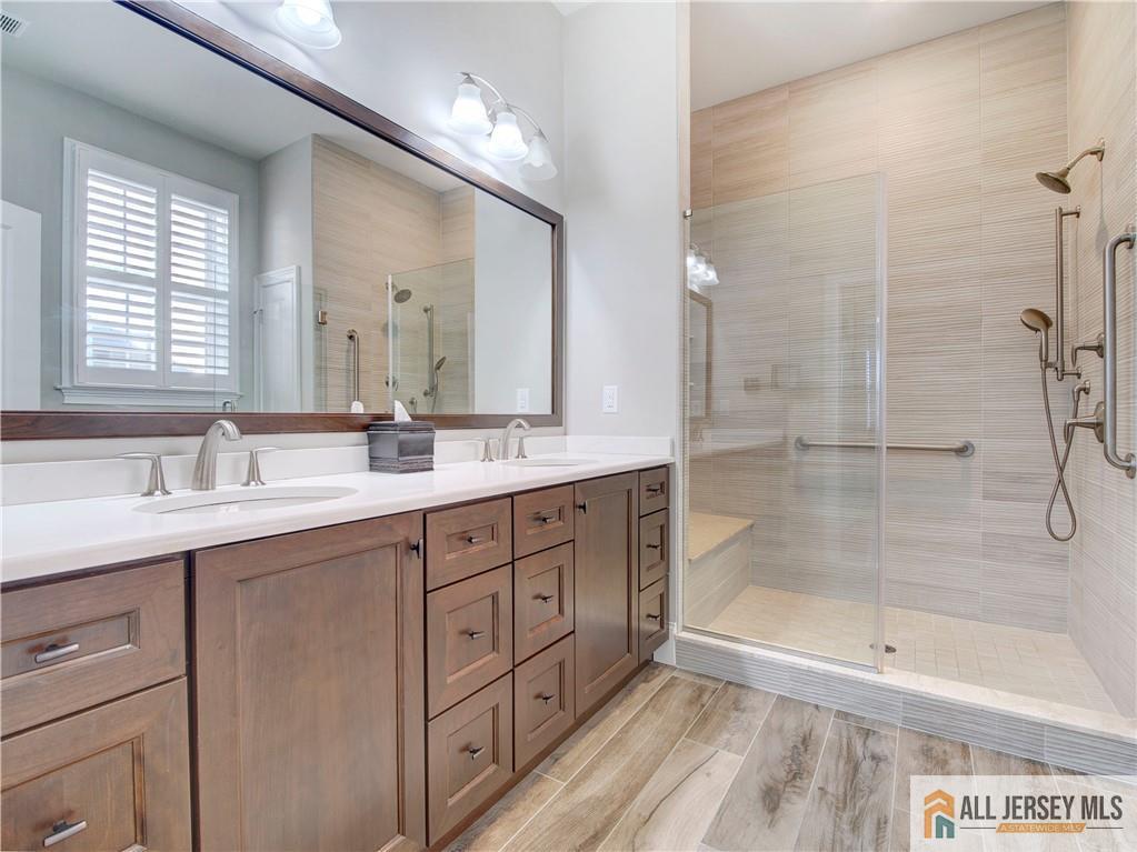 Welcome to the luxurious Bronson Traditional model, available in one of the Jersey Shore's newest and most prestigious Active Adult Communities in The Enclave at Ocean. This pristine 4-bedroom, 3.5-bath residence offers over 3,000 Sq ft. of luxurious living space, situated on a premium oversized corner lot. It boasts numerous upgrades, high-end finishes, a fully finished walkout basement, and abundant storage throughout. The first floor features hardwood floors and a spacious, open-concept layout filled with natural light, designed for seamless entertaining. Highlights of the Bronson model include a large two-story great room with a fireplace, open to the dining area and upgraded gourmet eat-in kitchen. The kitchen is equipped with top-of-the-line stainless steel Jenn-Air appliances, a wine refrigerator, quartz countertops, and an oversized island truly a chef's delight. Sliding glass doors off the kitchen open to a serene, covered upper deck perfect for morning coffee or evening relaxation. A private home office with 8-foot, 18-panel glass double French doors provides an ideal space for work or study. The primary suite features two generously sized closets, an expanded sitting area, and spa-like bathroom, offering ample space and luxury. There's also a second bedroom and full bathroom to complete the first floor. Upstairs, you'll find a spacious and versatile loft ideal for relaxation, entertaining, or your personal needs. Additionally, there are two large bedrooms, a full bath, and a walkout attic that provides convenient, accessible storage or an extra space for your imagination.The fully finished walkout basement with 9-foot ceilings offers even more living and entertaining space. This expanded level includes a half-bath, a large open area for lounging, gaming, or socializing, a dedicated storage room with a built-in workbench, and a bonus room perfect for a home gym, craft room, or hobby space. Sliding doors lead to a private patio for outdoor enjoyment. Residents of The Enclave at Ocean enjoy access to a stunning clubhouse, resort-style pool, state-of-the-art fitness center, bocce, and shuffleboard courts all supporting a vibrant, active lifestyle. Conveniently located just minutes from the Jersey Shore's finest beaches, restaurants, shopping, and major highways. Nothing to do but Move in! You don't want to miss this one.