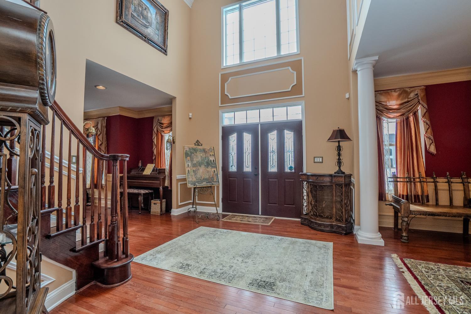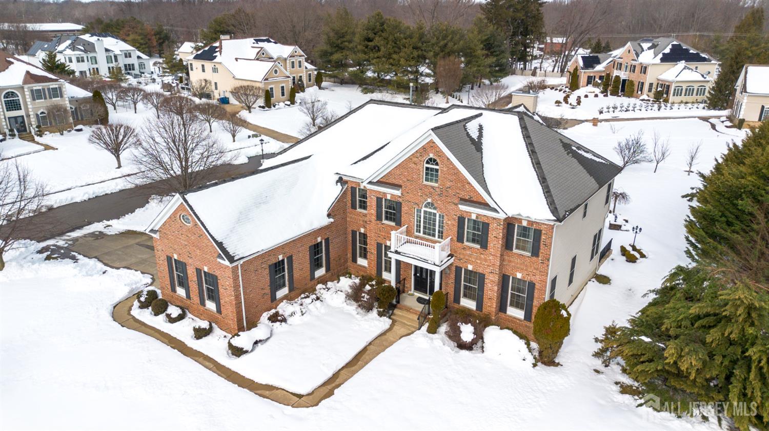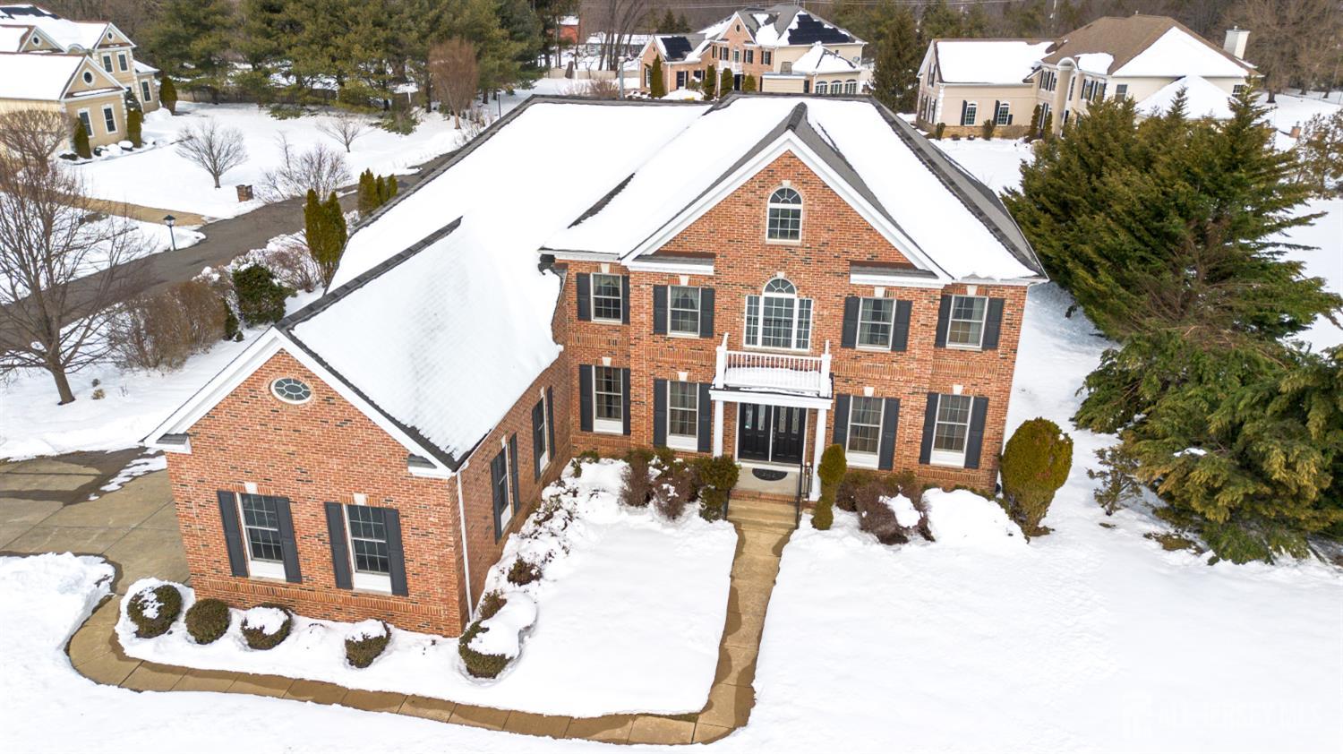 Welcome to this stunning Stanwick model estate home, beautifully situated in the prestigious Reserve at Stonebridge community. Boasting an elegant brick front and a three-car side-entry garage, this residence makes a striking first impression. Step inside through double doors to a grand, two-story foyer featuring dual staircases, a sparkling chandelier, and soaring ceilings. The main level is designed for both refined living and daily comfort, showcasing 9-foot ceilings, crown molding in the living, dining, and family rooms, and gleaming hardwood floors throughout the main living areas and library. A dedicated office, featuring 15-lite French doors, offers a versatile space that could easily serve as a main-floor guest bedroom. The heart of the home is the sun-drenched, two-story family room, the perfect space for gathering around the gas fireplace with its elegant granite surround and oak mantle. The gourmet kitchen is a chef's delight, equipped with GE appliances, upgraded maple cabinetry, granite countertops, a center island, and a convenient wet bar. Upstairs, the spacious landing overlooks the foyer and leads to a luxurious master suite complete with a private sitting area and an en-suite bath featuring dual vanities, a jacuzzi tub, and a standing shower. The upper level also hosts a private Princess suite with its own full bathroom, plus two additional bedrooms sharing a Jack & Jill bath. With three full bathrooms on the second floor and a half-bath on the main level, this home is perfectly configured for convenience and comfort. Outside, the backyard is a true entertainer's paradise, featuring professional landscaping, a clean, spacious walkout basement, and a beautiful stone patio complete with a built-in fire pit and and BBQ area. Ideally located near Applegarth Road and Oak Tree Elementary, this home offers effortless access to the NYC bus and Park & Ride, combining quiet community living with commuter-friendly convenience. See the attached upgrades sheet for a full list of features in this exceptional home! First day of showing is March 15th 2026 (03/15/26). Seller prefers to stay till end of June. Some of the pictures are virtually staged.