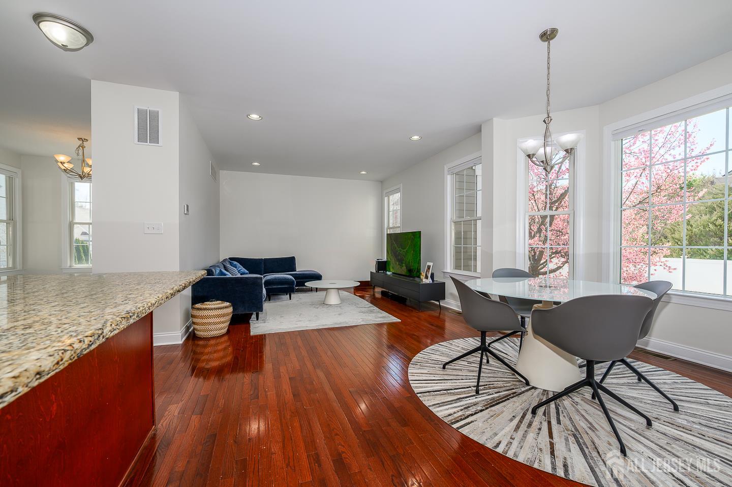 Luxurious 4-bedroom end-unit townhome in the desirable Plainsboro Village Center.The first floor features an open layout with a dramatic two-story foyer, that opens to a spacious living room, dining room, and separate office/library. Lots of windows (Anderson), colonial trim, and hardwood floors create a bright, welcoming atmosphere, while the southwest exposure fills the home with natural light throughout the day. The gourmet kitchen features hardwood cabinetry, granite countertops, a large center island with sink, and stainless-steel appliances. Adjacent to the kitchen, a sunlit breakfast area overlooks the fenced backyard and opens to a generous family room, ideal for everyday living and entertaining. Upstairs, the hallway overlooks the foyer and leads to an elegant primary suite with walk-in closet and full bath featuring a large tub and a separate shower. A second bedroom also includes a walk-in closet, while two additional bedrooms share a full hall bath. Additional highlights include a full unfinished basement with sealed walls and floor, and a detached one-car garage. Conveniently located near shopping, dining, major highways, NYC transportation, and Princeton Junction Train Station. Close proximity to the Plainsboro Public Library and zoned for top-rated West Windsor-Plainsboro schools (specifically, High School North). Well maintained and move-in ready. Showings start April 11, 2026.