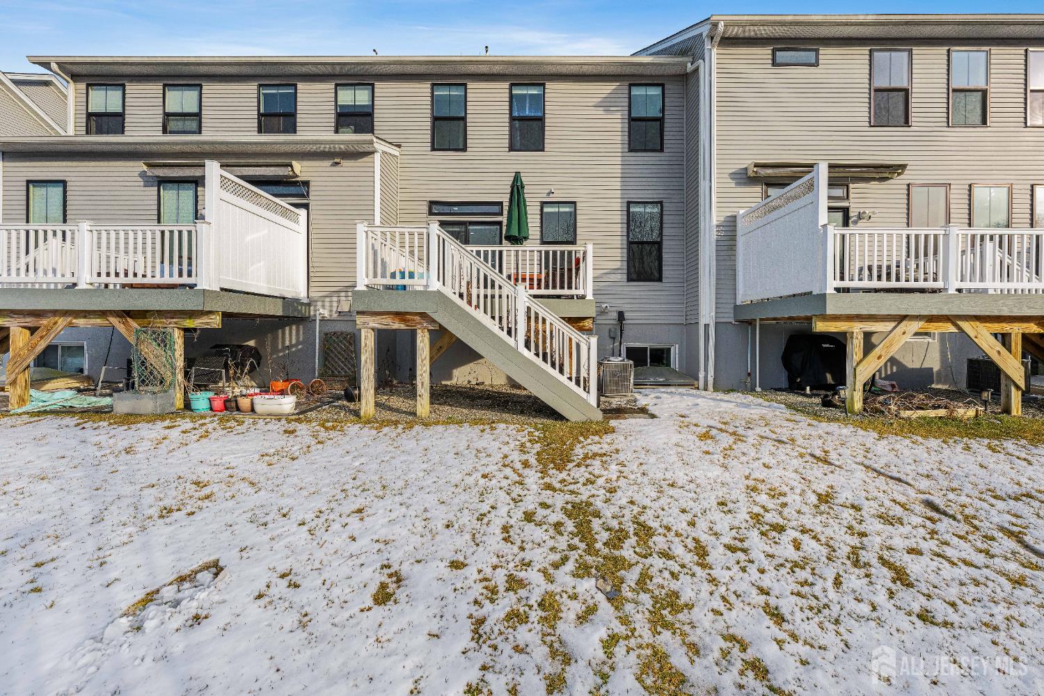 Welcome to this stunning Toll Brothers built 2020 townhome in the highly desirable Monroe Place community. This beautifully maintained middle unit offers 2,191 sq ft of bright, thoughtfully designed living space with 3 bedrooms, 2 full baths, 1 half bath, and a 1-car garage. The elegant stone front creates wonderful curb appeal, while inside you'll find a home filled with natural light and modern finishes throughout. The upgraded gourmet kitchen features sleek quartz countertops and ample space to cook, gather, and entertain with ease. Custom-built closet systems throughout the entire home provide exceptional organization, and a whole-house water filtration system adds everyday comfort. The spacious primary suite includes a sitting area and a large custom California closet, while the additional bedrooms are generously sized and inviting. A versatile open loft offers the perfect space for a home office, reading nook, or second living area. Hardwood flooring enhances the main level, designer carpet adds warmth upstairs, and convenient second-floor laundry makes daily living effortless. Recessed lighting, ceiling fans in every bedroom, custom cabinetry, smart home features, and a dedicated ChargePoint wall charger for electric vehicles add both comfort and functionality. The fully finished basement offers the ideal setup for a home theater or recreation space. Step outside to your private backyard with a low-maintenance Trex deckperfect for relaxing or entertaining. Ideally located just minutes from major highways, public transportation, Princeton Junction train station, and Freehold Raceway Mall, this home offers the perfect balance of luxury and convenience. This is not just a townhomeit's easy, elevated living in one of Monroe's most sought-after communities.