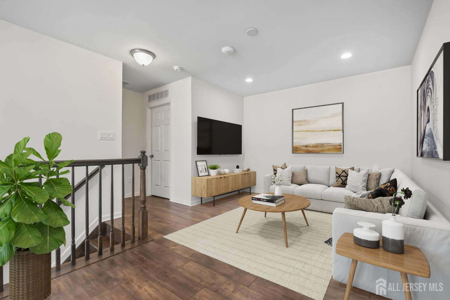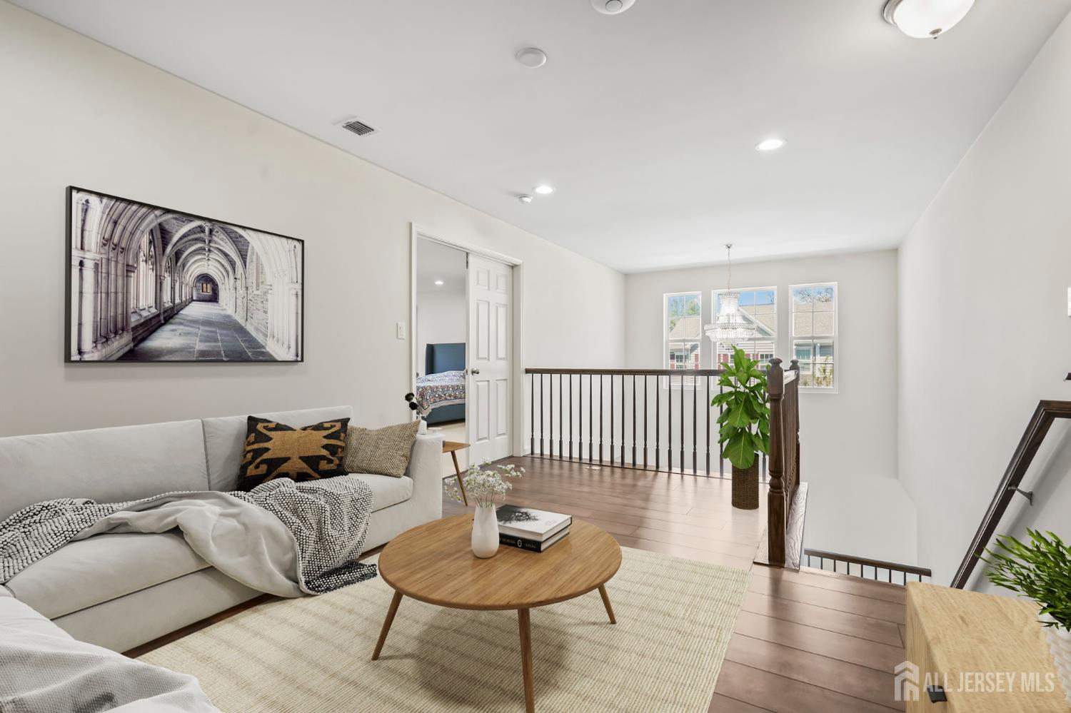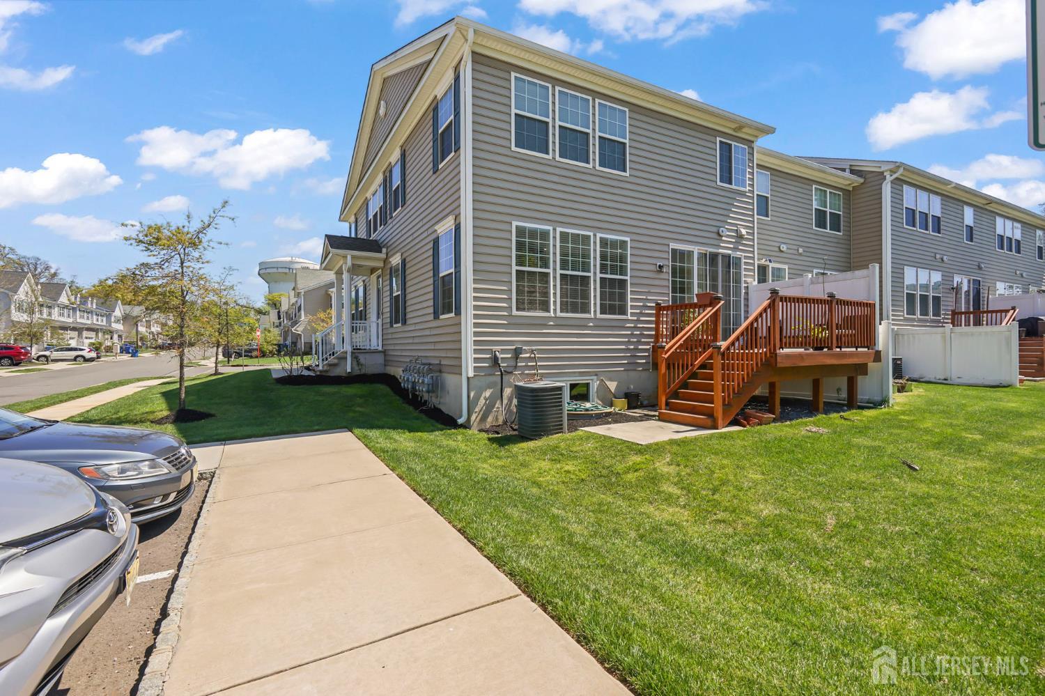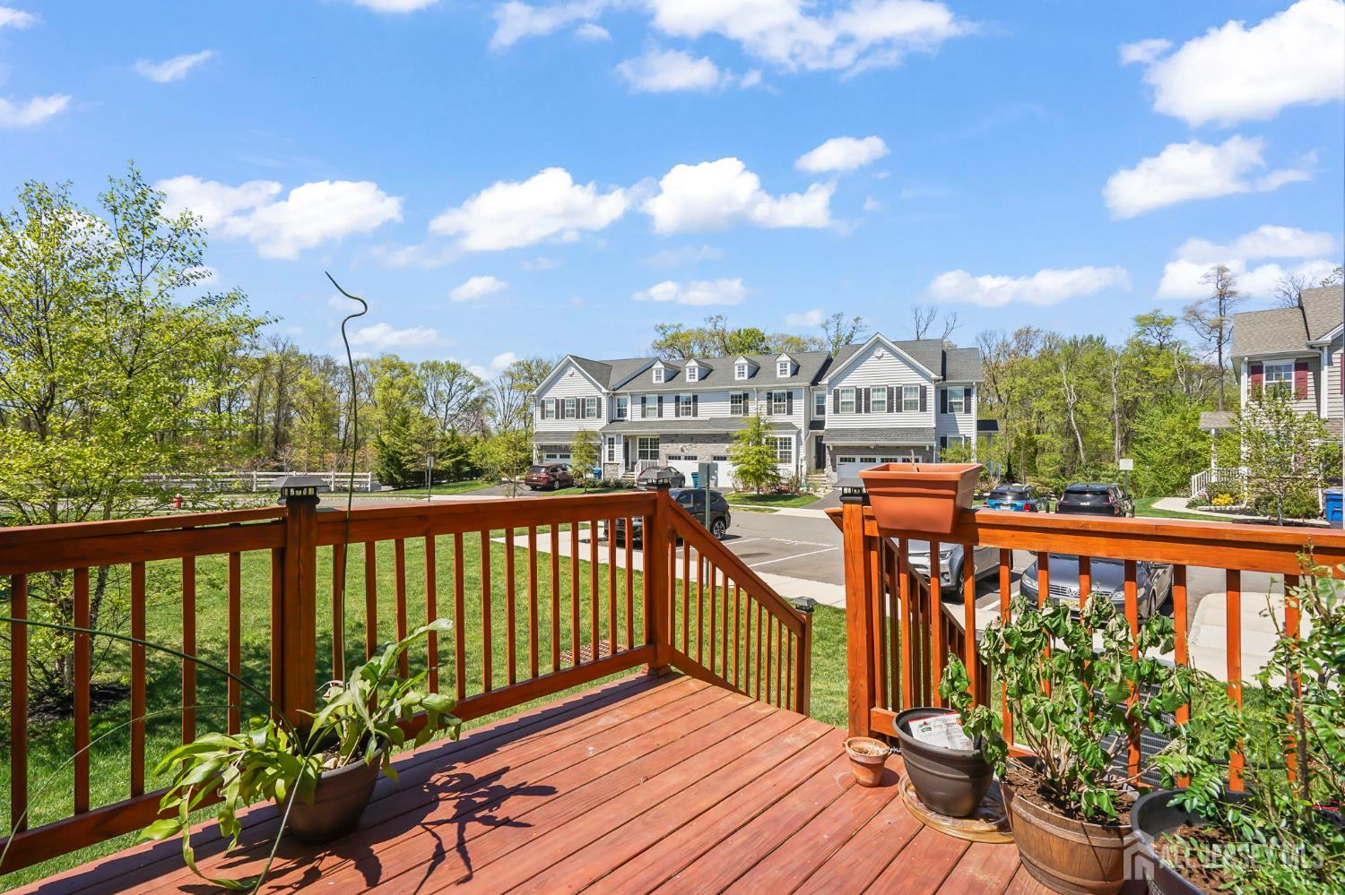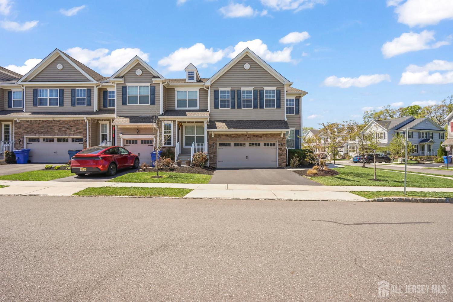 Welcome to the super desirable Arbors community of luxury townhomes located in Monroe Township. This bright and airy 3-bedroom, 3.5-bath end unit townhome features a grand open floor plan with a gourmet kitchen equipped with granite countertops, upgraded cabinets, premium stainless steel appliances, and a spacious island, plus generous living and dining areas. The living room also includes a full Bose surround sound system. Wood floors cover the main level, and sliding doors from the dining room lead to a custom deck for relaxing on those warm sunny days. The second floor has a large main bedroom with a walk-in closet and a custom bathroom with a whirlpool tub and a separate shower along with double sinks. In addition, there are two extra bedrooms for guests or family, another full bathroom offers double sinks with a tub/shower and a bonus den provides space for TV or reading. The finished basement features a 3rd full bathroom and built-in speakers, great for hosting guests or movie nights. The two-car garage has an electric car charger. Community perks feature a clubhouse, pool, fitness center, top schools, a direct NYC bus stop, and quick access to Rt 33, restaurants, and shopping.