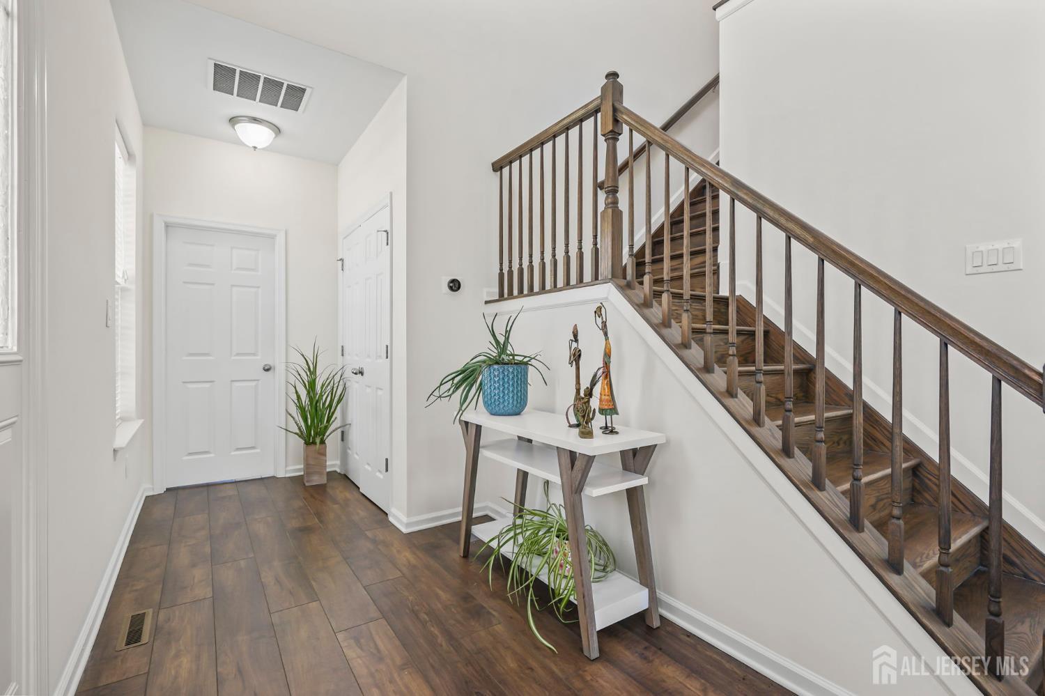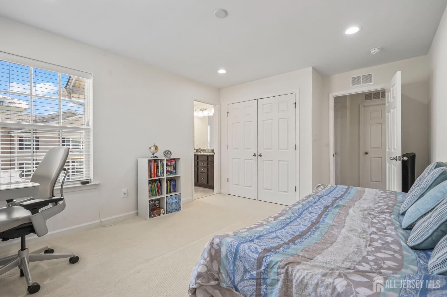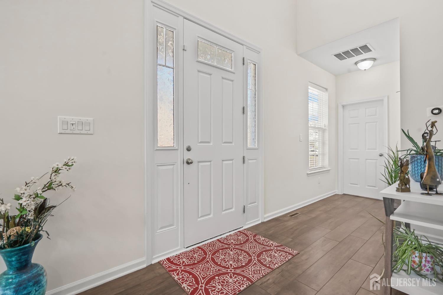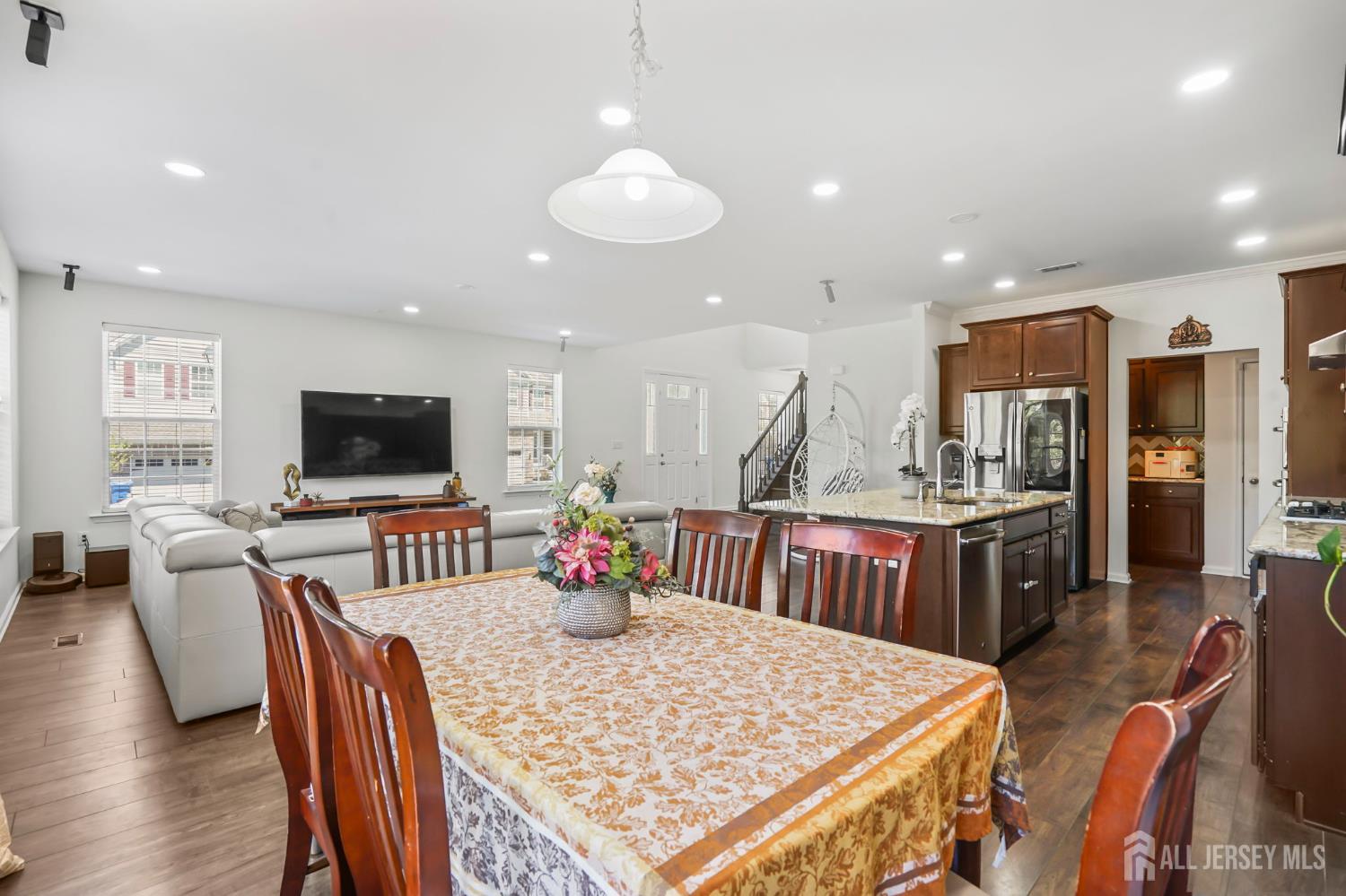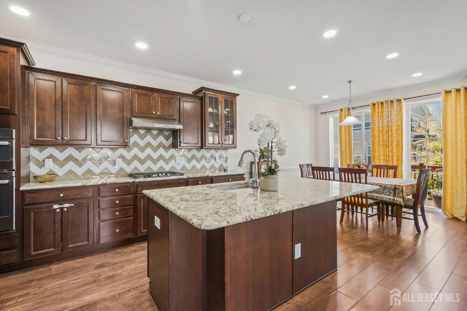 Welcome to the super desirable Arbors community of luxury townhomes located in Monroe Township. This bright and airy 3-bedroom, 3.5-bath end unit townhome features a grand open floor plan with a gourmet kitchen equipped with granite countertops, upgraded cabinets, premium stainless steel appliances, and a spacious island, plus generous living and dining areas. The living room also includes a full Bose surround sound system. Wood floors cover the main level, and sliding doors from the dining room lead to a custom deck for relaxing on those warm sunny days. The second floor has a large main bedroom with a walk-in closet and a custom bathroom with a whirlpool tub and a separate shower along with double sinks. In addition, there are two extra bedrooms for guests or family, another full bathroom offers double sinks with a tub/shower and a bonus den provides space for TV or reading. The finished basement features a 3rd full bathroom and built-in speakers, great for hosting guests or movie nights. The two-car garage has an electric car charger. Community perks feature a clubhouse, pool, fitness center, top schools, a direct NYC bus stop, and quick access to Rt 33, restaurants, and shopping.