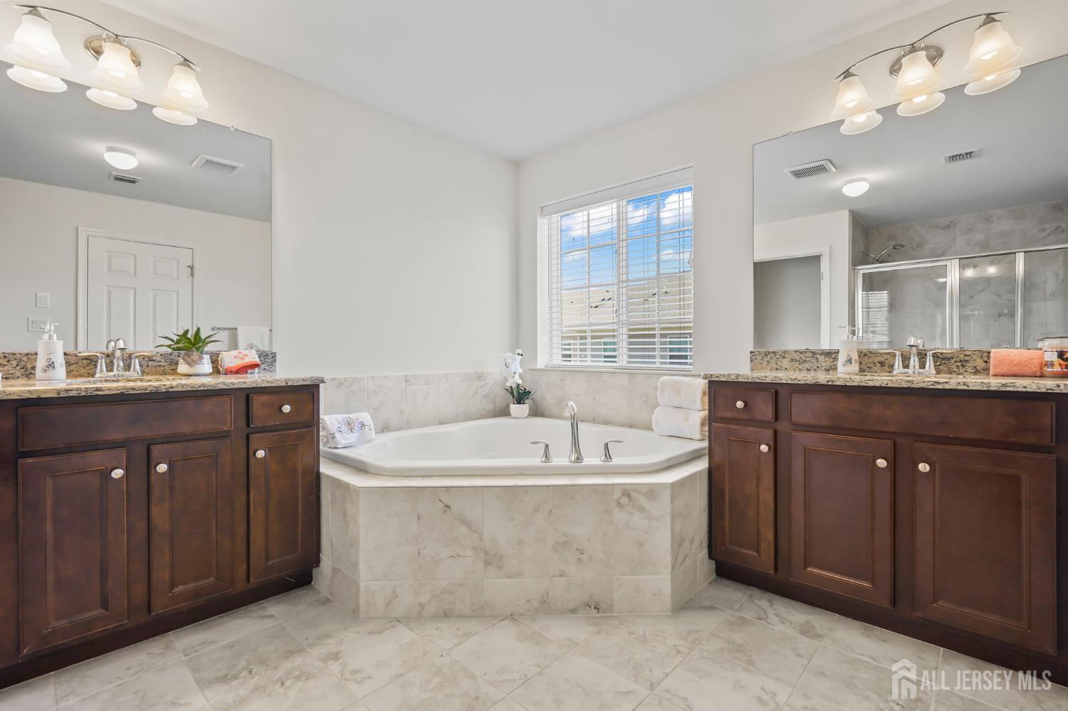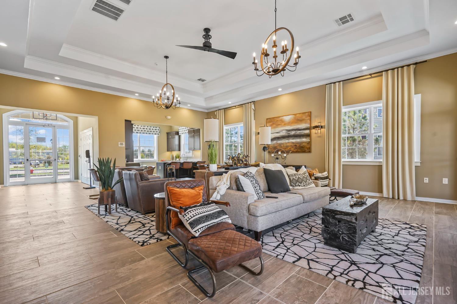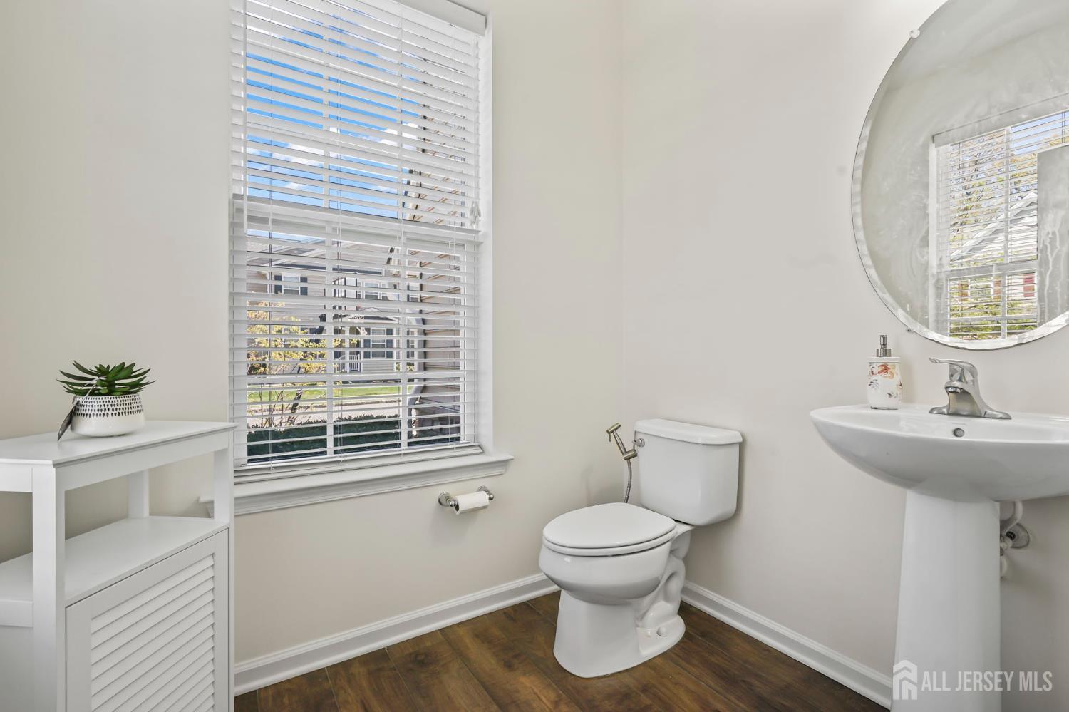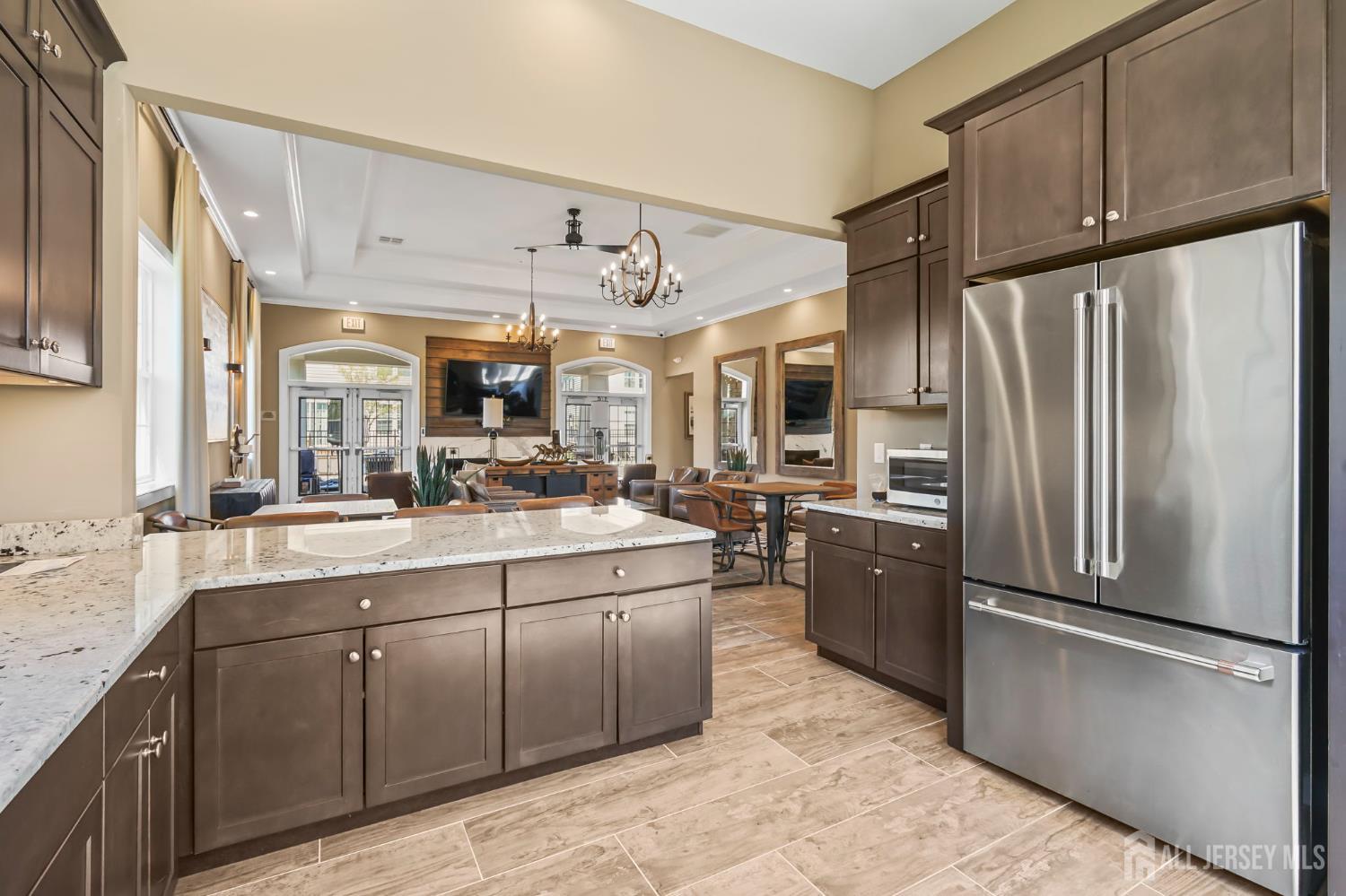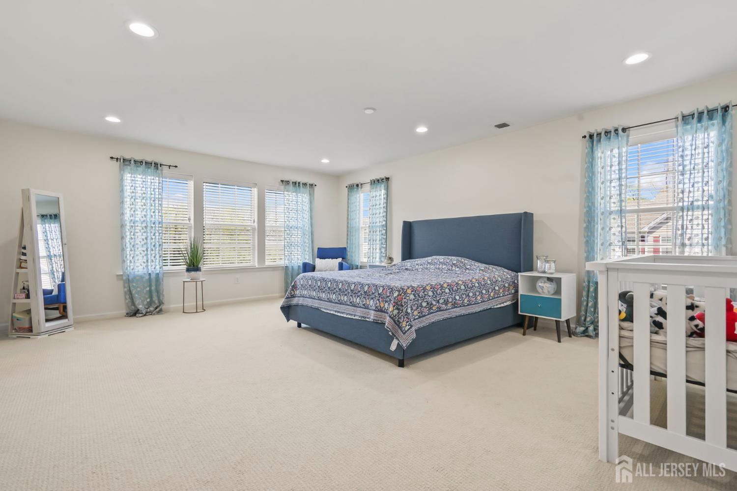Welcome to the super desirable Arbors community of luxury townhomes located in Monroe Township. This bright and airy 3-bedroom, 3.5-bath end unit townhome features a grand open floor plan with a gourmet kitchen equipped with granite countertops, upgraded cabinets, premium stainless steel appliances, and a spacious island, plus generous living and dining areas. The living room also includes a full Bose surround sound system. Wood floors cover the main level, and sliding doors from the dining room lead to a custom deck for relaxing on those warm sunny days. The second floor has a large main bedroom with a walk-in closet and a custom bathroom with a whirlpool tub and a separate shower along with double sinks. In addition, there are two extra bedrooms for guests or family, another full bathroom offers double sinks with a tub/shower and a bonus den provides space for TV or reading. The finished basement features a 3rd full bathroom and built-in speakers, great for hosting guests or movie nights. The two-car garage has an electric car charger. Community perks feature a clubhouse, pool, fitness center, top schools, a direct NYC bus stop, and quick access to Rt 33, restaurants, and shopping.