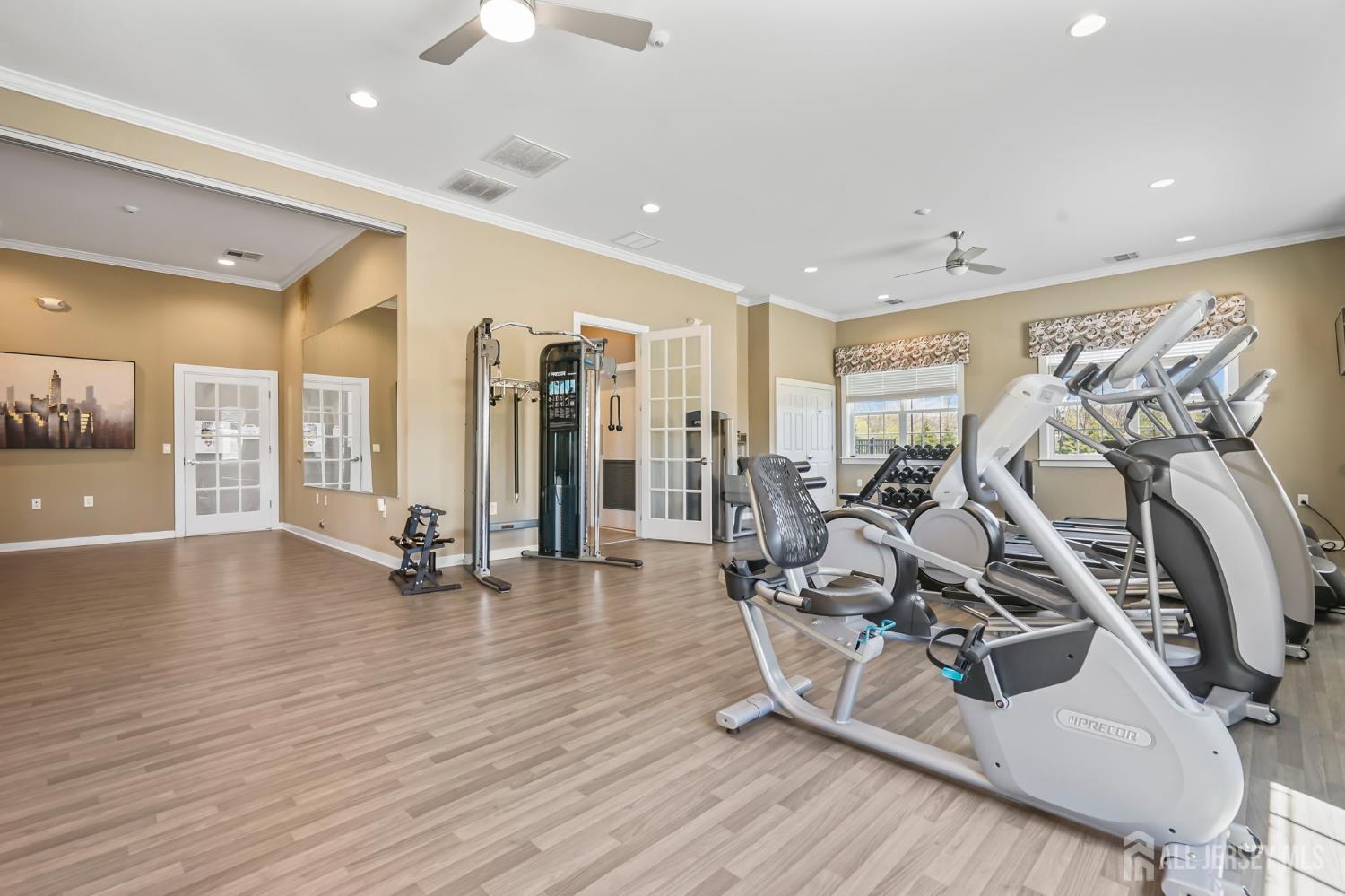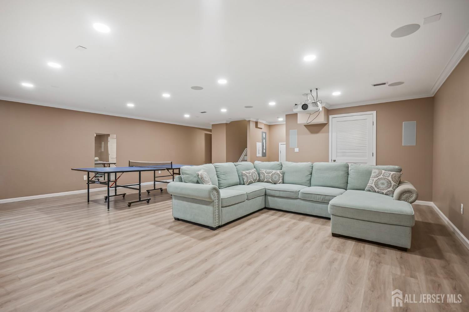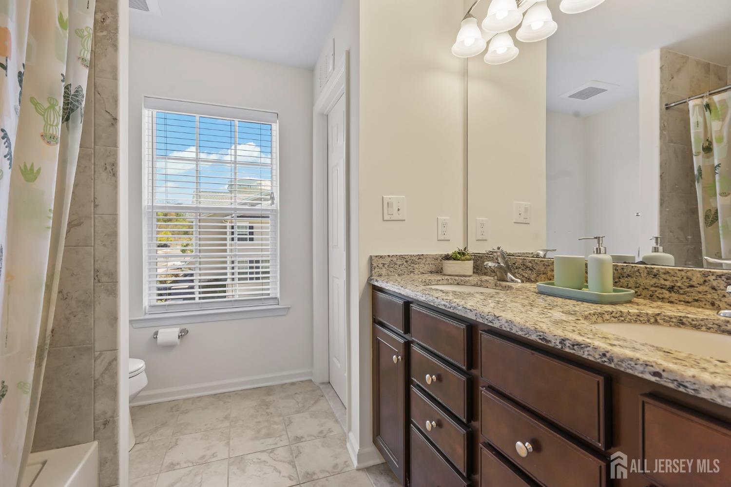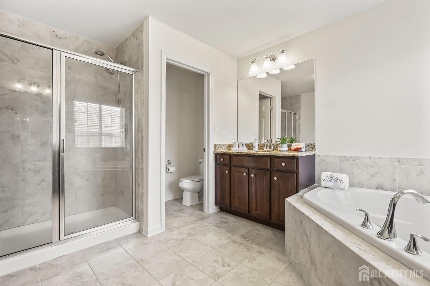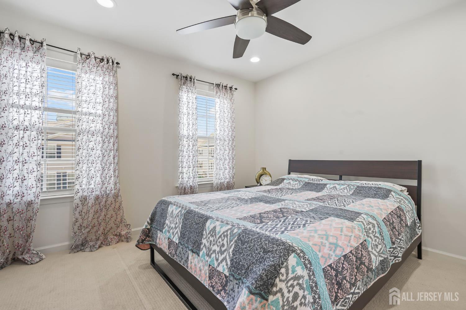 Welcome to the super desirable Arbors community of luxury townhomes located in Monroe Township. This bright and airy 3-bedroom, 3.5-bath end unit townhome features a grand open floor plan with a gourmet kitchen equipped with granite countertops, upgraded cabinets, premium stainless steel appliances, and a spacious island, plus generous living and dining areas. The living room also includes a full Bose surround sound system. Wood floors cover the main level, and sliding doors from the dining room lead to a custom deck for relaxing on those warm sunny days. The second floor has a large main bedroom with a walk-in closet and a custom bathroom with a whirlpool tub and a separate shower along with double sinks. In addition, there are two extra bedrooms for guests or family, another full bathroom offers double sinks with a tub/shower and a bonus den provides space for TV or reading. The finished basement features a 3rd full bathroom and built-in speakers, great for hosting guests or movie nights. The two-car garage has an electric car charger. Community perks feature a clubhouse, pool, fitness center, top schools, a direct NYC bus stop, and quick access to Rt 33, restaurants, and shopping.