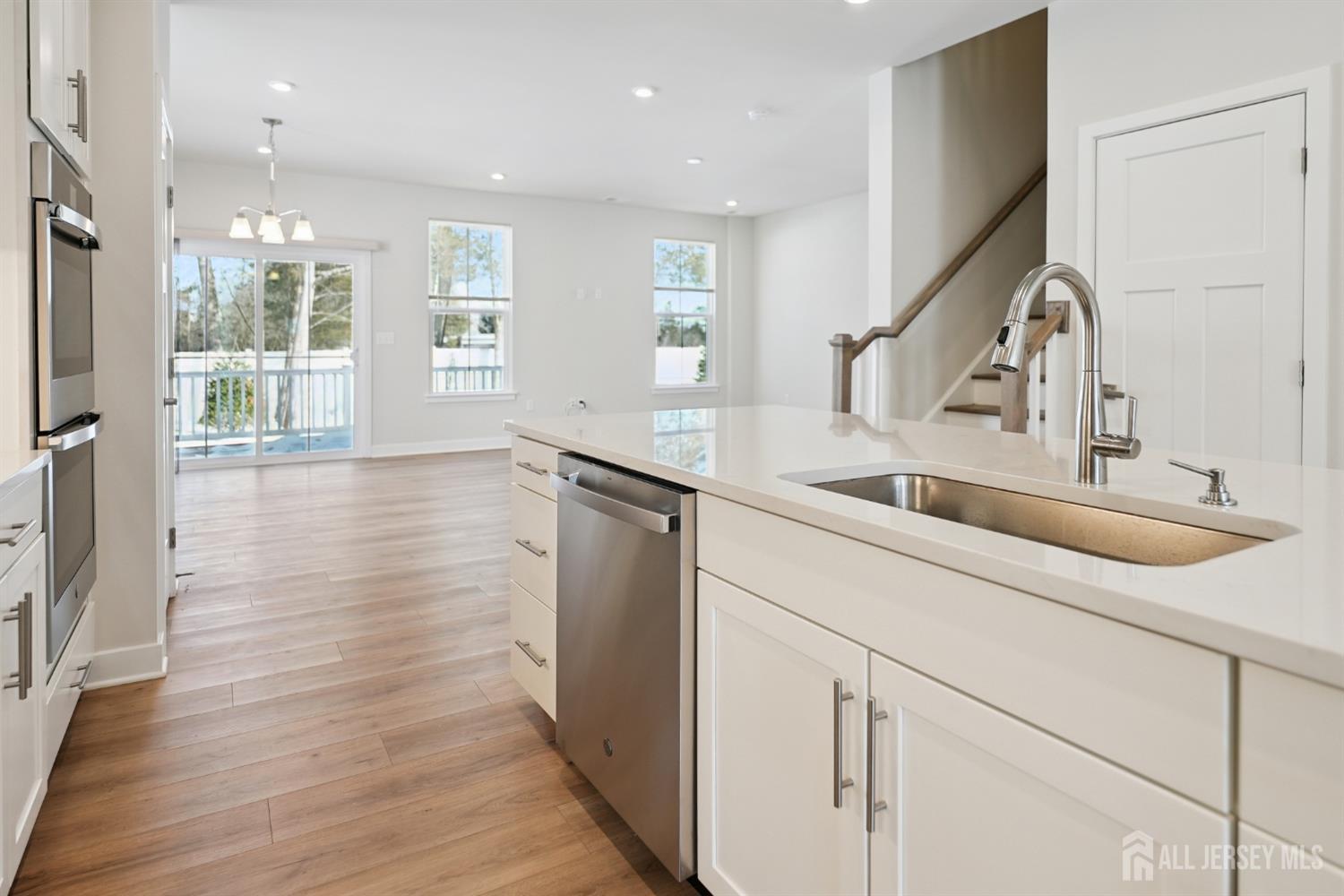 Experience elevated living in this brand-new, never-occupied corner side unit, newly built in 2024, offering 3 bedrooms and 2.5 baths with refined finishes and a thoughtfully designed open-concept layout filled with natural light. The main level is ideal for both everyday living and entertainment, featuring a chef-inspired kitchen with sleek quartz countertops, custom cabinetry, premium appliances, and an oversized island that flows seamlessly into the living and dining areas. Wide-plank luxury vinyl flooring extends throughout and opens to a private Trex deck perfect for outdoor dining or relaxation. The upper level offers a serene owner's suite with vaulted ceilings, a custom walkin closet, and a spa-like bath with dual vanities and warm water bidet installed. Two additional generously sized bedrooms, a stylish full bath, and convenient second-floor laundry complete the home. Ideally located near upscale shopping, dining, major highways, and effortless NYC transportation, this pristine corner unit presents a rare opportunity to own a move-in-ready new construction offering modern luxury, added privacy, and exceptional convenience.