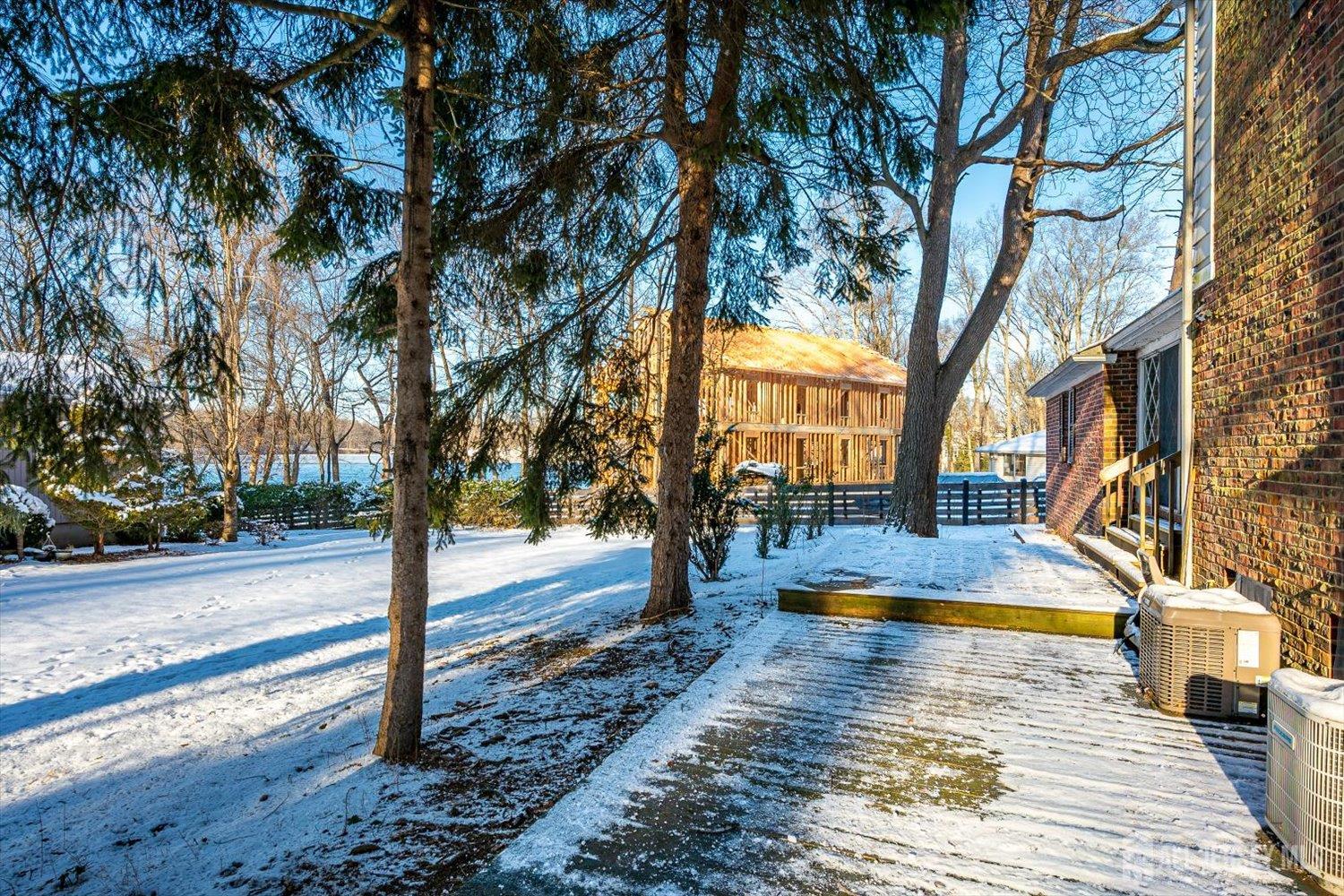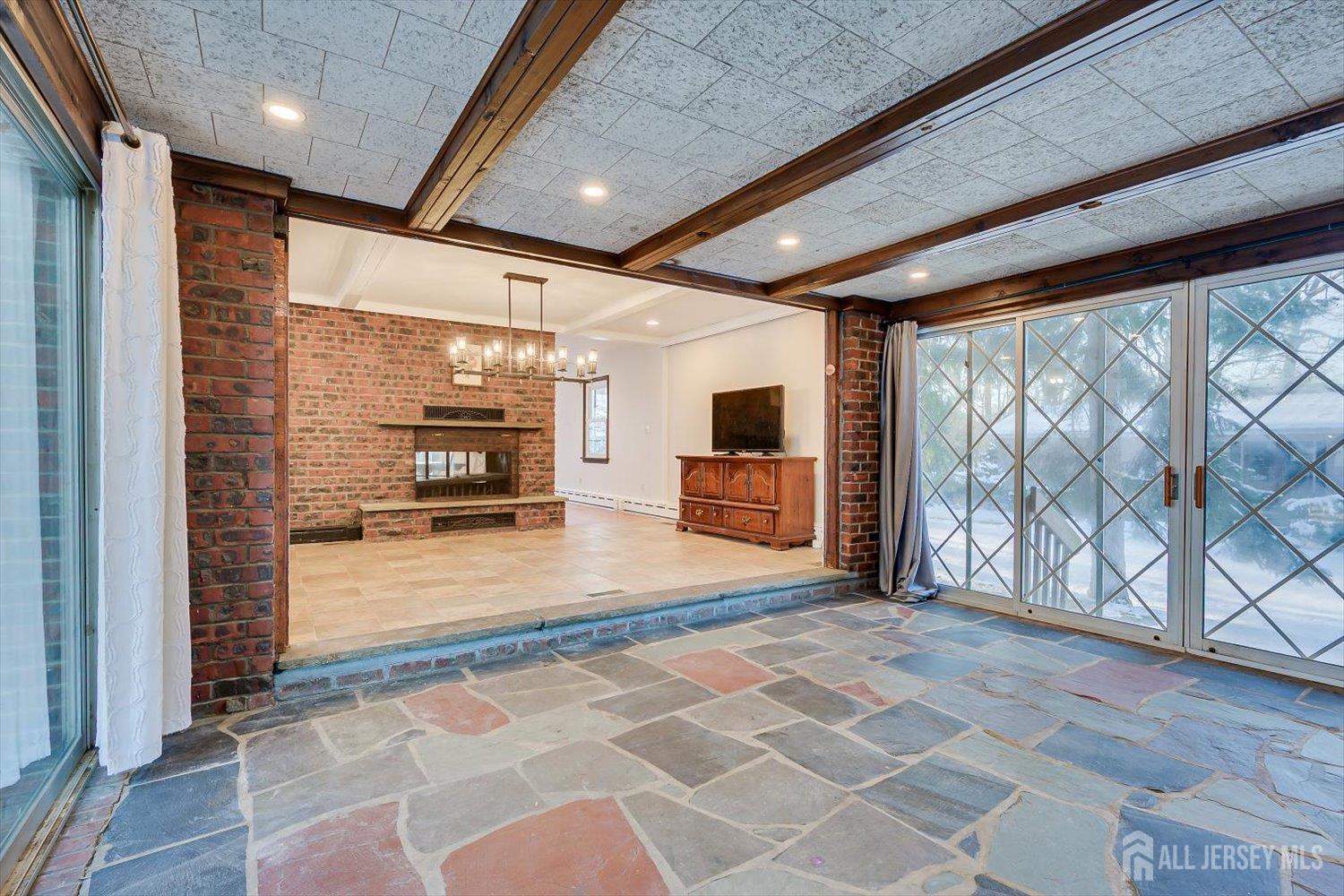 Welcome to 21 Garden Terrace in desirable EAST BRUNSWICK, ideally situated next to Farrington Lake with beautiful lake views and peaceful surroundings all while NOT located in a flood zone. Enjoy scenic water views WITHOUT the added concern. This spacious 4-bedroom, 2.5-bath Colonial offers an inviting and open layout filled with abundant natural light. The first floor features a versatile office/den that can easily be converted into a 5th bedroom, providing flexibility for guests or extended living needs. The expansive living room, centered around a double-sided fireplace, flows effortlessly into the formal dining room, creating an open and airy feel that seamlessly connects the kitchen and main gathering areas perfect for both everyday living and entertaining. Renovated eat-in kitchen, stainless steel appliances, abundant cabinetry. The enclosed rear sunroom is a true highlight of the home, designed with glass doors on both sides that allow abundant natural light to stream in while creating a seamless connection to the outdoors. Surrounded by mature landscaping and tranquil greenery, this bright and airy retreat offers beautiful natural views throughout all seasons an exceptional space to relax, entertain, or simply enjoy the peaceful setting from the comfort of home. Convenient half bathroom on the first floor, Private laundry room, All-new windows throughout the home. Upstairs, ALL bedrooms are generously sized- a rare and highly desirable feature. The spacious primary suite includes a private en-suite bath, while the additional bedrooms are also large and well-proportioned. Large bedrooms throughout the second floor truly set this home apart. A generously sized basement and oversized garage provide abundant storage, workshop space, or excellent potential for future finishing, entertainment use. Located within the EAST BRUNSWICK School District and offering easy access to Route 1, Route 18, the NJ Turnpike, NYC transportation, shopping, Rutgers University, parks, and several top hospitals. With a little TLC, love, your personal touch, this home offers a rare opportunity to enjoy scenic lakeview living with convenience, comfort, and peace of mind. Don't miss your chance to make this special property your own. Property sold AS-IS