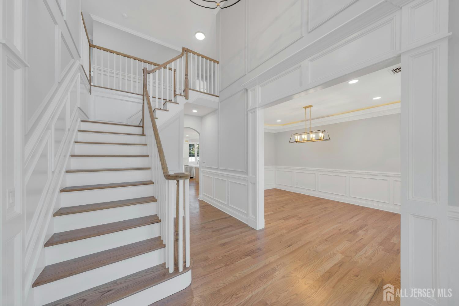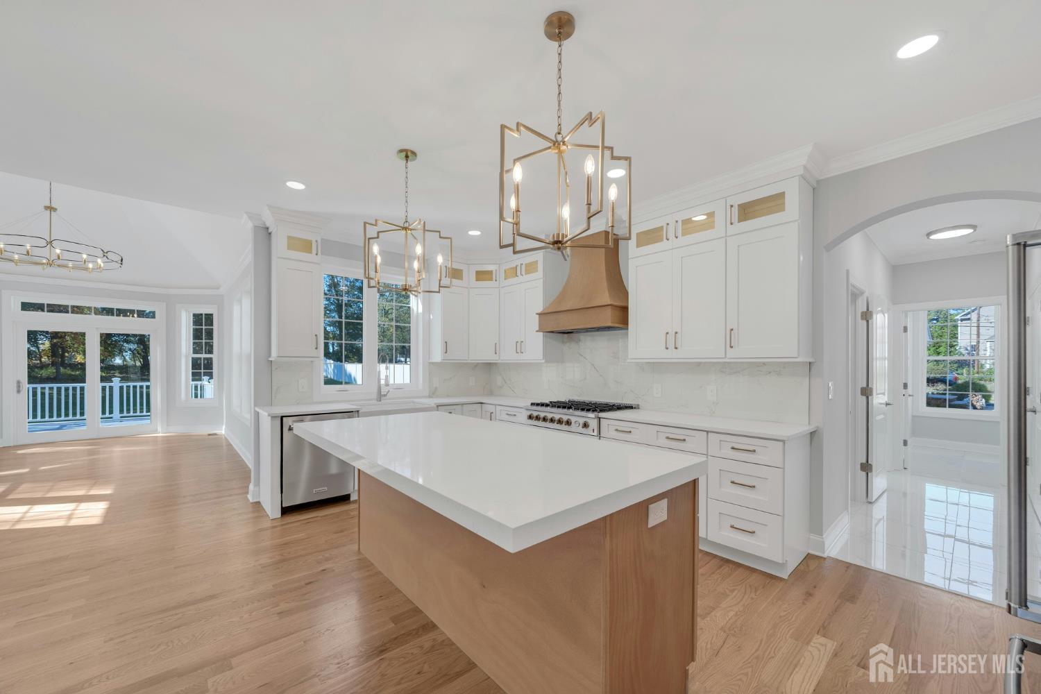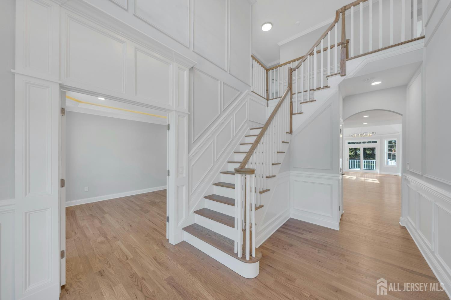 New Custom Luxury Home! This remarkably crafted home is situated on a large wooded lot with golf course views. Located in one of the most prestigious sections of town. Take in the beautiful views from the master bedroom balcony or relax on the large deck off of the Morning Room. The first floor has a stunning open kitchen, high coffered ceilings, large center island, and custom cabinetry with high end appliances. Home features 6 spacious bedrooms, 5 bathrooms, suite on first floor, 2 fireplaces, and 2 zone heating/cooling. Stunning master bedroom, enormous master closet with french windows, and an all marble master bathroom put this home in a class above the rest. Meticulous attention to detail is observed throughout the house from cabinetry, moldings, to inlet lighting underneath every crown molding illuminating its architectural charm. Old world craftsmanship is observed in every detail.