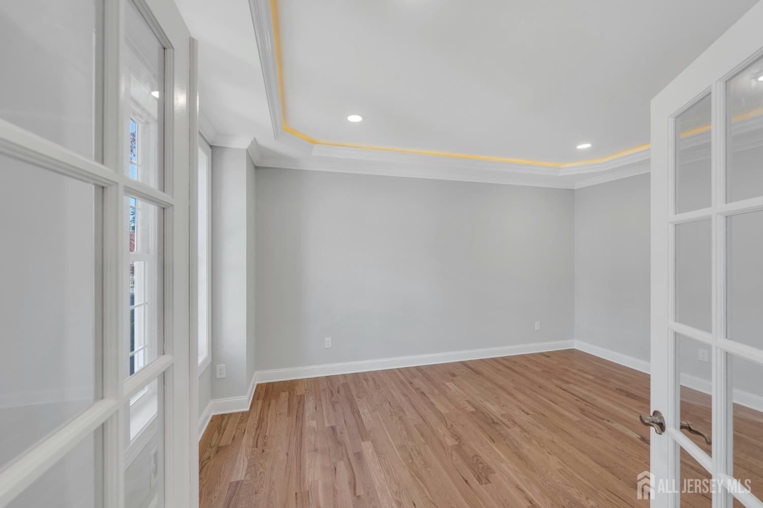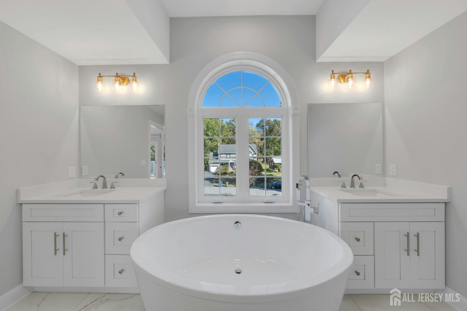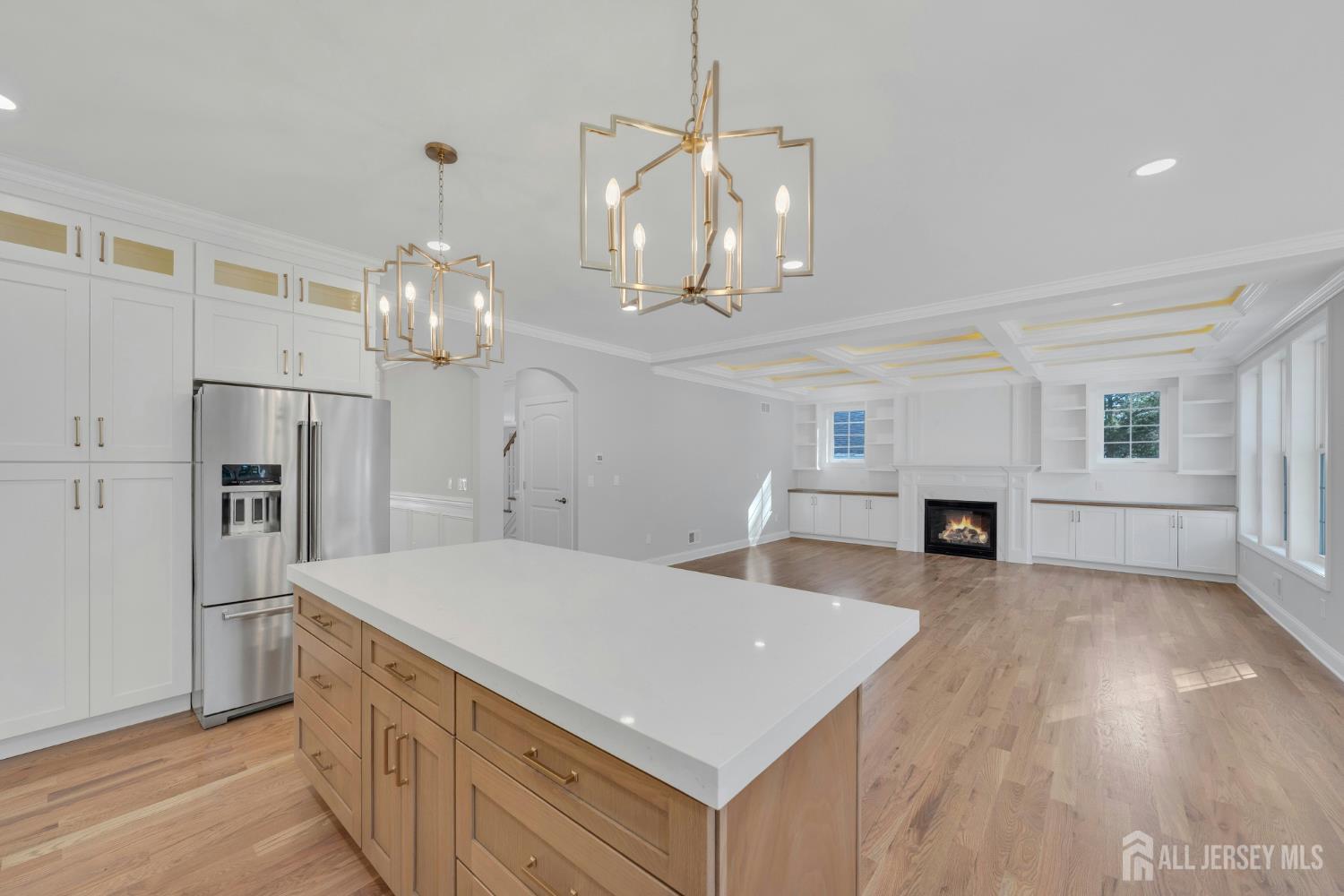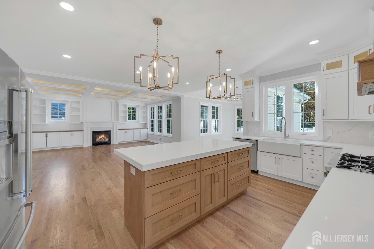 New Custom Luxury Home! This remarkably crafted home is situated on a large wooded lot with golf course views. Located in one of the most prestigious sections of town. Take in the beautiful views from the master bedroom balcony or relax on the large deck off of the Morning Room. The first floor has a stunning open kitchen, high coffered ceilings, large center island, and custom cabinetry with high end appliances. Home features 6 spacious bedrooms, 5 bathrooms, suite on first floor, 2 fireplaces, and 2 zone heating/cooling. Stunning master bedroom, enormous master closet with french windows, and an all marble master bathroom put this home in a class above the rest. Meticulous attention to detail is observed throughout the house from cabinetry, moldings, to inlet lighting underneath every crown molding illuminating its architectural charm. Old world craftsmanship is observed in every detail.