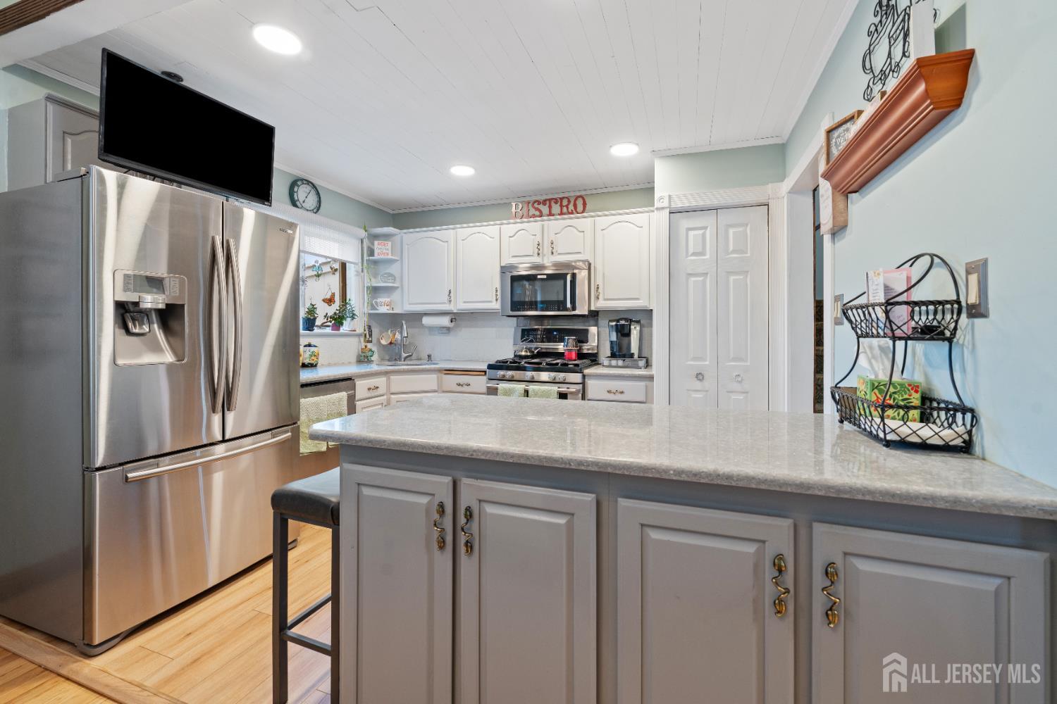 Welcome Home to this beautifully updated 3-bedroom, 2 full bath split-level home located in the desirable Vineyard Village section of Edison. This move in ready home offers a thoughtful layout featuring a open living room, dining room, and a spacious family roomperfect for everyday living and entertaining. The renovated open kitchen boasts new quartz countertops, stainless steel appliances, custom cabinetry, and hardwood flooring that flows throughout much of the home. Both full bathrooms have been tastefully renovated with modern finishes.Recent major updates include a 40-year roof, new HVAC system, upgraded electrical service, new hot water heater, and Pella windows, offering peace of mind for years to come. Outside, enjoy exceptional curb appeal with professional landscaping, a 4-car paver driveway, and a fully fenced yard. The rear yard is truly special, featuring a Florida room with new windows, a paver patio, a terraced backyard, and a park-like settingideal for relaxing or entertaining. Conveniently located close to major highways, train station, and shopping.