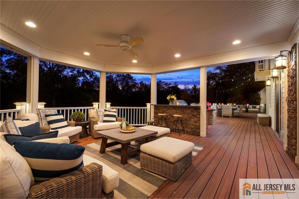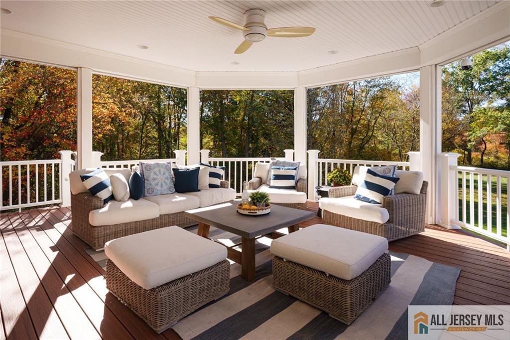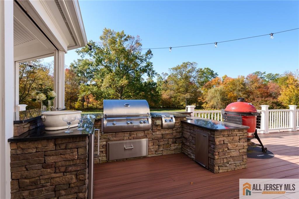Set on nearly five beautifully landscaped acres just minutes from the Princeton Junction train station, this exceptional residence offers the rare combination of complete privacy and seamless convenience. Moments from Princeton University, McCarter Theatre, and the refined dining and boutiques of downtown Princeton, the setting feels wonderfully removed. It's an estate-like retreat in the heart of it all. Thoughtfully reimagined with uncompromising attention to detail, the home unfolds with expansive yet inviting spaces designed for both grand entertaining and relaxed daily living. The open-concept kitchen and family room, redesigned in 2015, flow seamlessly to an extraordinary Trex deck. Beneath a covered pavilion with remote-controlled screens, a fully appointed outdoor kitchen showcases granite counters, a two-burner hob, a grill, beverage refrigerator, and generous seating, creating an alfresco experience worthy of a private resort. The finished walk-out lower level rivals a private club, featuring a 3D home theater, spa bath with sauna, and a French Burgundy-inspired wine cellar with dual refrigerators and kegerator. Glass doors open to lower terraces, a hot tub, and sweeping grounds that create a true sense of escape. Versatile living spaces include a gracious great room, a private office, a mudroom, and a laundry room. Above the three-car garage, a separate-entry bonus suite with a full bath, currently serving as a music studio and gym, offers ideal accommodations for guests or a discreet home office. Every bath has been curated with spa-level finishes, including the indulgent primary suite. A back up generator and high-efficiency systems ensure year-round comfort and peace of mind. Solar lighting, raised garden beds, and a path leading to the Millstone River complete this extraordinary lifestyle offering.