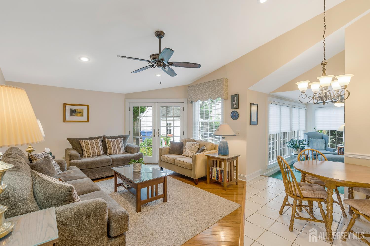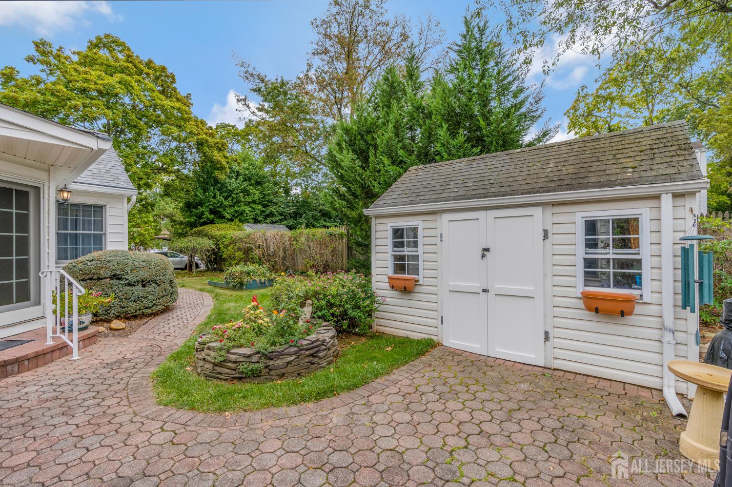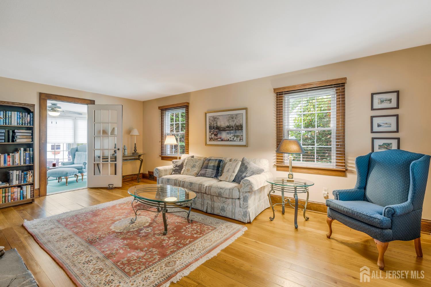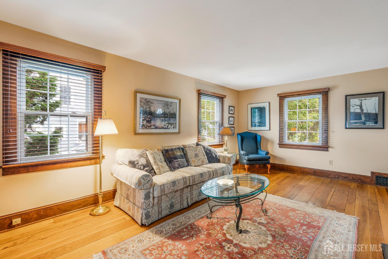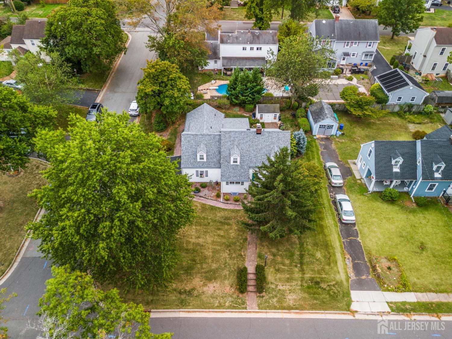 Welcome to this beautifully maintained 4-bed, 3.5-bath home offering over 2,000 sq. ft. of living space in one of Middlesex Borough's most desirable neighborhoods, just blocks from Victor Crowell Park and Pond. From its inviting curb appeal to its thoughtfully updated interior, this home blends timeless character with modern comfort. The first floor was enhanced by an addition creating a private ensuite bedroom with full bath & laundry--a perfect option for guests or multi-generational living. The addition also introduced a bright family room w/French doors leading to the patio and open to the kitchen perfect for entertaining. The kitchen features quality cabinetry, granite counters, a breakfast bar, and plenty of workspace, seamlessly connecting to the dining room for gatherings. A sun-filled den with walls of windows brings the outdoors in, while the living room offers a wood with gas log insert fireplace creating a cozy place to unwind. A stylish half bath completes the main level. Upstairs, the primary suite with dual closets & full bath is joined by two additional bedrooms and a full hall bath. The full basement offers great storage, a second laundry setup, and flexible space for hobbies or fitness. Outdoors, enjoy a beautifully landscaped yard with a paver patio and new remote-controlled retractable awning w/lights, perfect for summer days or fall evenings. Garden beds, a charming shed, and a two-car attached garage add comfort & convenience to this move-in ready home.