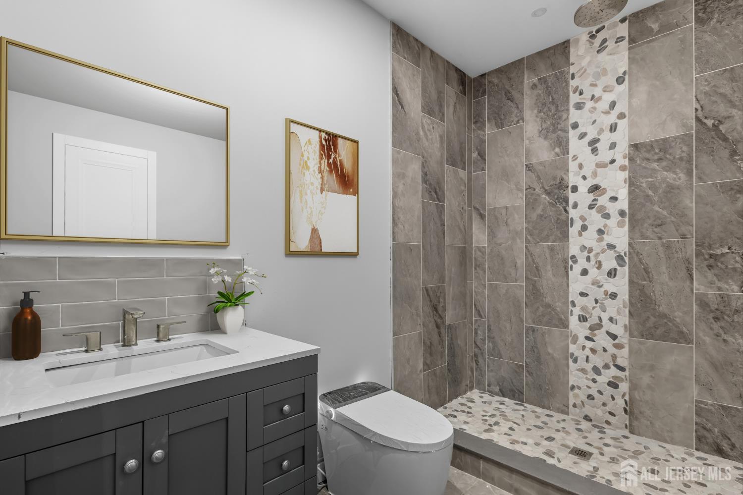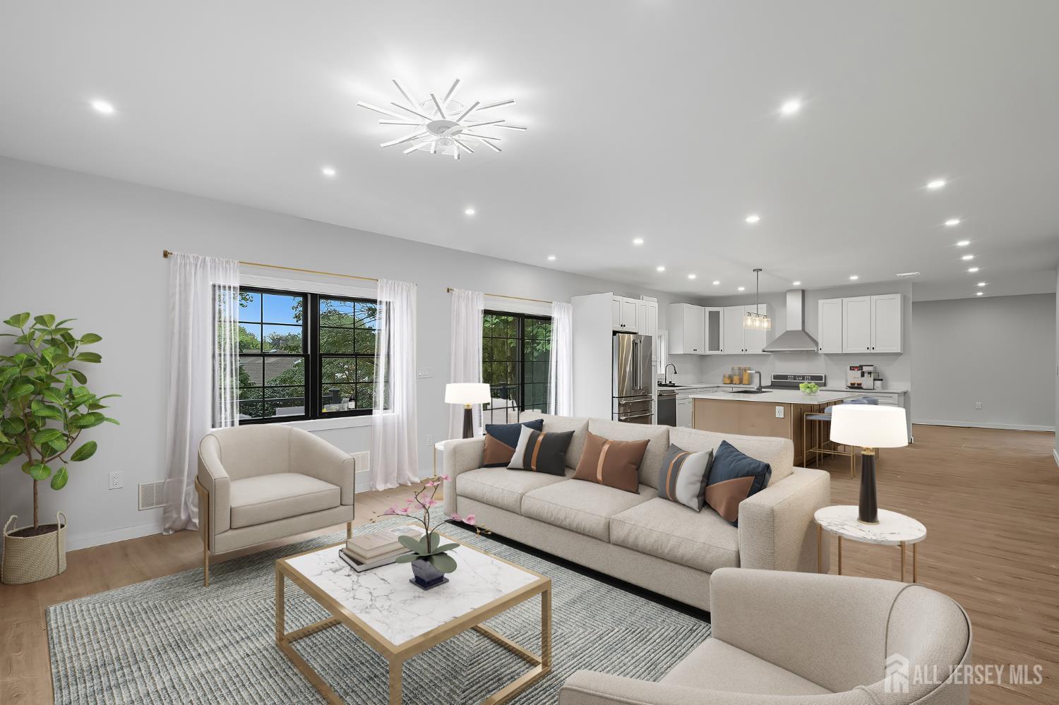 New Construction, Luxury, Space & Smart Living All in One! Experience modern elegance in this stunning 6-bedroom, 6-bathroom dream home packed with high-end finishes and cutting-edge technology. Step through a grand 65'' x 8' custom front door into a space that blends sophistication with functionality. The foyer makes a statement with porcelain flooring from Italy, a floating staircase featuring a frameless glass railing with a sleek metal handrail, and a stunning chandelier-an architectural and design centerpiece that sets the tone for the home's modern luxury. Enjoy natural light streaming through Andersen windows and patio doors, and entertain effortlessly on the expansive 12' x 36' deck. The gourmet kitchen boasts quartz countertops, Cafe and Thor luxury appliances, sleek modern cabinets, and a spacious walk-in pantry. Smart fixtures include LED lighting, two smart kitchen sinks, and modern toilets-every detail thoughtfully designed. The luxurious primary suite features a soaring 12' ceiling, dual walk-in closets, and a spa-like en-suite bathroom with a jacuzzi accented with quartz. 9' ceilings throughout enhance the open feel. Additional highlights include a full second-floor laundry room and solid doors in all bedrooms and bathrooms. Car enthusiasts will love the Half-circle driveway, 4-car garage configuration (2 attached, 2 detached) with automatic doors, R-18 insulation, and pre-wiring for an electric vehicle charger. The basement with 9-foot ceilings is prepped for a wet bar, offering prime entertainment potential. This tech-forward home is wired for WiFi and security, includes 200-amp service, two-zoned heating and cooling, two tankless water heaters, and ample storage on the third floor. Outside, enjoy paver pathways, a spacious yard, and a patio, in a location that's hard to beat-just 3 minutes to the NJ Turnpike and major highways, with shopping and entertainment nearby. Style. Space. Smart Living. Welcome Home. Limited custom selections still available for a personal touch. Pre-sale incentives offered.