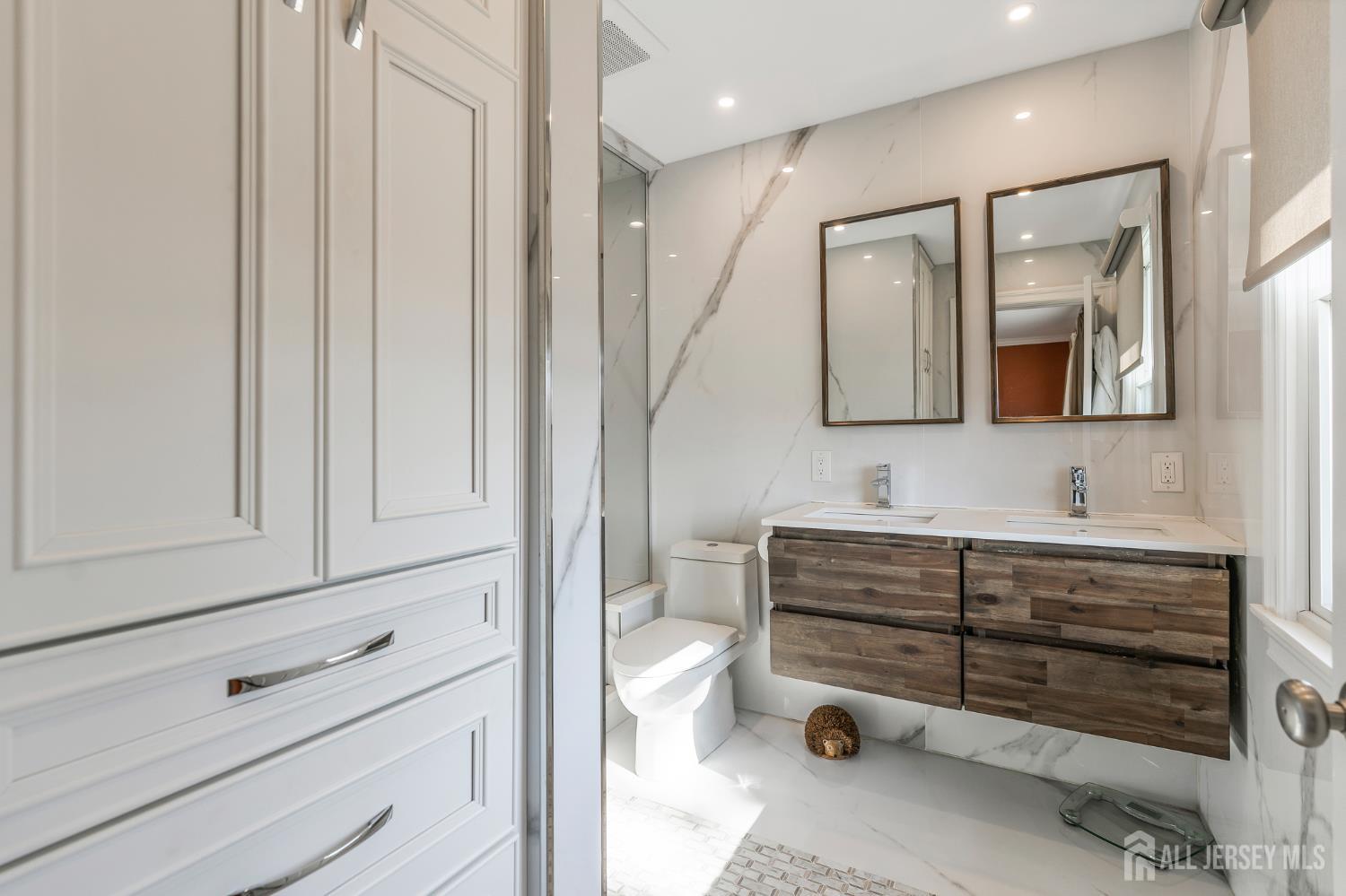 Homes like this are rarely available where every major upgrade and design detail has already been thoughtfully completed. This beautifully renovated and meticulously maintained ranch offers true move-in-ready living in one of Middlesex's most desirable residential neighborhoods, just one block from Victor Crowell Park featuring a duck pond, playground, and open green space. From the moment you arrive, the pride of ownership is evident with premium siding, Andersen 400 Series windows installed in 2021, manicured landscaping, and inviting curb appeal. Step inside to a custom mudroom with built-in bench seating, cubbies, and overhead storage. The bright living room features oak hardwood floors, a large picture window, custom built-ins with glass shelving and lighting, and a gas fireplace updated in 2022. The stunning custom kitchen is the centerpiece of the home, featuring heated herringbone porcelain tile floors, vaulted ceilings with four skylights, custom cabinetry, quartzite countertops, and high-end stainless steel appliances. A spacious eat-in area with built-ins provides the perfect gathering space. A custom staircase with sleek glass railing and built-in cabinetry with recessed TV adds a striking architectural element. The main level offers three bedrooms with hardwood flooring and custom closet systems, along with a beautifully renovated primary bathroom featuring porcelain marble walls, heated floors, dual vanity, and a Steamist steam shower. The finished basement adds exceptional living space. A massive custom laundry room with quartz counters and cedar walk-in closet greets you at the bottom of the stairs. Across from it is a large storage and utility room with a high-efficiency two-speed Trane HVAC system installed in 2021. The expansive family room includes a beverage bar, full bathroom, and egress window allowing flexible use as recreation space, guest suite, or potential bedroom. A built-in bench seating area with bookshelves and artistic Venetian plaster accent walls adds unique character. Outside, enjoy a fully fenced backyard with large cement patio ideal for relaxing and entertaining. Additional features include a one-car garage with overhead storage and GAF-certified roof installed in 2016 with limited lifetime transferable warranty. A rare opportunity to own a truly turn-key home where every detail has already been thoughtfully completed. Bigger than it looks - please view feature sheet. A must see!
