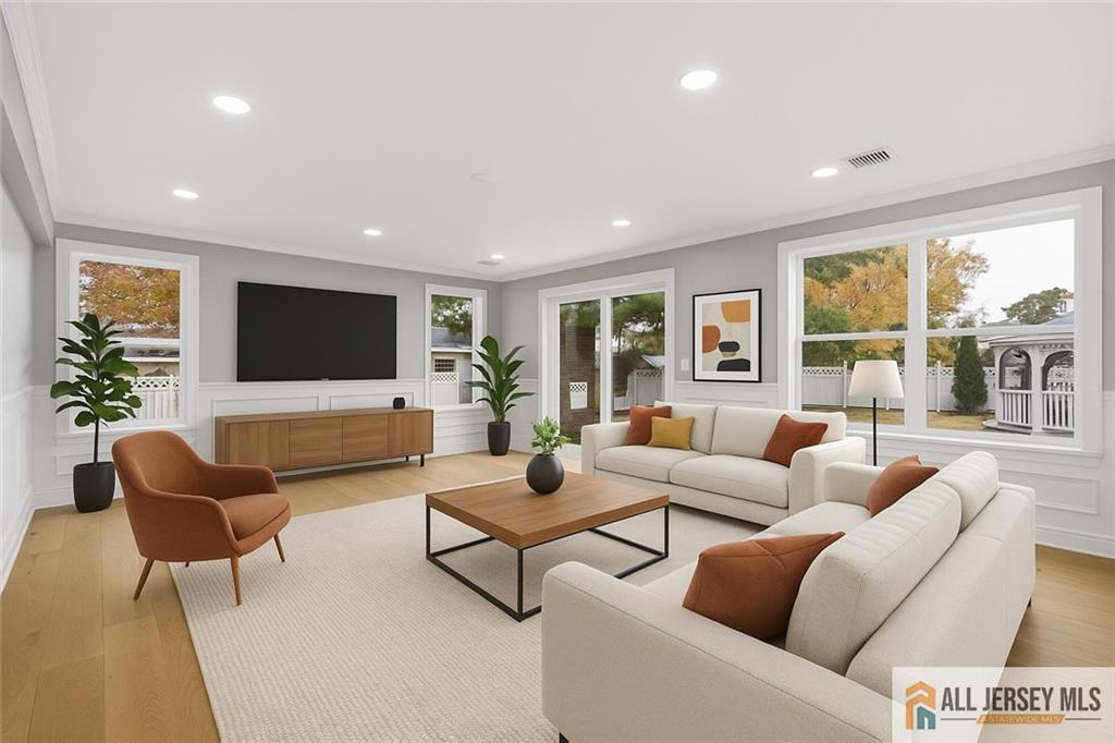 Beautiful North-East Facing 5-Bedroom 3 Bath Home with Office, Modern Upgrades and unmatched privacy. NO FLOOD ZONE Welcome to this stunning north-east facing 5-bedroom, 3-bath home featuring an additional officeperfect for today's lifestyle. The main level offers a bright and sunny living room with elegant engineered wood flooring, a formal dining area, and a spacious modern kitchen showcasing quartz countertops and ample cabinetry. A bedroom, dedicated office, and full bathroom on this level provide both comfort and flexibility for guests or work-from-home needs. Upstairs, discover four generously sized bedrooms, including a primary suite with an attached bathroom and walk-in wardrobe. The convenient 2nd-floor laundry room and luxury vinyl flooring throughout add style and practicality. Enjoy year-round comfort with 2-zone heating and cooling for energy efficiency. Step outside to a fully fenced backyard featuring a charming gazebo, ideal for entertaining or relaxing outdoors. House is nestled across the street from Victor Crowell Park and Ambrose Brook and proximity to the routes 22, 28 and 287 and RWJ University Hospital. NOT IN A FLOOD ZONE This home perfectly blends space, functionality, and modern designready for you to move in and make it your own!