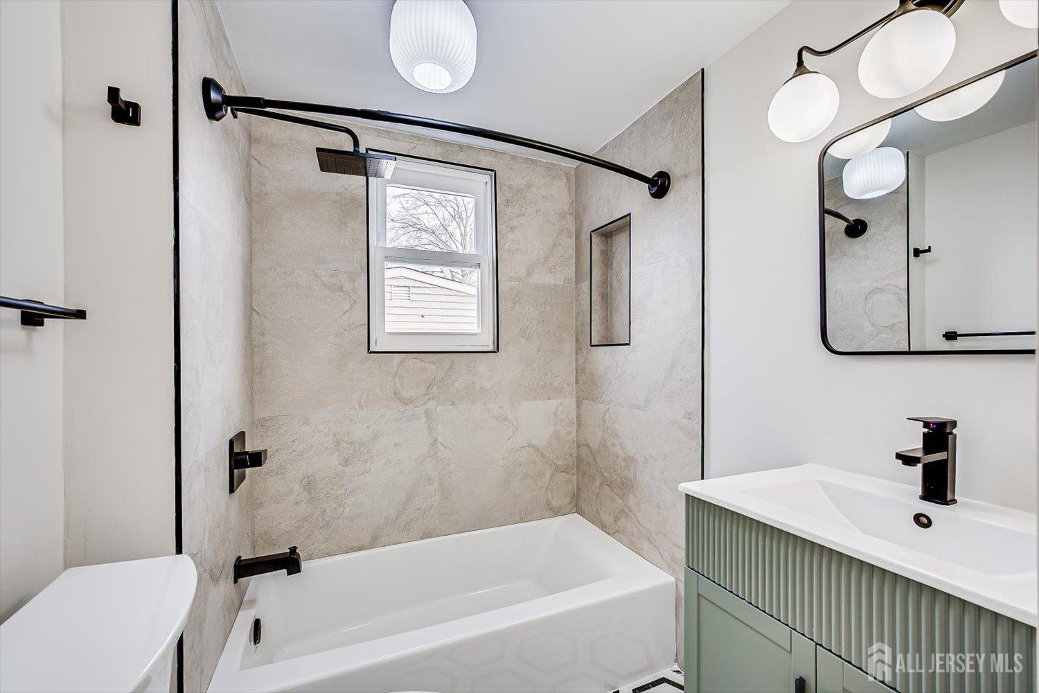Open house has been cancelled 12/14 due to snowstorm. Completely renovated Colonial located in Woodbridge Proper,a prime location for convenience and commuting. Step into the stunning new kitchen presenting superior finishes. Featuring a center island, quartz counters, tiled backsplash, upgraded hardware, recessed and accent lighting plus a fabulous tiled floor.All new stainless appliances including a slide in gas range, built in microwave, dishwasher and refrigerator. First floor features living room with bay window, dining room with detailed accent wall and recessed lighting, first floor bedroom and new full bath. Beautiful upgraded flooring on the first level. Upstairs you will find 2 more bedrooms including a large primary bedroom with a skylight and walk in closet. The oversized main bathroom boasting beautiful tiled tub/shower with gold accents. Bathroom can be accessed from the primary bedroom or the hallway. Partial basement houses the mechanicals and is equipped with washer and dryer hook ups. Outside you will find a fenced in yard with a patio and storage shed. Maintenance free vinyl siding, new roof and windows. Excellent location within one block to Mawbey Elementary School, Woodbridge train station (.7 miles/3 min drive), close to downtown, shopping and all major highways.