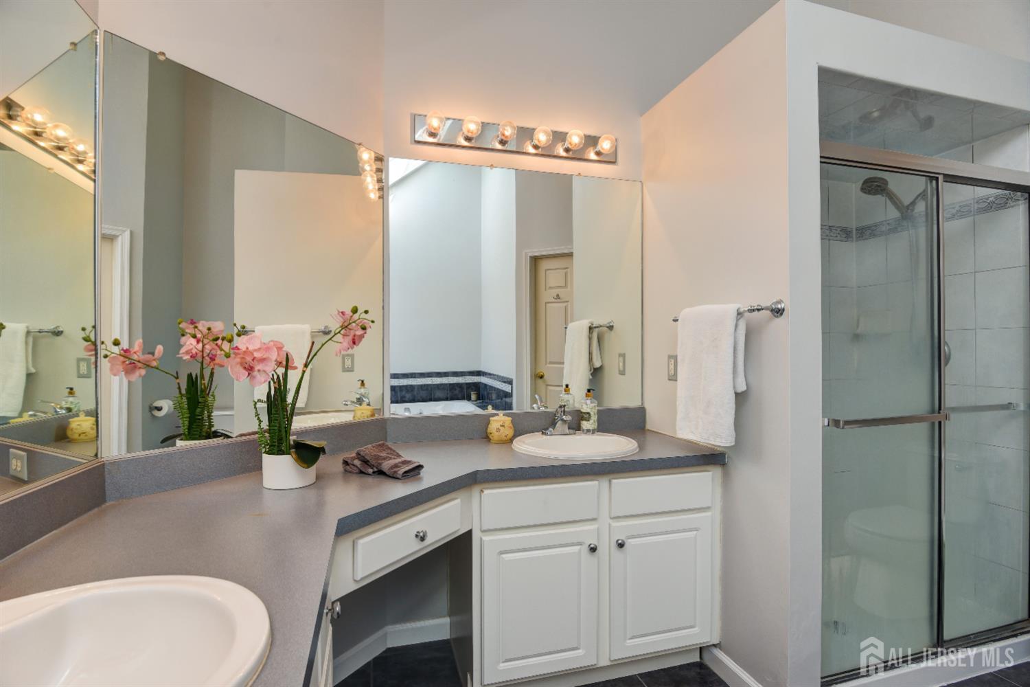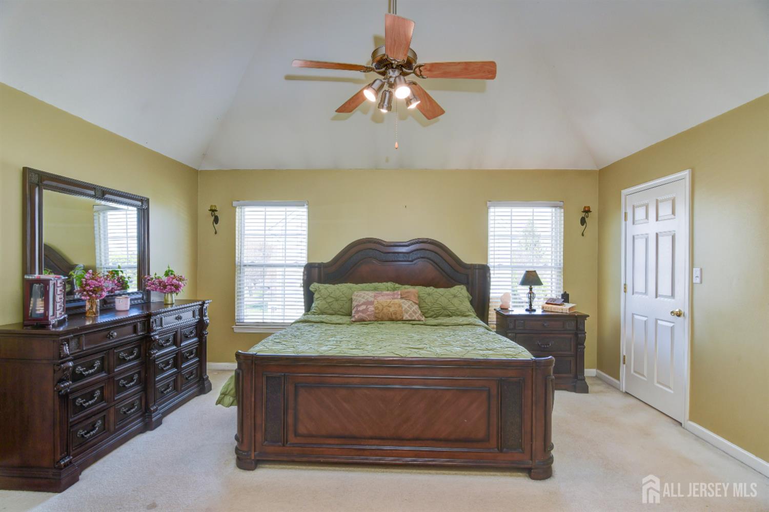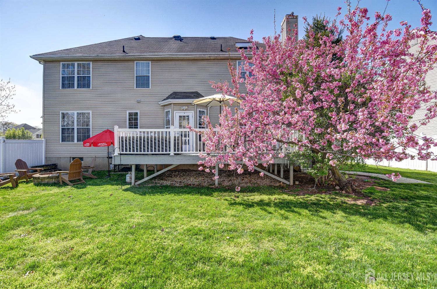 Welcome to Heritage Landing--it's not just a neighborhood, it's a lifestyle! This 4-bedroom, 2.5-bath Colonial is a true gem. A double-door entry welcomes you into a dramatic 2-story foyer with a Palladian window that fills the home with natural light. The first level features Brazilian cherry wood floors, formal living room and dining rooms, eat-in kitchen, cozy sunken family room, and powder room. Upstairs, the spacious primary suite boasts a vaulted ceiling, 2 walk-in closets, full bath with double sinks, soaking tub, shower stall, and skylight. 3 more bedrooms, full bath, laundry room and carpeting complete the second level. Additional highlights include a full unfinished basement, 2-car garage, and beautifully landscaped grounds. The fenced backyard features a deck, patio, fire pit, storage shed, and plenty of space to relax or play. Meticulously maintained, pride of ownership is evident throughout. Ideally located, this home offers easy access to shopping, major transportation, the Jersey Shore, and a variety of restaurants. Don't miss this opportunity!