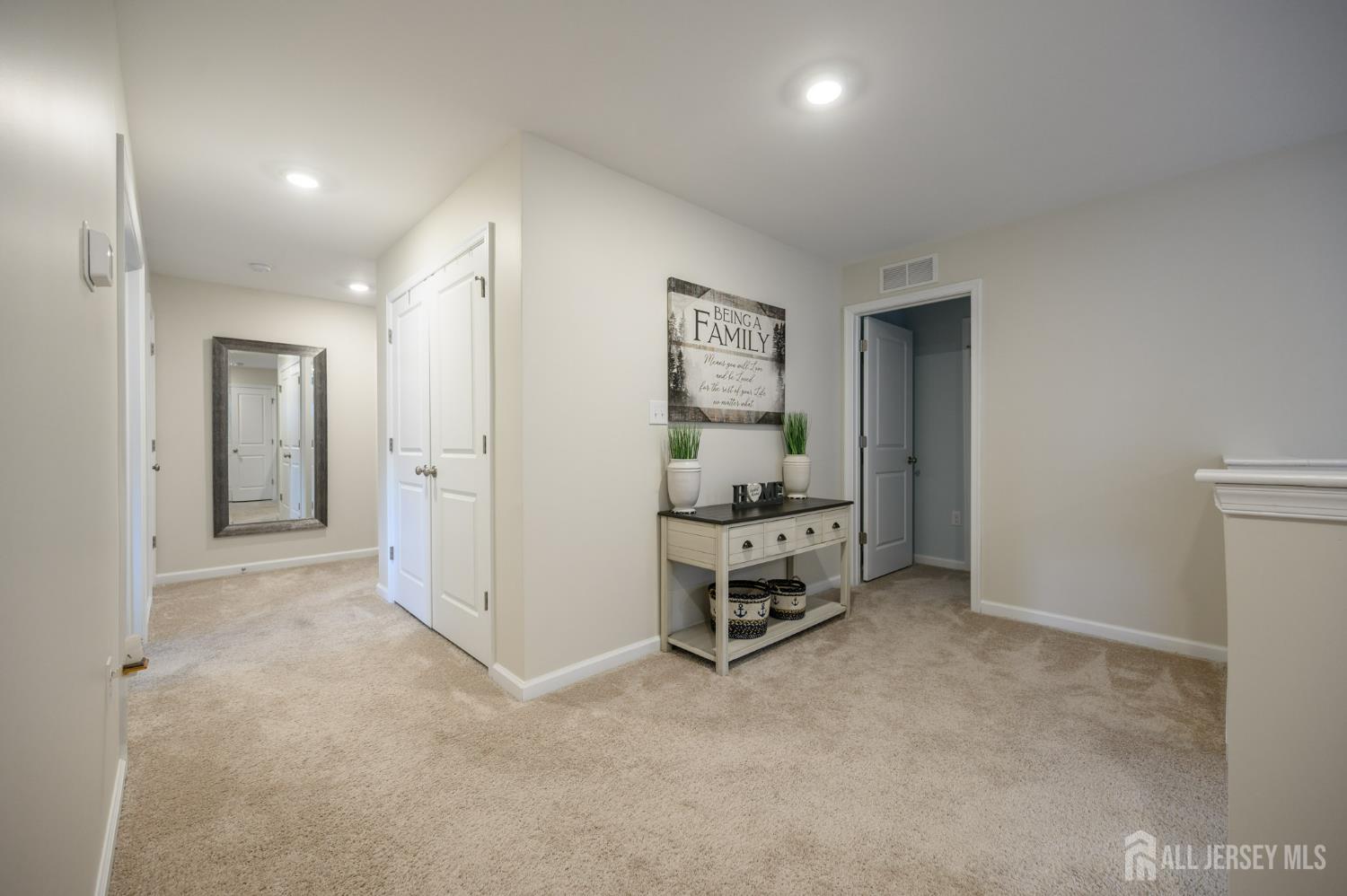 Dream Homes Do Exist! This stunning Farrington model, newly constructed by renowned D.R. Horton, is sure to impress! Boasting over 2925 square feet of luxurious living space, including 5 bedrooms, 3.5 baths, a finished basement, master suite, 2 car garage, and in-ground pool, Culligan water system, just pack your bags and move right in! Meticulously maintained inside and out with curb appeal in sought after Stafford Park, just minutes from the beach, shopping, dining and more. Foyer entry gives way to a spacious and sophisticated interior with generous room sizes, decorative moldings, luxury vinyl flooring, and plenty of natural light all through. Formal dining room adorned with elegant custom moldings makes dinner parties a breeze, extending into the lovely living room. Relax here with a cozy electric fireplace with floor to ceiling stone mantle. Gorgeous open eat-in-kitchen will delight any home chef, offering sleek SS appliances, gleaming quartz counters, ample cabinet storage, a center island that is ideal for gathering, and a sun soaked dinette space with slider to the deck for easy al fresco dining. First floor bedroom and full bath makes for accessible one level living, rounding out the main level of this gem. Upstairs, find a 2nd full bath, convenient laundry room, and 4 more generous bedrooms with plush carpeting, inc the blissful Master Suite. MBR boasts its own walk-in closet and full ensuite bath with dual sinks, stall shower, and soaking tub. Impressive finished basement is an added bonus, offering a versatile rec room, full state of the art bar, built in speakers, great hidden storage rooms, half bath, upgraded padding & carpet, ideal for entertaining. Summer barbecues are made easy with a beautiful, low maintenance backyard with paver patio, heated in-ground saltwater pool, & dog pen, fenced-in for your privacy and comfort. 2 car garage with double wide drive offers ample parking. Solar panels slash utility costs for extra savings. All of this and so much more! Don't miss out! Truly, a Turn-Key MUST SEE!! This is a Coming Soon listing and cannot be shown until 12/30/25.