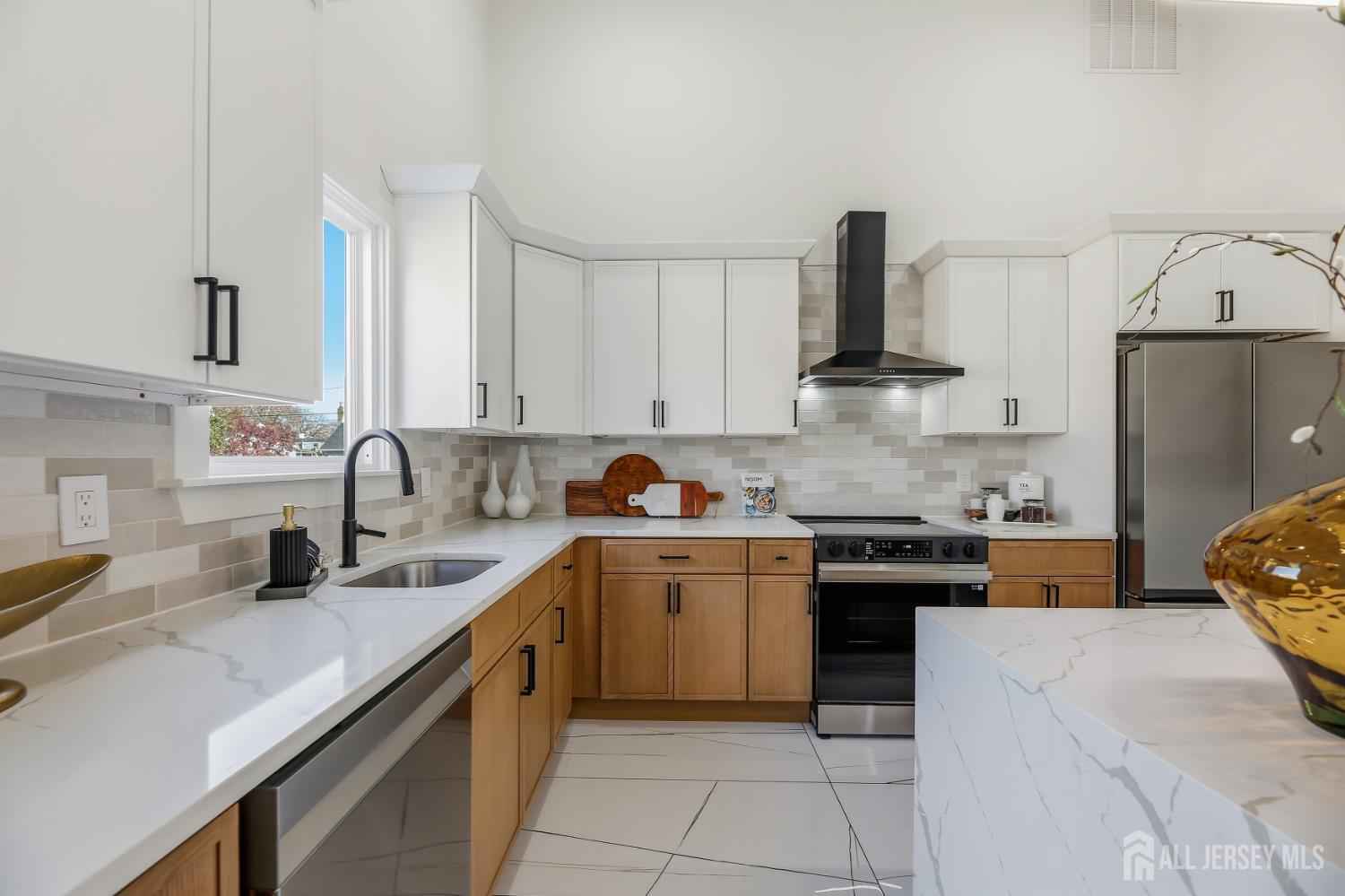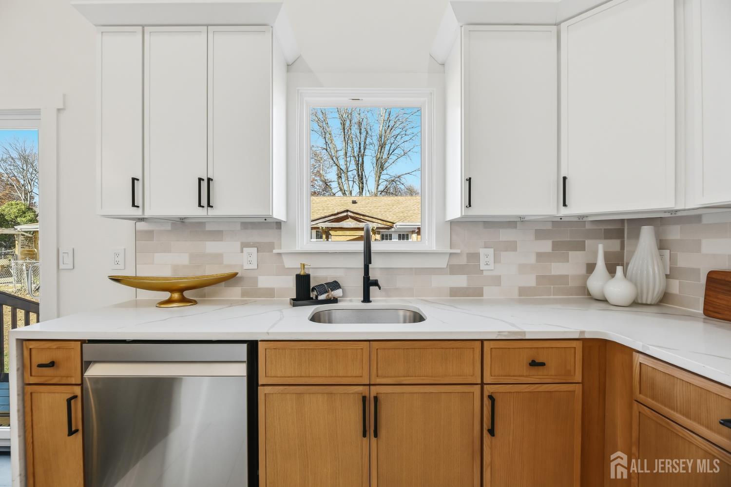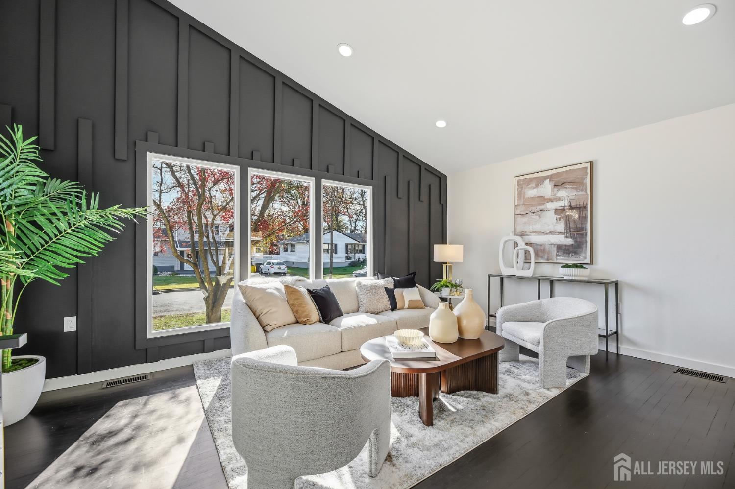 Welcome to 28 Brattle, a stunning modern transformation offering designer-curated living throughout. This fully renovated 4-bedroom, 2.5-bath revitalized split-level sits on an oversized corner lot and hosts a bright open-concept layout with vaulted ceilings, a statement custom accent wall, and large windows that illuminate the home with natural light. The chef's kitchen showcases quartz countertops, a waterfall island, two-tone shaker cabinetry, premium appliances, and elegant tile finishes. Multiple spa-like bathrooms feature dual vanities and luxury fixtures. The lower-level bedroom suite offers flexible use as an ensuite primary or a gracious guest room. Additional highlights include a brand-new roof, new HVAC, new windows, new flooring, upgraded electrical and plumbing, an attached garage, and fresh landscaping. Truly move-in ready with high-end embellishments meticulously crafted!