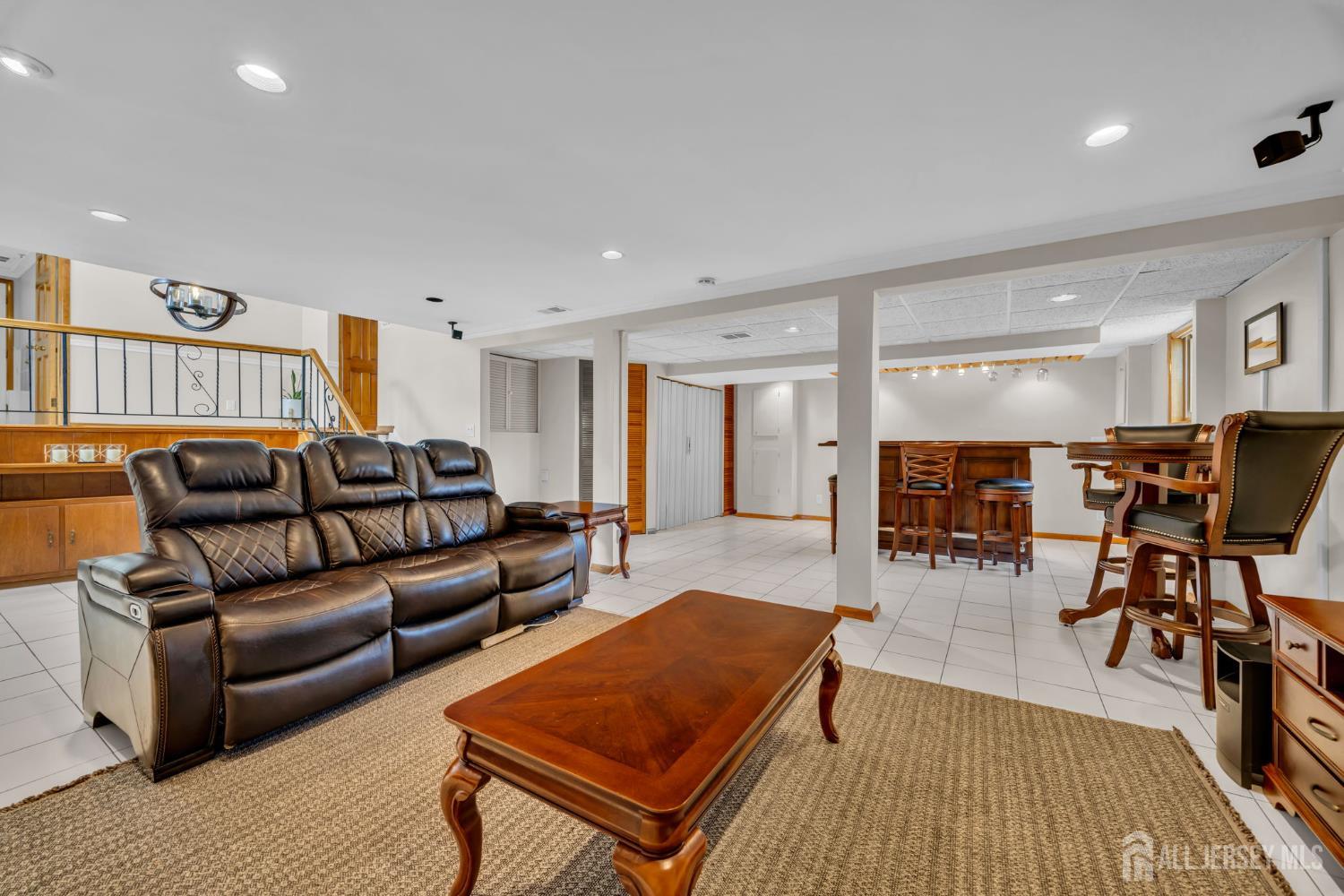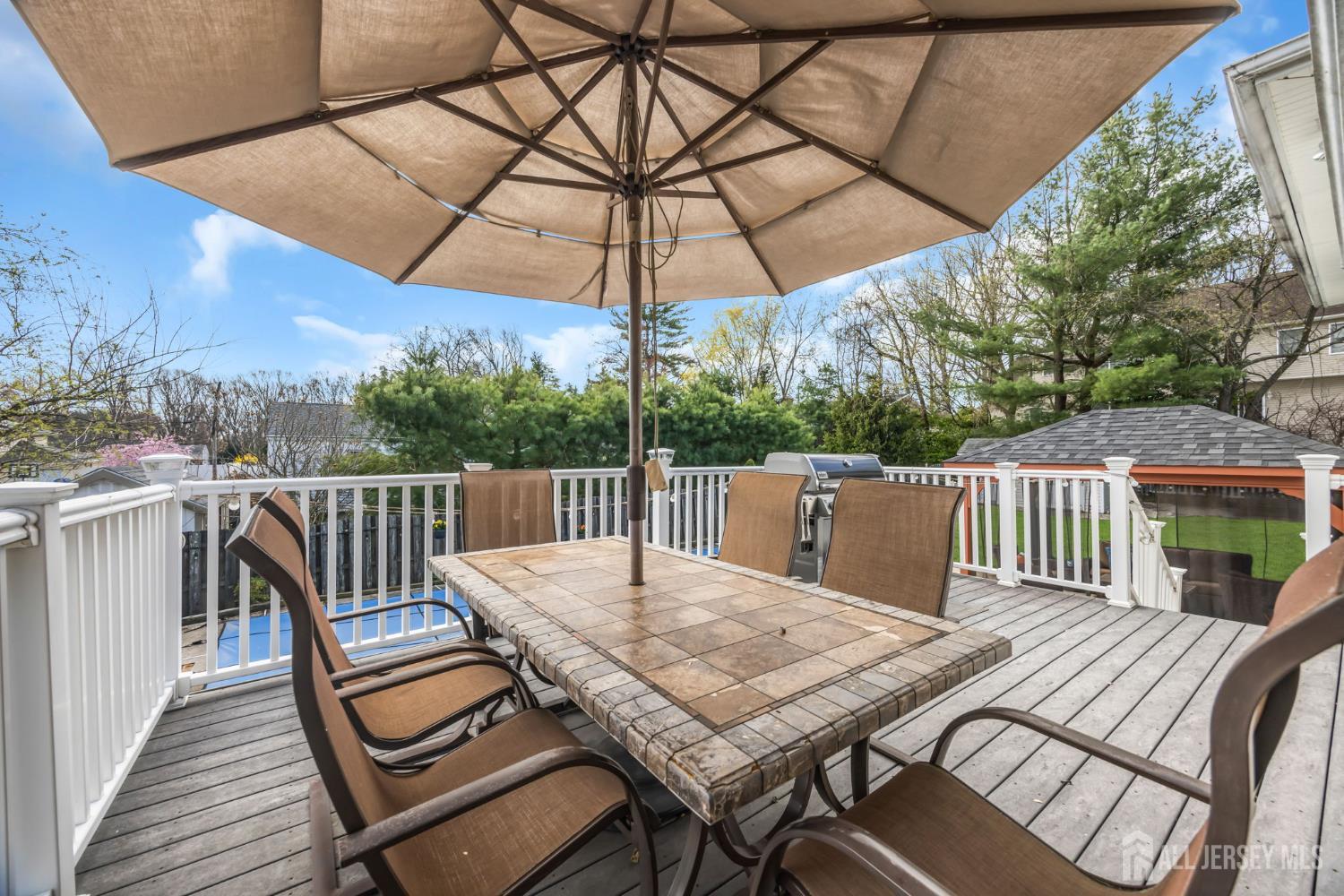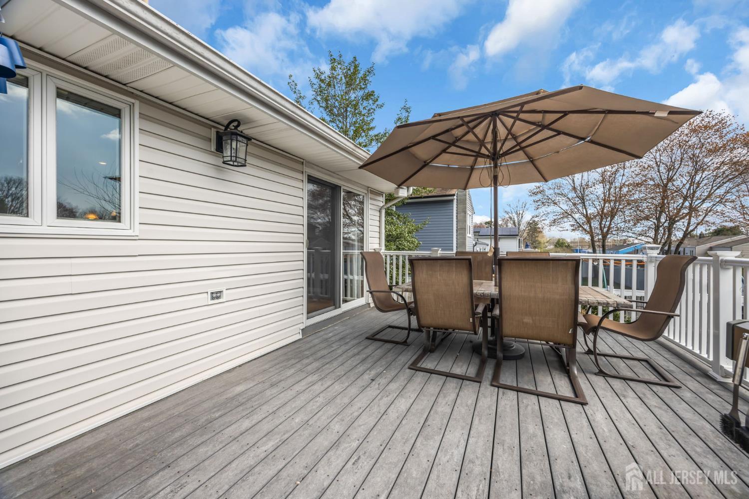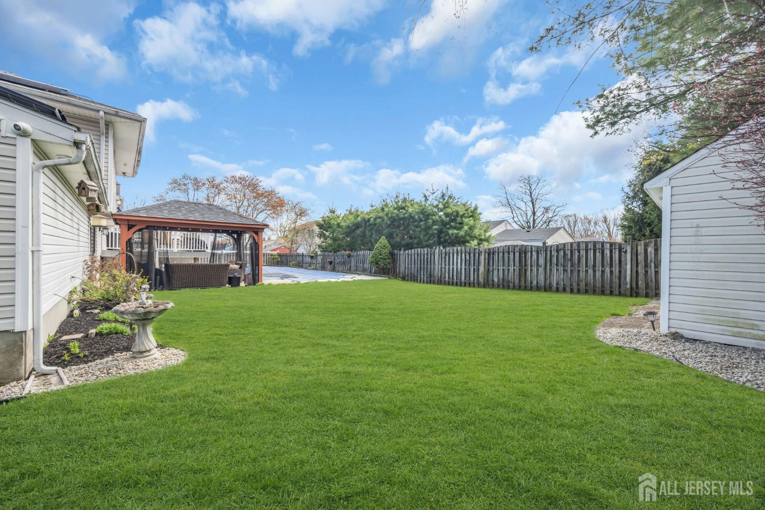 Welcome to this beautifully maintained 4 bedroom, 2.5 bath home nestled on a premium lot in a quiet dead-end street in Spotswood. Offering both privacy and space, this home combines comfort, style, and functionality in a desirable setting. Step inside to a stunning foyer featuring elegant marble flooring, leading into a home with rich wood floors throughout and freshly painted interiors. The updated kitchen boasts granite countertops and stainless steel appliances, perfect for both everyday living and entertaining. Recessed lighting enhances the bright, modern feel, while a built-in bar creates the perfect space for hosting guests. The thoughtfully designed layout includes a convenient first-floor bedroom, ideal for guests or multi-generational living. Additional highlights include a newer roof, a full home security system, and an irrigation system for easy lawn maintenance. Outside, your private backyard oasis awaits complete with an in-ground pool featuring a newer liner, a spacious deck, and a charming pavilion, perfect for relaxing or hosting gatherings. The oversized driveway and updated garage with new flooring provide ample parking and storage. Located as the last home on a peaceful dead-end street, this property offers a rare combination of tranquility and convenience. Don't miss the opportunity to make this exceptional home yours!