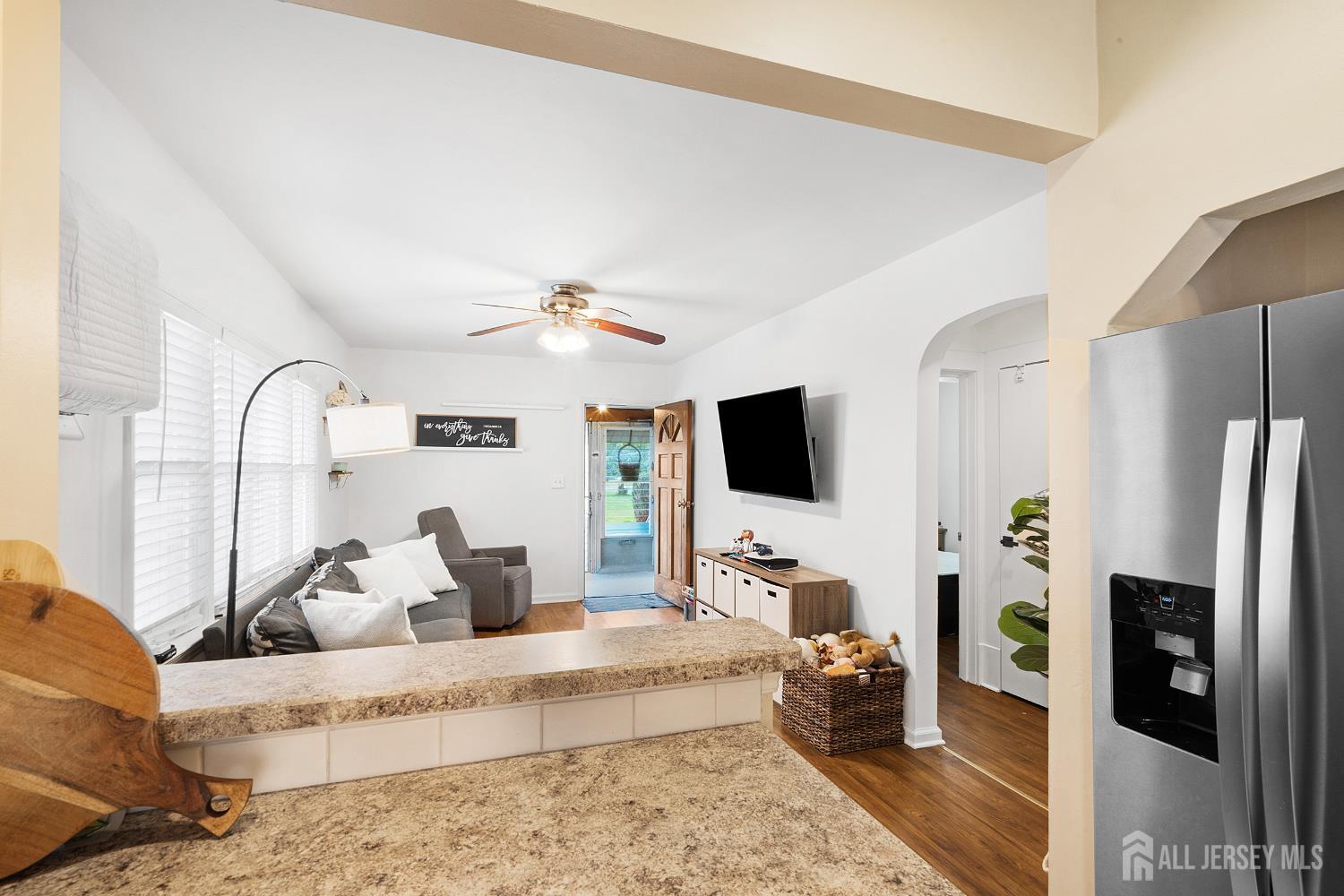 his adorable ranch is the perfect option for those looking for their 1st home, a condo alternative or looking to downsize. Why pay for association fees if you can own your own land, have your own garage and driveway with very LOW Taxes. As you enter this home you will be find the useful front porch they now use as a mudroom. Continuing inside you will notice the open space of the Living Room as you continue to the updated eat-in Kitchen and the back of home a bonus room being used as Dining Room area but you can you use as whatever you would like. That room will give you access to the back deck where you get to enjoy your private backyard. The main living area will also offer you two Bedrooms and a Full Bath. We can't forget the partially finish Basement with a good height in ceiling where you can do whatever you would like. This home is centrally located minutes from Rt. 1 & 9, NJ Turnpike, minutes from EWR Airport, many of the NYC crossings and don't forget to enjoy the amazing park just around the corner.