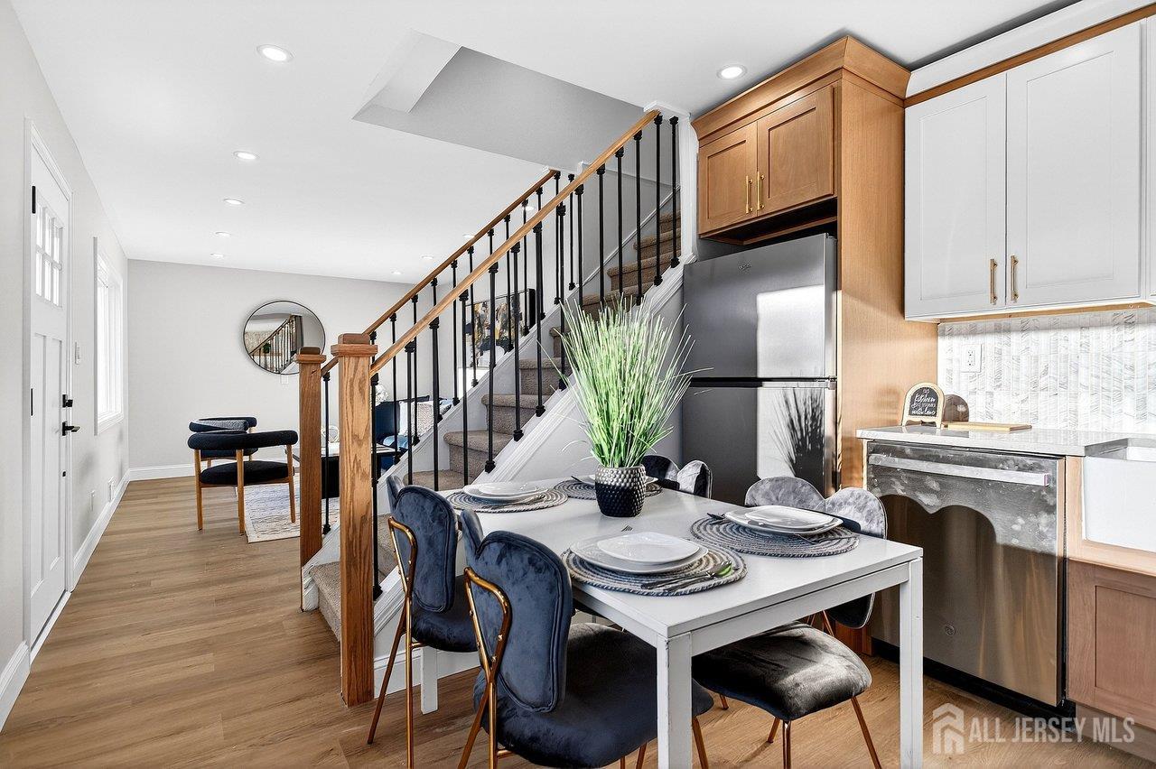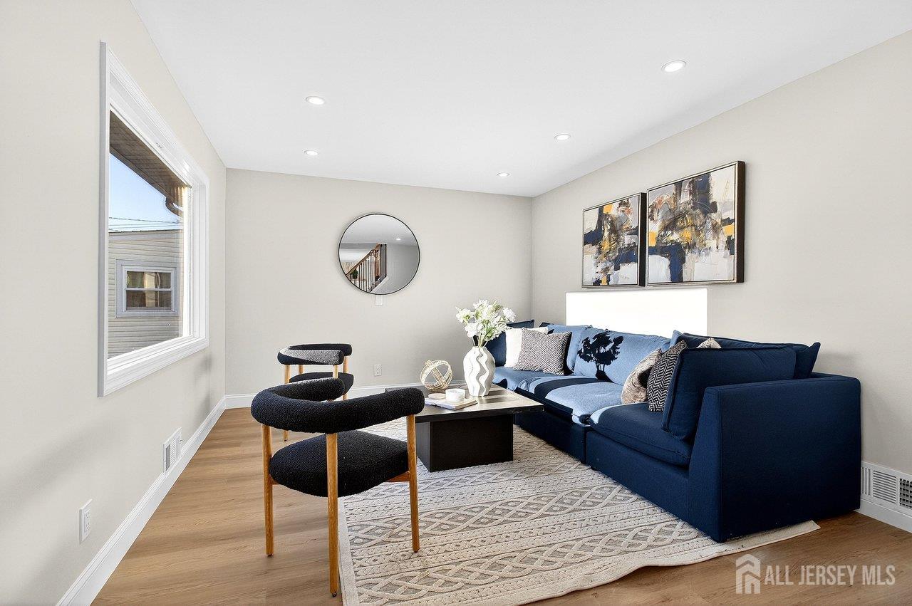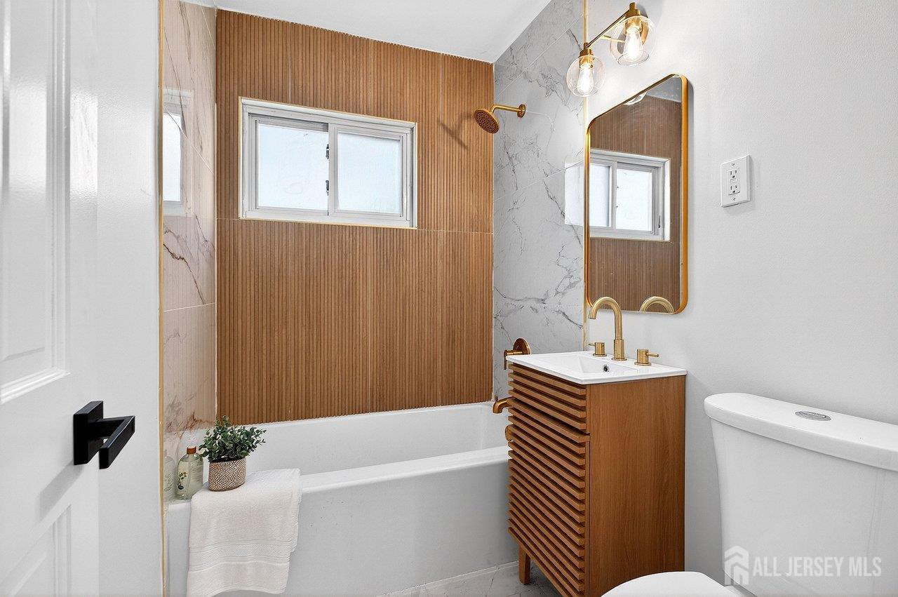 Beautifully renovated Cape Cod in the heart of Old Bridge! This 4-bedroom, 2-bathroom home has been fully updated throughout and is truly move-in ready. Featuring stylish laminate flooring, a stunning fully renovated kitchen with quartz countertops, stone backsplash, and stainless steel appliances, this home offers both modern finishes and everyday functionality. Both full bathrooms have been completely renovated with high-end finishes, including a first-floor bathroom with elegant wood accents and gold fixtures, and a beautifully updated upstairs bathroom with shower. Major upgrades include a brand-new roof, new siding, and a new HVAC system, offering peace of mind for years to come. A finished basement provides additional living space perfect for a playroom, office, or recreation area. Step outside to a fully fenced backyard, ideal for entertaining or relaxing. A perfect blend of charm, quality upgrades, and modern designdon't miss this one!