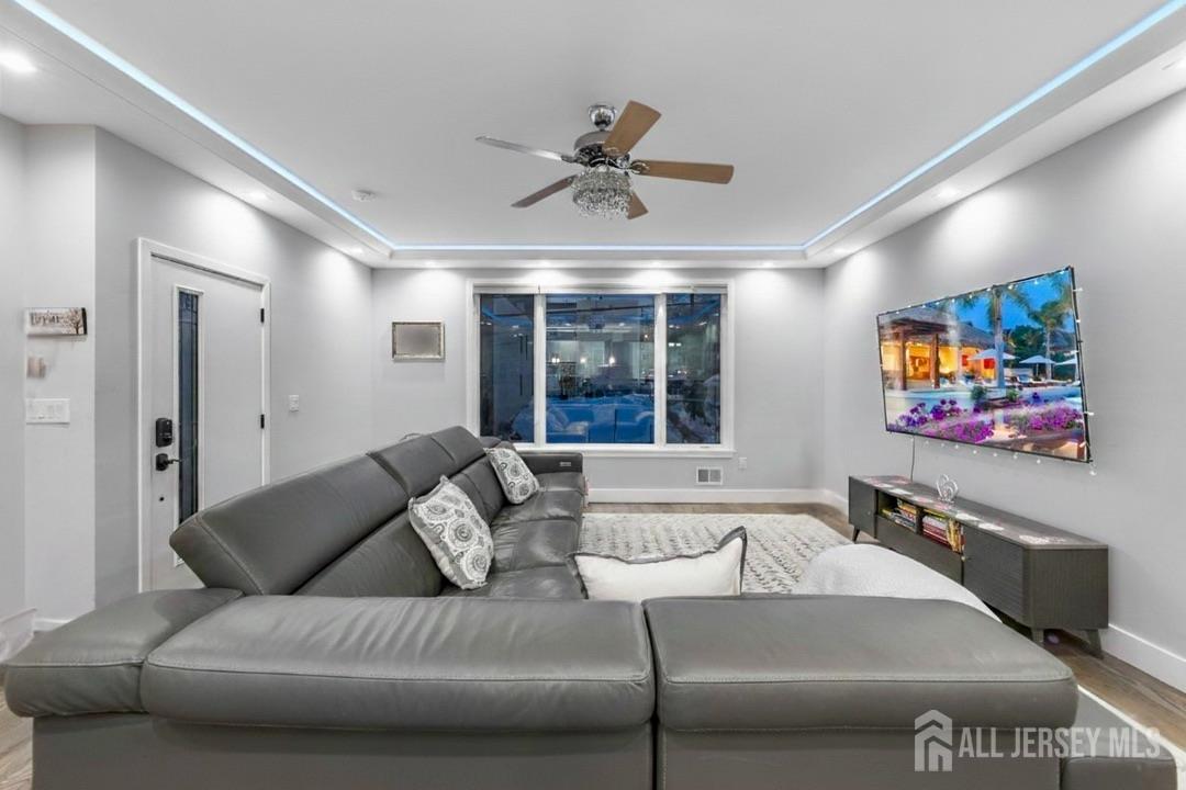 Welcome to 299 Columbia Ave, Unit 1an impressive duplex residence in the heart of Jersey City Heights. This turn-key home perfectly balances expansive living with city convenience, highlighted by an open-concept main level with vaulted ceilings and abundant natural light. This property features: 3 Bedrooms / 2.5 Baths: Generously sized with modern finishes, hardwood floors, and custom window treatments recently installed throughout the home. Expansive Family Room: A finished versatile lower-level entertaining area complete with a wet bar and convenient powder room. Finished Basement: Features rare 10-foot+ ceilings, creating an incredibly open atmosphere perfect for a home gym, media room, or guest space. Private Parking & Triple Access: Includes a coveted dedicated driveway and (3) separate entry points for maximum convenience: front door, family room walkout, and side entrance. Prime Location: Situated just moments from Washington Park, vibrant dining, and effortless transit options to NYC. Inventory of this caliber moves fast. Submit your best offer today.