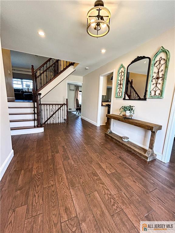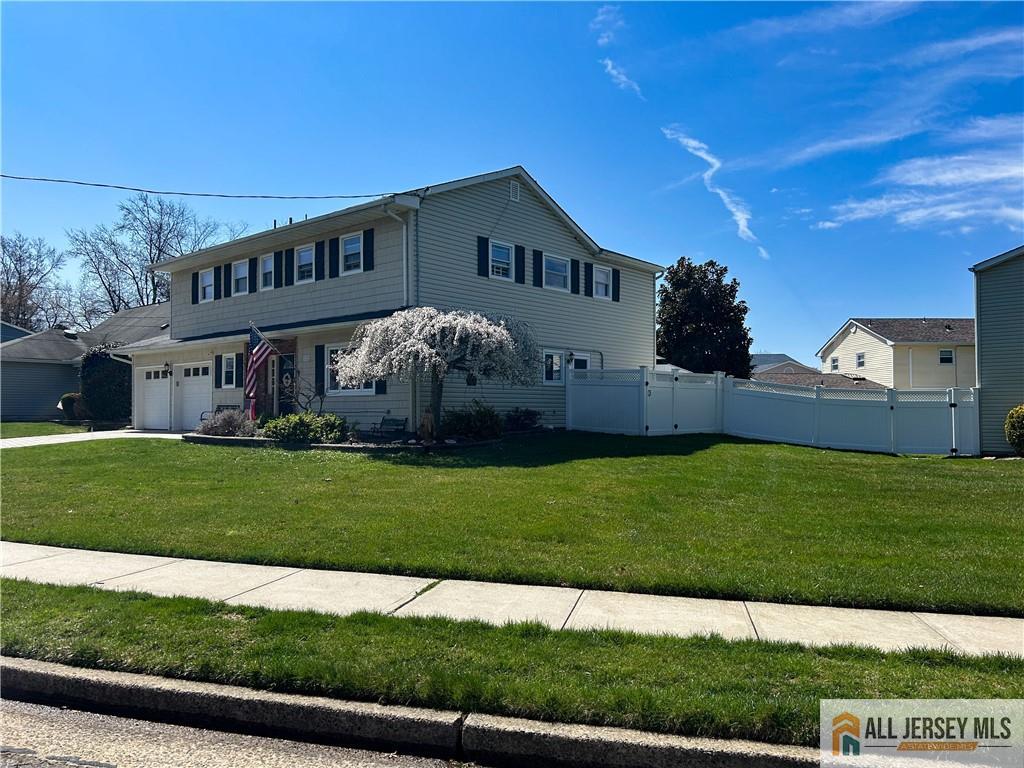 BEAUTIFUL Colonial Split-Level East facing Home located in Sought-After section of Hazlet. Welcome to this charming 4-bedroom, 2.5-bathroom Colonial Split-Level home, located in the highly desirable Raritan Valley area of Hazlet. This home combines timeless charm with modern upgrades, offering the perfect balance of comfort and style. Step inside to find gleaming hardwood floors, creating a warm and inviting atmosphere. The spacious living room, family room and formal dining room provide ample space for entertaining family and friends. The newer eat-in kitchen, features quartz countertops, sleek stainless steel appliances, ideal for home cooking enthusiasts. Relax and unwind in 2nd level living room with newer windows adding plenty of natural light. The home is equipped with recessed lighting as well as a newer furnace and central air conditioning (2022) for year-round comfort. The spacious 2 car garage has plenty of storage space. Outside, the fenced backyard is an entertainer's dream, with a large above-ground pool that has been professionally placed in the ground, making it an ideal space for summer fun. Pavers in backyard and driveway add to the elegance of the property, creating a low-maintenance yet sophisticated outdoor space. Outdoor spacious shed is staying. This is a premium size lot for the area with the bonus of views of wooded tree area. Front yard has inground sprinkler system for easy lawn care, Solar panels are an added benefit for savings of utility expense. With 4 spacious bedrooms and 2.5 bathrooms, this home is perfect for growing families or those who love to host. The location provides easy access to schools, shopping, dining, and major transportation routes, making it a commuter's paradise. Don't miss your chance to own this stunning home in Hazlet's coveted Raritan Valley! Call to Schedule your showing today for this lovely home.