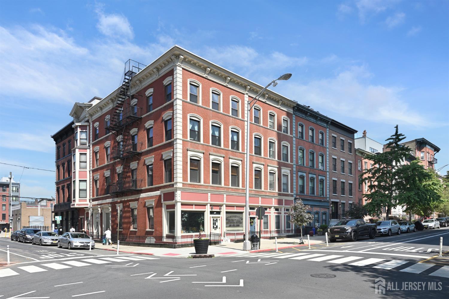 This beautifully renovated, first-floor unit is flooded with natural light from its east-facing windows, offering a bright and lofty feel. The kitchen, which has been thoughtfully updated, features quartz countertops, ample cabinetry, a breakfast bar, and stainless steel appliances including a beverage fridge. The combined living/dining space boasts crown molding, high ceilings, recessed lighting, and exposed brick for added character. The lower level provides a perfect sanctuary, featuring a fully renovated bathroom with a wide vanity, a sleek marbled countertop, and elegant beveled subway tiles. The large bedroom is spacious enough for a king-sized bed and a dedicated workspace, and includes a generous WIC. Additional features of this lovely home are hardwood floors throughout, central air, deeded garage parking right across the street, and an additional storage room in the downstairs hallway. Furthermore, approved plans are a significant value-add, allowing the new owner to install a half bath and an in-unit washer/dryer. If all this weren't enough, the location is unbeatable: just one block from everything Washington St. has to offer, only two blocks from the Hoboken Waterfront, and a mere three blocks to the Hoboken transit terminal, which includes the PATH train, NJ Transit trains, ferries, and buses, connecting you to NYC in less than 20 minutes.