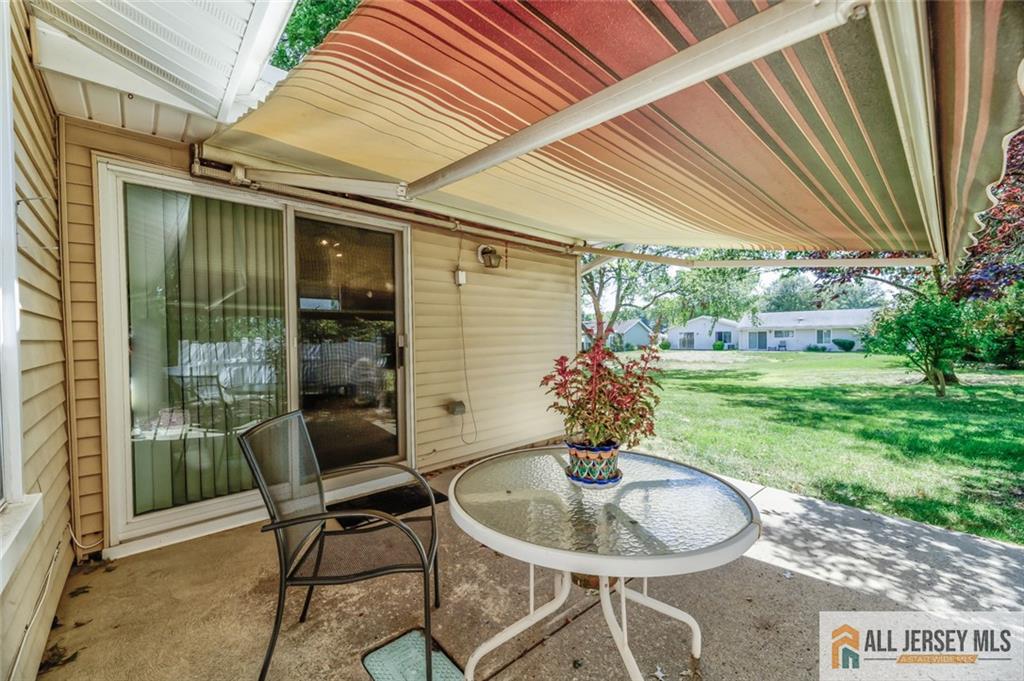 WELCOME TO CLEARBROOK, a gated, easy living 55+ community with amenities galore! No more worries about roof, yard, and exterior home maintenance -- it's all done for you! This attractive, end-unit ranch is a bright, comfortable, 3-bedroom, 2 baths with an additional room built onto it as an actual den (not a sunporch) by a contractor in 1995, making it one of the largest Braeburn 3 models in the area. Through the front, you enter the roomy living room, with dining area just beyond on the left and open to a nicely appointed kitchen on the right, with den access in back, and sliders opening to the private patio. Off the right side of the living room is a long hall featuring laundry closet, linen closet and the full hall bath. Three bedrooms are accessed from here -- the primary bedroom with attached full bath and ample closets, another bedroom with its own very generous closet, as well as a smaller 3rd bedroom which also functions well as an office, being fully wired for technology. There are good quality ceiling fans in each bedroom as well as the living room and den. The back patio offers unique privacy, with trees and shrubs, a partial 6-ft fence,and aSunsetter motorized awning providing cool shadeon a hot summer day.There's a pleasant amount of open space in the backyard and between homes. A sprinkler system, installed by owners throughout the yard, promotes lush seasonal growth. WAIT -- AND THE GARAGE IS A FABULOUS WORKSHOP, a fully insulated and heated space with sheetrocked walls and ceiling, lots of electrical outlets, lighting, shelving, a tall closet and, uniquely, a roomy attic storage space. Clearbrook offers a full schedule of activities and events year round, with lots going on at the clubhouse and cultural center, pleasant open spaces for enjoyment. Convenient to shopping, medical offices; close to Cranbury and Princeton. This home was very loved and well cared for. DON'T MISS THIS ONE!!!!