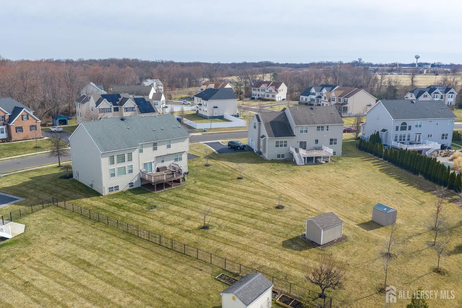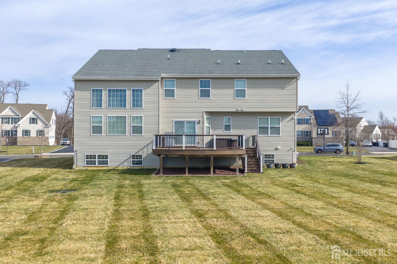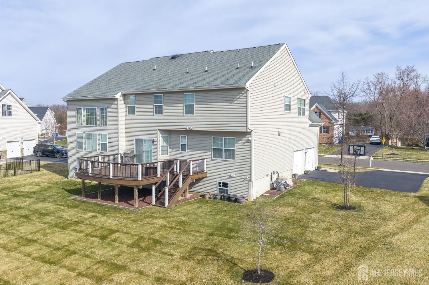 This exceptional northeast facing home is in the sought-after Bordens Crossing neighborhood of Bordentown Township, NJ, blends luxury finishes with practical upgrades on a spacious 0.46-acre lot. Built in 2013 and beautifully maintained, this 5-bedroom, 3 full bathroom residence offers approximately 3,982 square feet of refined living space perfect for families seeking comfort and style. Highlights include upgraded wood flooring throughout including a second staircase from the family room to the 2nd floor for enhanced flow. Upgraded marble tops in the bathrooms for spa-like elegance, upgraded lighting throughout for a sophisticated ambiance, and a custom, low-maintenance Trex deck ideal for outdoor entertaining. The unfinished basement is primed for finishing, boasting high ceilings and multiple large daylight windows that fill the space with natural light ideal for a future rec room, gym, or additional living areas. Smart, value-adding features ensure peace of mind and efficiency: Professionally installed $6,000 security system for enhanced protection. 2-zone HVAC system for customized comfort and energy savings. French drain around the perimeter to safeguard the foundation from moisture. Irrigation system to maintain lush landscaping effortlessly. Located in a quiet, family-friendly enclave with easy access to commuting routes, top-rated schools, parks, and nearby amenities this rare custom gem delivers premium upgrades and timeless appeal in one of New Jersey's most desirable suburbs. A true standout for discerning buyers! *Showings Start on 03/14/26*
