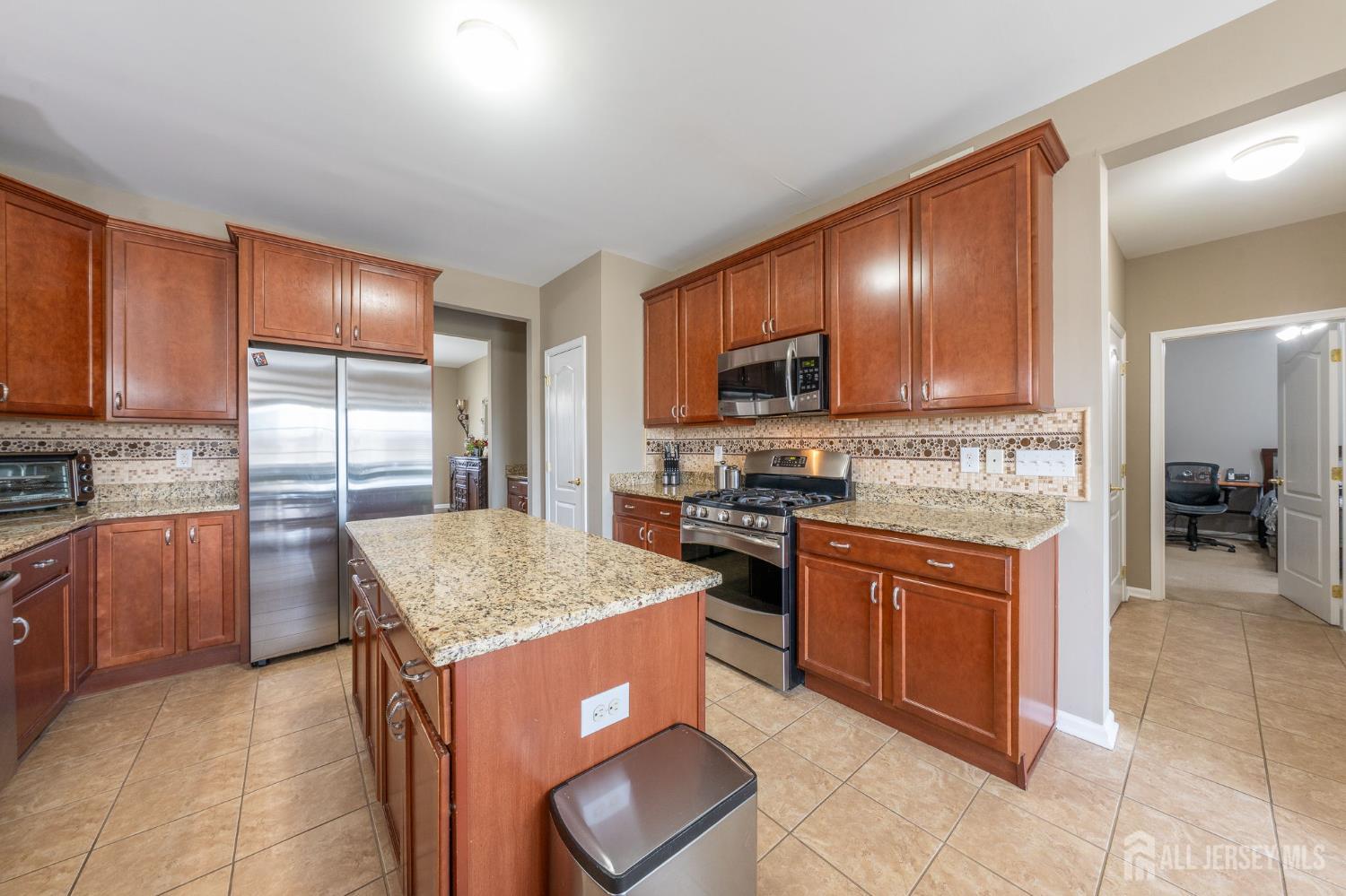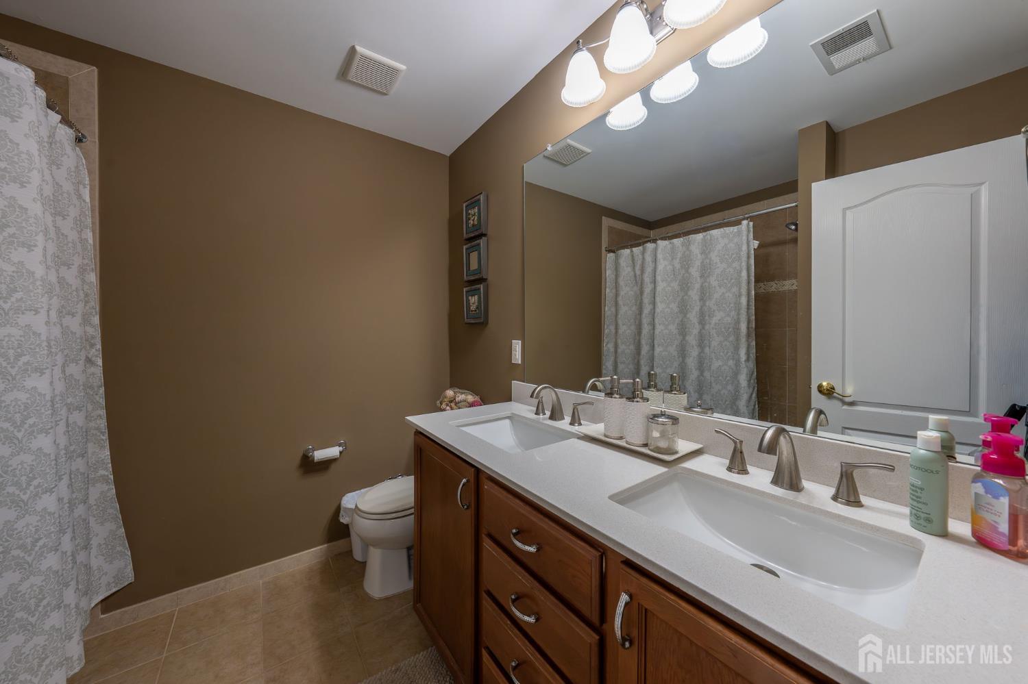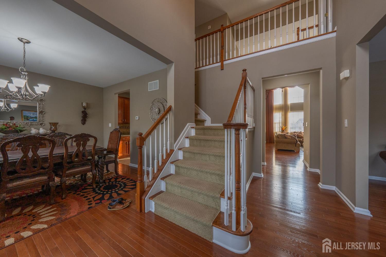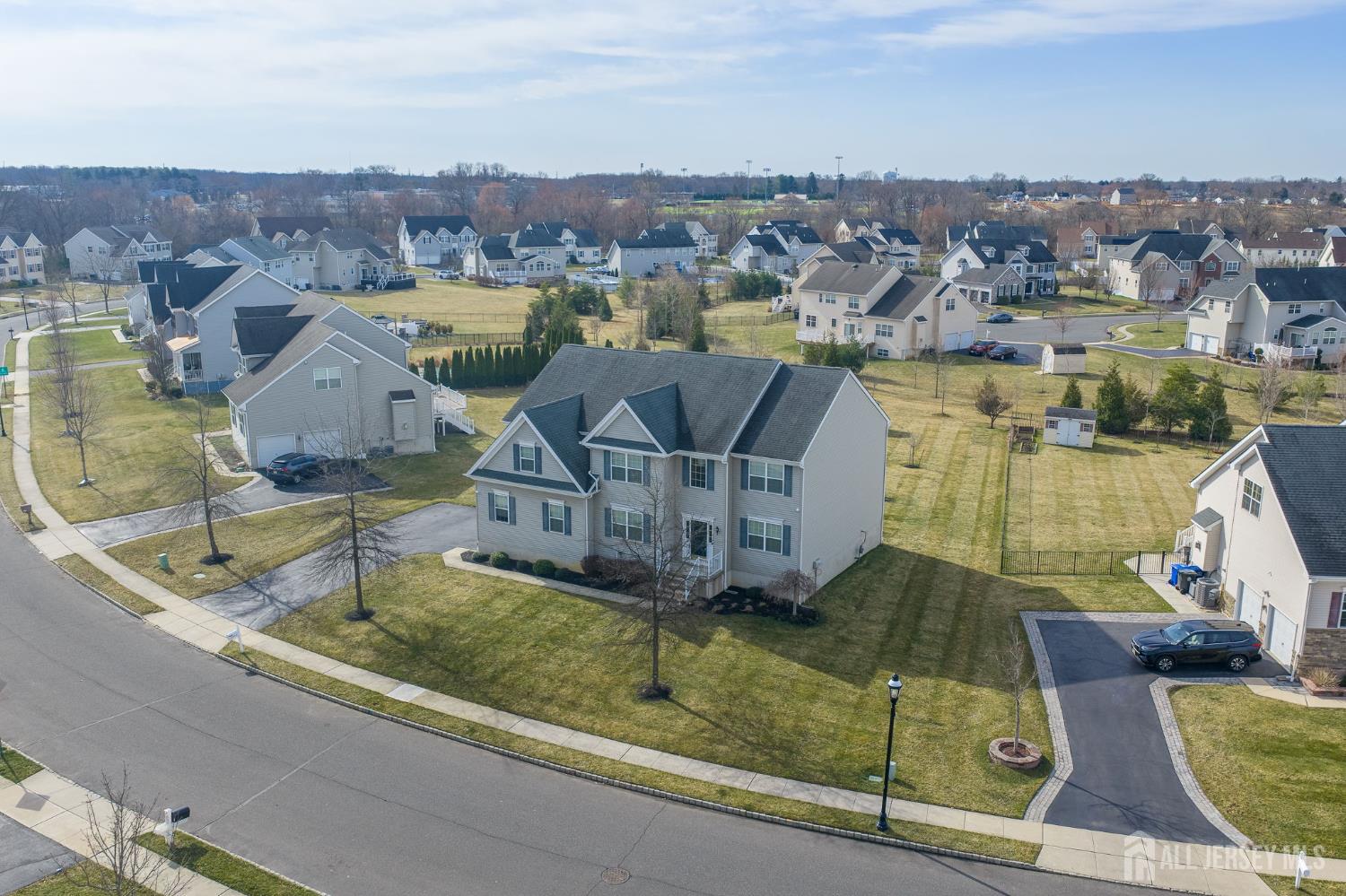 This exceptional northeast facing home is in the sought-after Bordens Crossing neighborhood of Bordentown Township, NJ, blends luxury finishes with practical upgrades on a spacious 0.46-acre lot. Built in 2013 and beautifully maintained, this 5-bedroom, 3 full bathroom residence offers approximately 3,982 square feet of refined living space perfect for families seeking comfort and style. Highlights include upgraded wood flooring throughout including a second staircase from the family room to the 2nd floor for enhanced flow. Upgraded marble tops in the bathrooms for spa-like elegance, upgraded lighting throughout for a sophisticated ambiance, and a custom, low-maintenance Trex deck ideal for outdoor entertaining. The unfinished basement is primed for finishing, boasting high ceilings and multiple large daylight windows that fill the space with natural light ideal for a future rec room, gym, or additional living areas. Smart, value-adding features ensure peace of mind and efficiency: Professionally installed $6,000 security system for enhanced protection. 2-zone HVAC system for customized comfort and energy savings. French drain around the perimeter to safeguard the foundation from moisture. Irrigation system to maintain lush landscaping effortlessly. Located in a quiet, family-friendly enclave with easy access to commuting routes, top-rated schools, parks, and nearby amenities this rare custom gem delivers premium upgrades and timeless appeal in one of New Jersey's most desirable suburbs. A true standout for discerning buyers! *Showings Start on 03/14/26*
