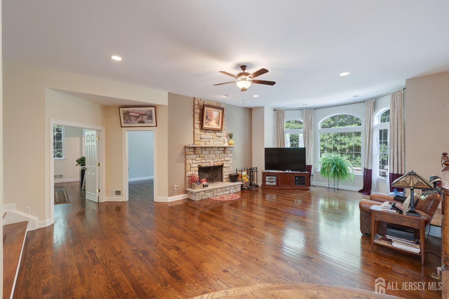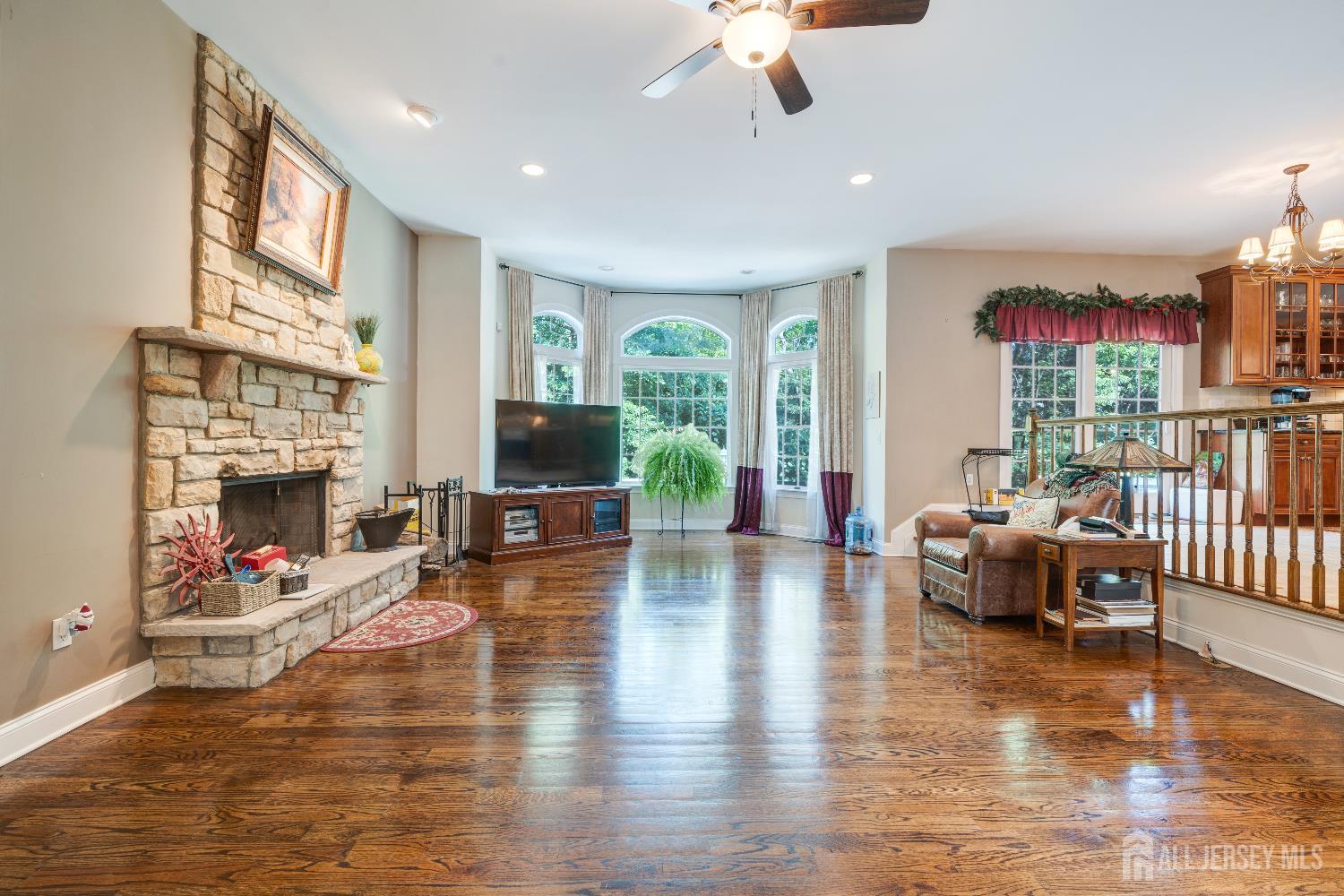 Welcome to this Stately brick-front Colonial offering nearly 5,000 sq ft of luxury living on 3 picturesque & private, level acres. A circular driveway welcomes you to this elegant home featuring hardwood floors throughout the first floor, 3 fireplaces, 2 wood burning on 1st fl & gas FP in MB and expansive, sunlit entertaining spaces. The gourmet kitchen is a chef's dream with granite countertops, center island, Sub-Zero refrigerator, Viking gas cooktop, double oven, premium stainless steel appliances, and custom cabinetry.Upstairs, find generously sized bedrooms including a serene primary suite with a gas fireplace, spa-like bathroom with travertine flooring, and ample closet space. Additional highlights include 3-zone heating and cooling (A/C 3 years old, furnace 7 years old), hot water heater (6 years old), a backyard that extends well beyond the fenced area with beautiful views of nature, storage shed, and a large, level property ideal for entertaining or a future pool. The private grounds offer a tranquil retreat. A 3-car garage and a very large (2,500+ sq ft), full unfinished basement with high ceilings provide abundant storage and the opportunity to create additional living space. Conveniently located near top-rated schools, golf, parks, shopping, and major highways. 10 minutes to Columbia Trail which is a 15-mile multi-use path, for hiking, biking & horeback riding. Also, the Chester Area Pool is near by & no pool maintenance or big expense! *Includes Peace of mind, with a Comprehensive Choice Home Warranty till 4/5/28 which covers many items & limited roof leak! This home combines privacy, sophistication, and convenience in a sought-after setting. Agent Remarks: Please email listing agent at fsavasta@njrealtypros.com with offers & Mortgage Pre-Approval &/or POF! Call listing agent with any questions.