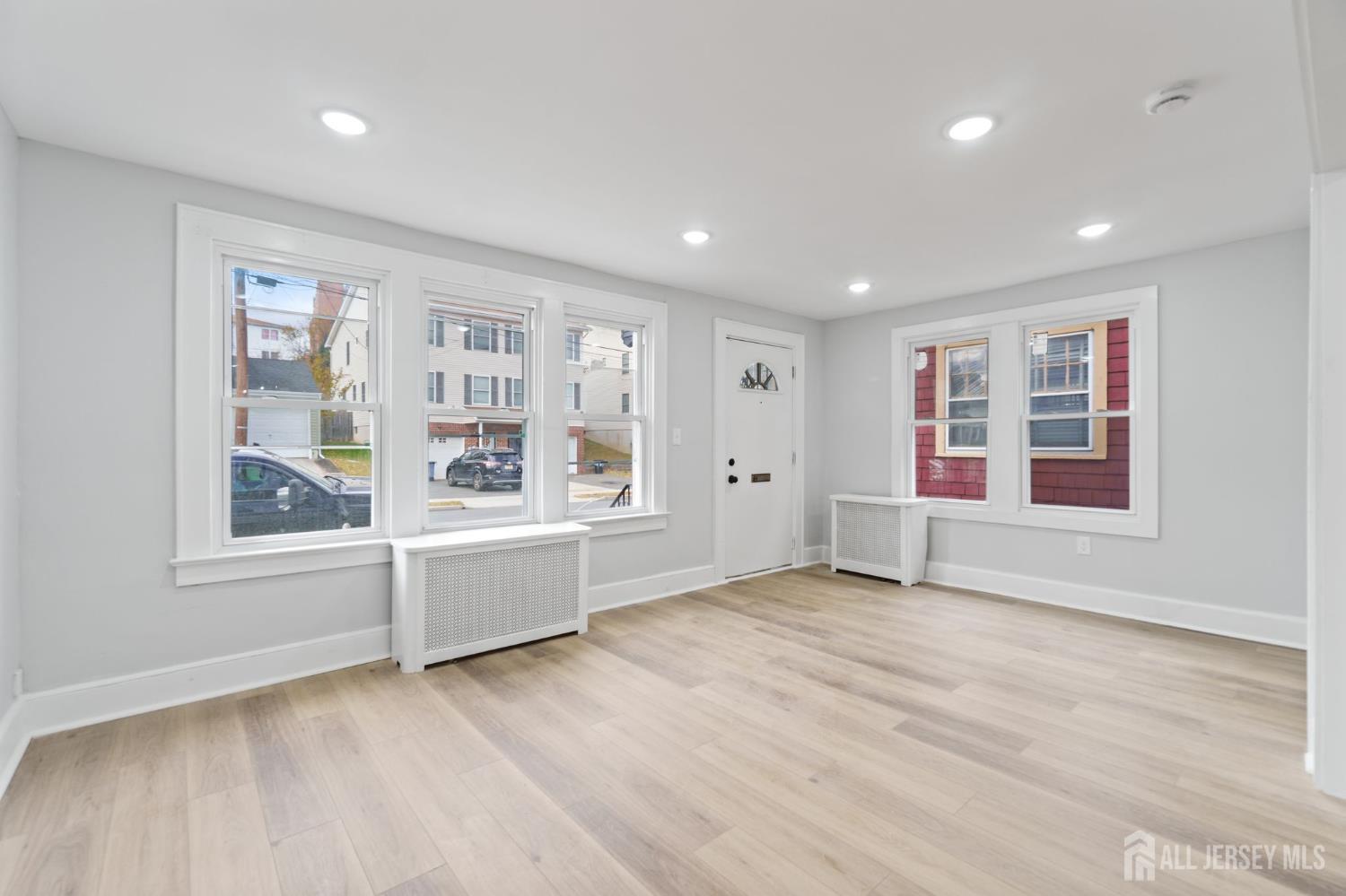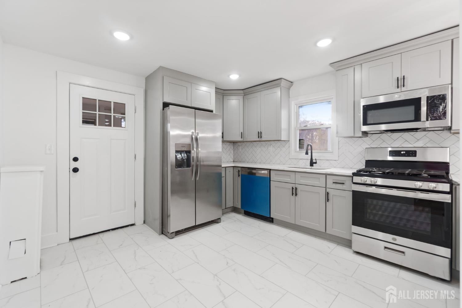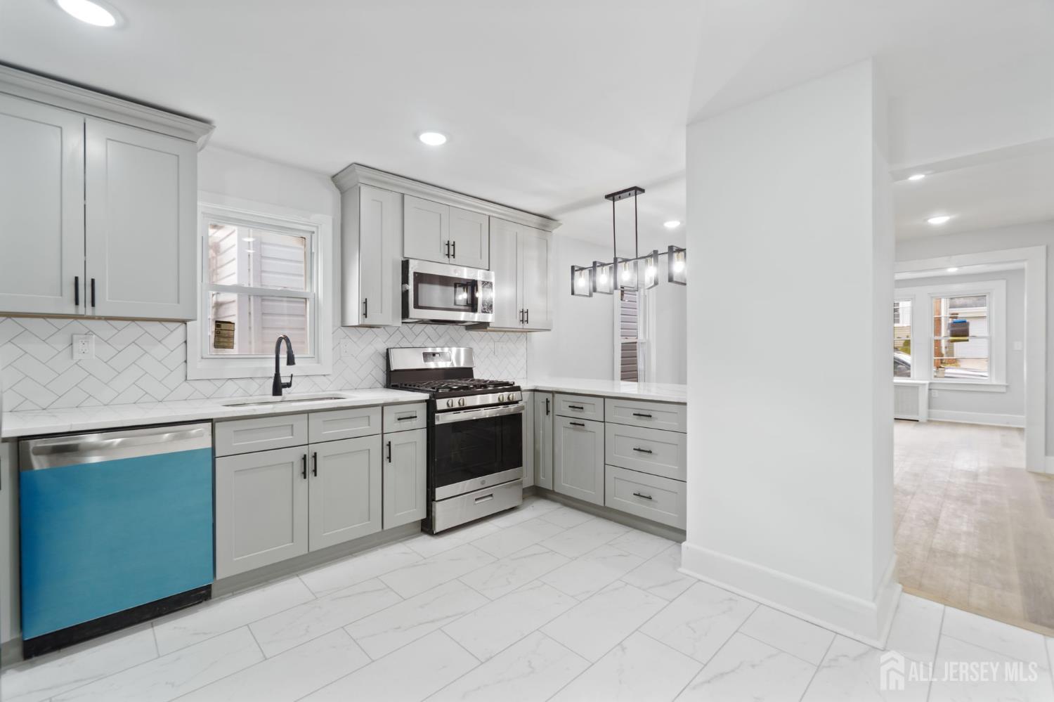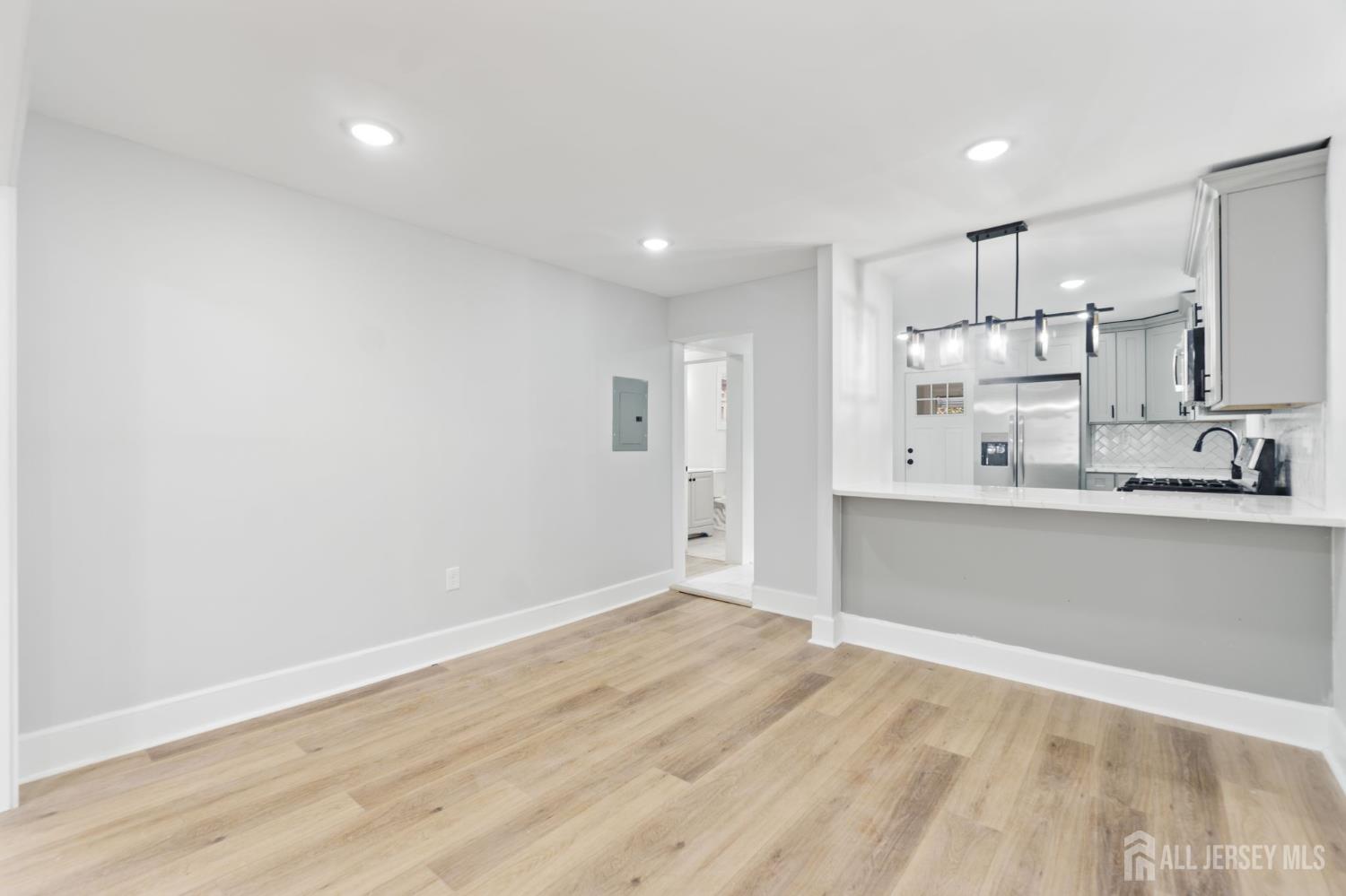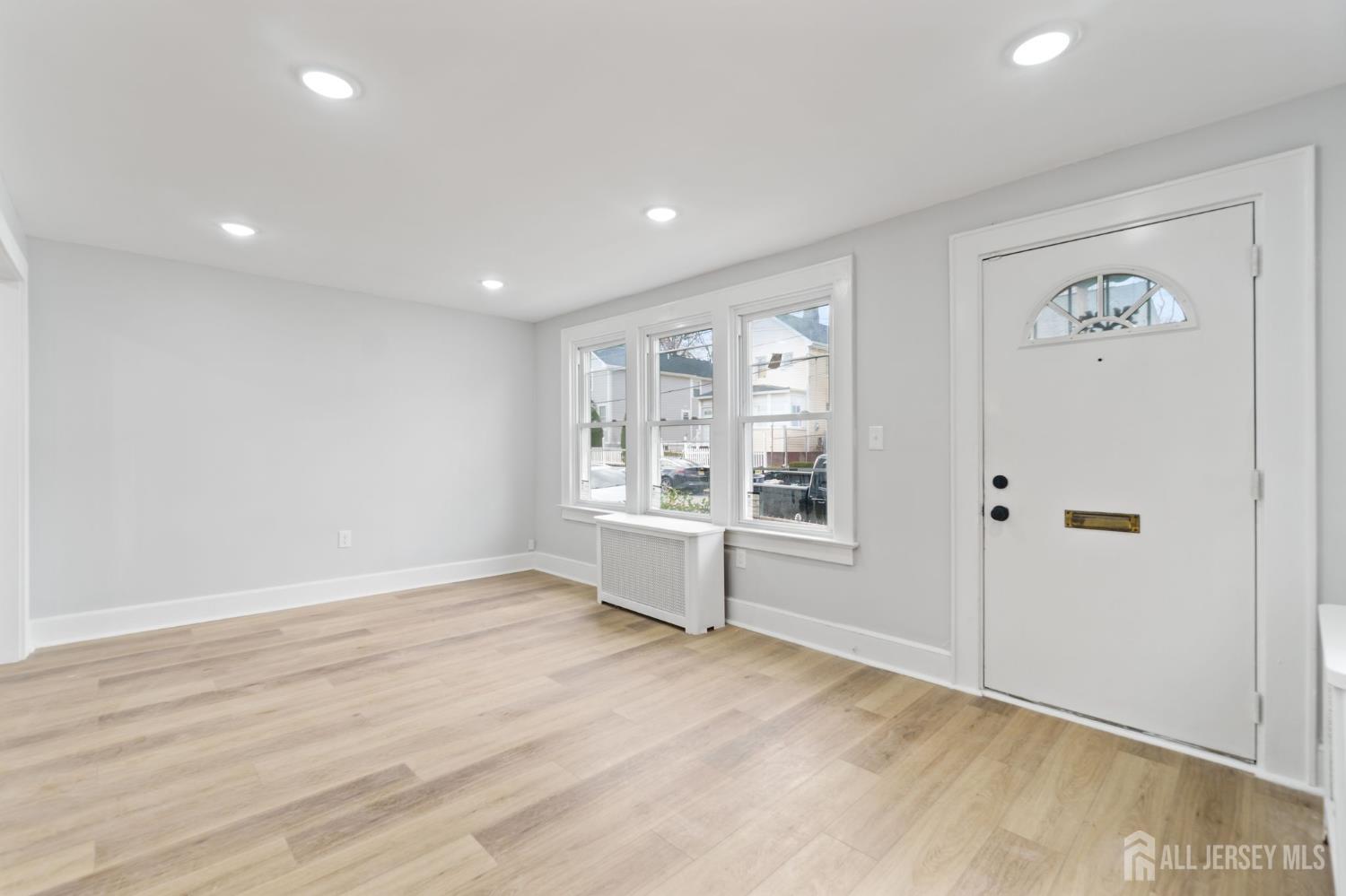 Well-lit Colonial offering 3 bedrooms and 2 full baths.The first floor includes a bright living room and dining room, along with an eat-in kitchen equipped with updated cabinetry, stainless steel appliances, and tile flooring. The second floor offers three bedrooms and a full bath. An unfinished basement provides additional storage capacity. Exterior features include aluminum siding, an asphalt-shingle roof, a detached garage, and a shared driveway. The rear yard offers usable outdoor space.