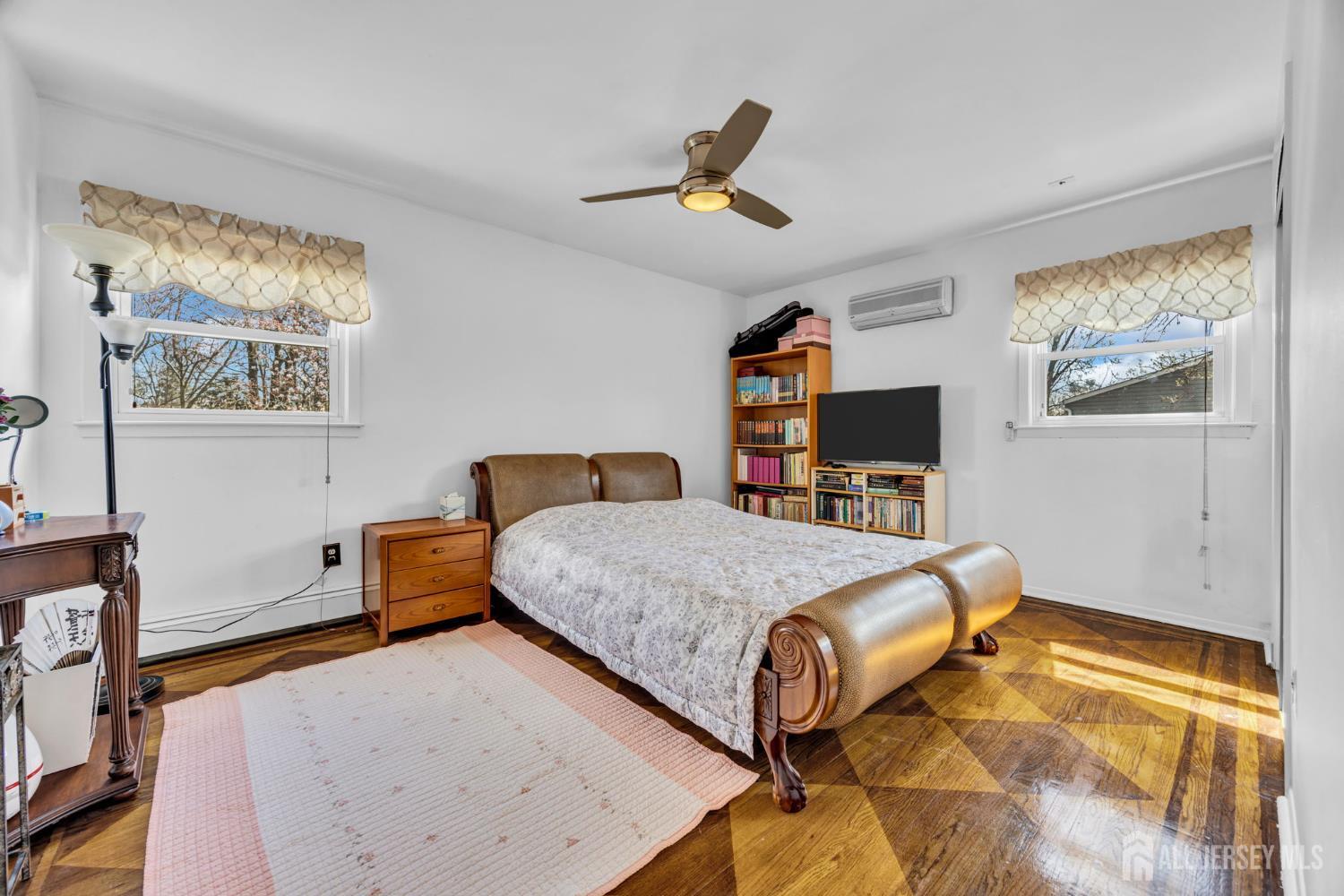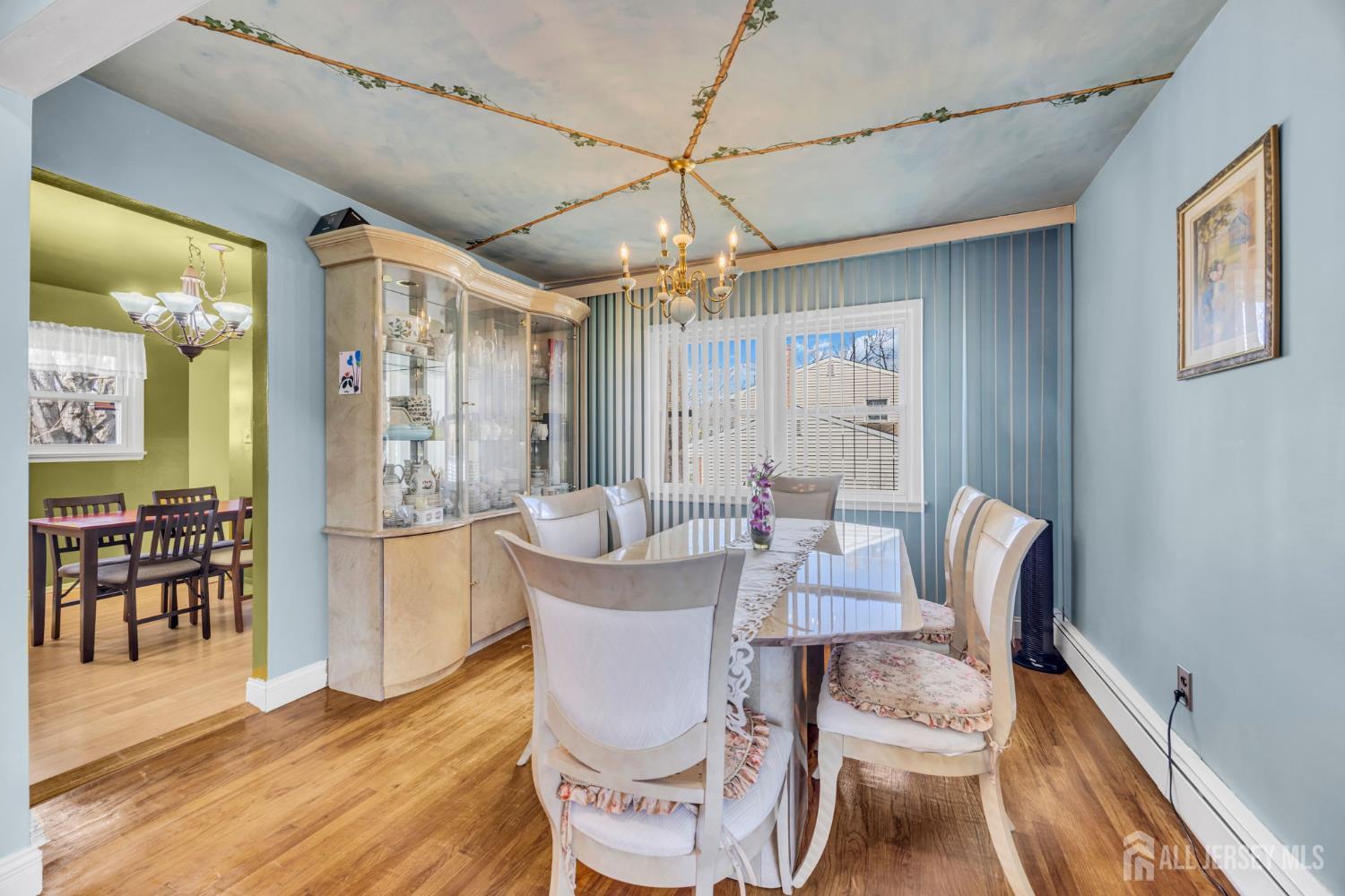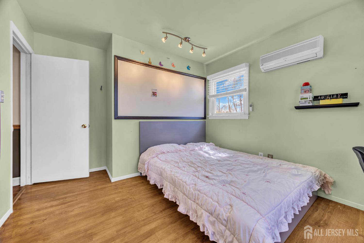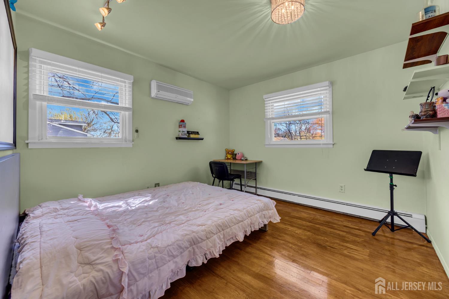 Beautifully well maintained Bilevel home sweet home with 4 bedrooms 2 full bathrooms featuring hardwood floors throughout and efficient baseboard heating along with cozy wood-burning fireplace on 1st floor. Enjoy separate wall unit AC for customizable comfort. Eat in kitchen with SS appliances, dinning room and living room with bright windows. The home is west facing, allowing for abundant natural light to fill the living space throughout the day. 1.5 car garage with 2 car wide long driveway, providing ample space for parking and storage. Fully fenced in backyard with large patio, perfect for gathering, relaxation, or outdoor dining. The oversized 0.51 acre lot with shed provides ample space for recreation, gardening, or future possibilities. Located in a quiet neighborhood with highly desired North Edison school systems, this home offers the ideal blend of comfort, space and location.