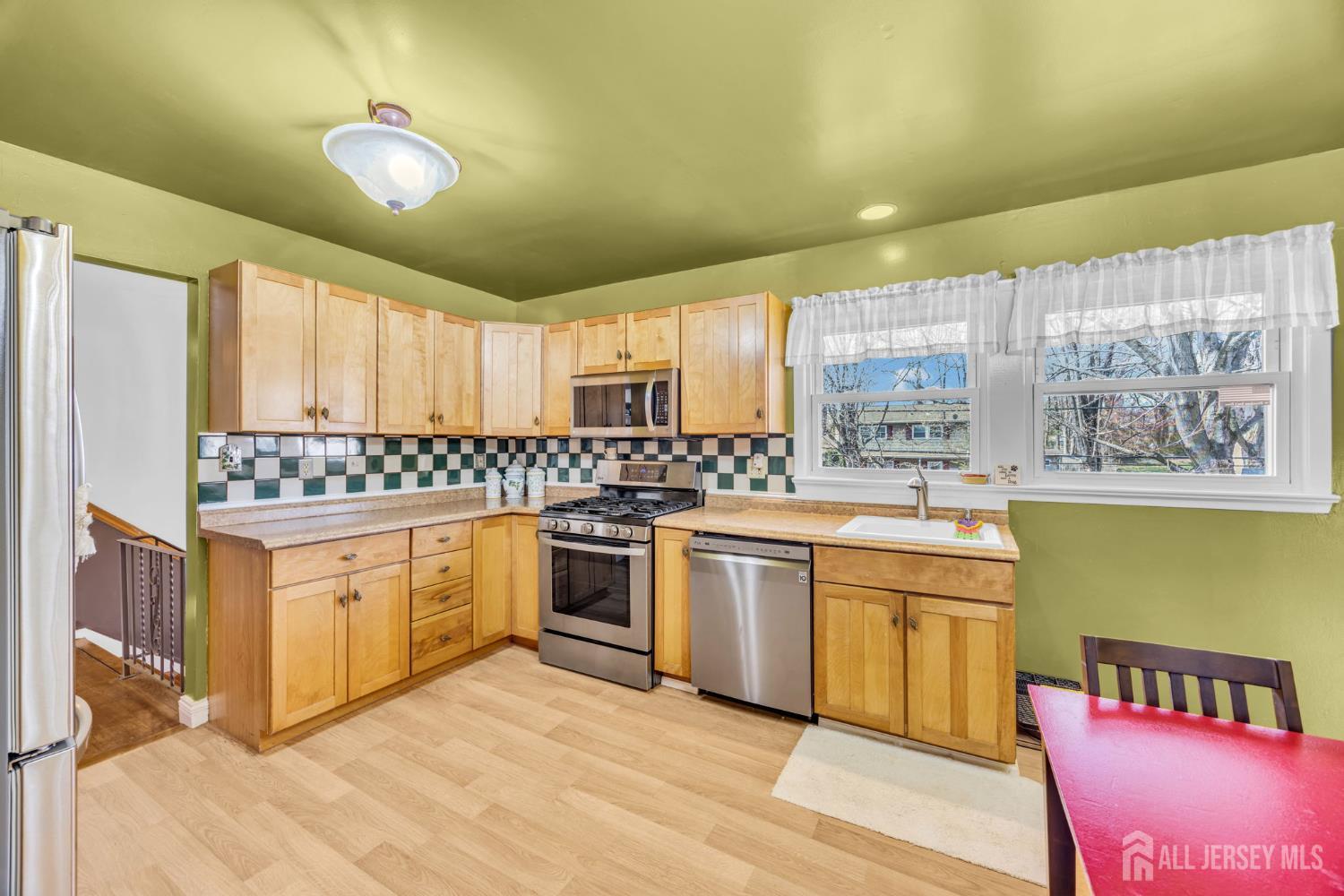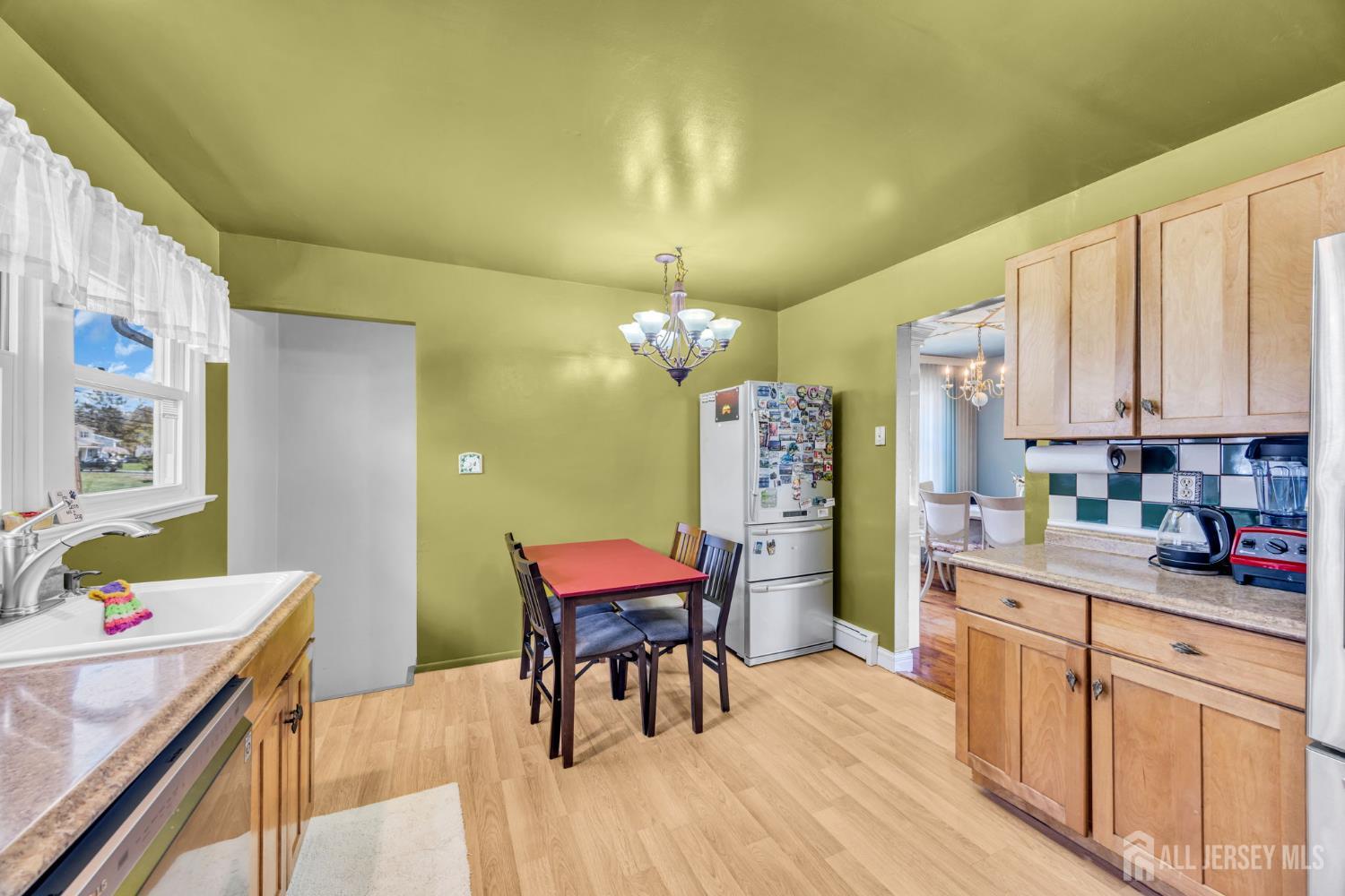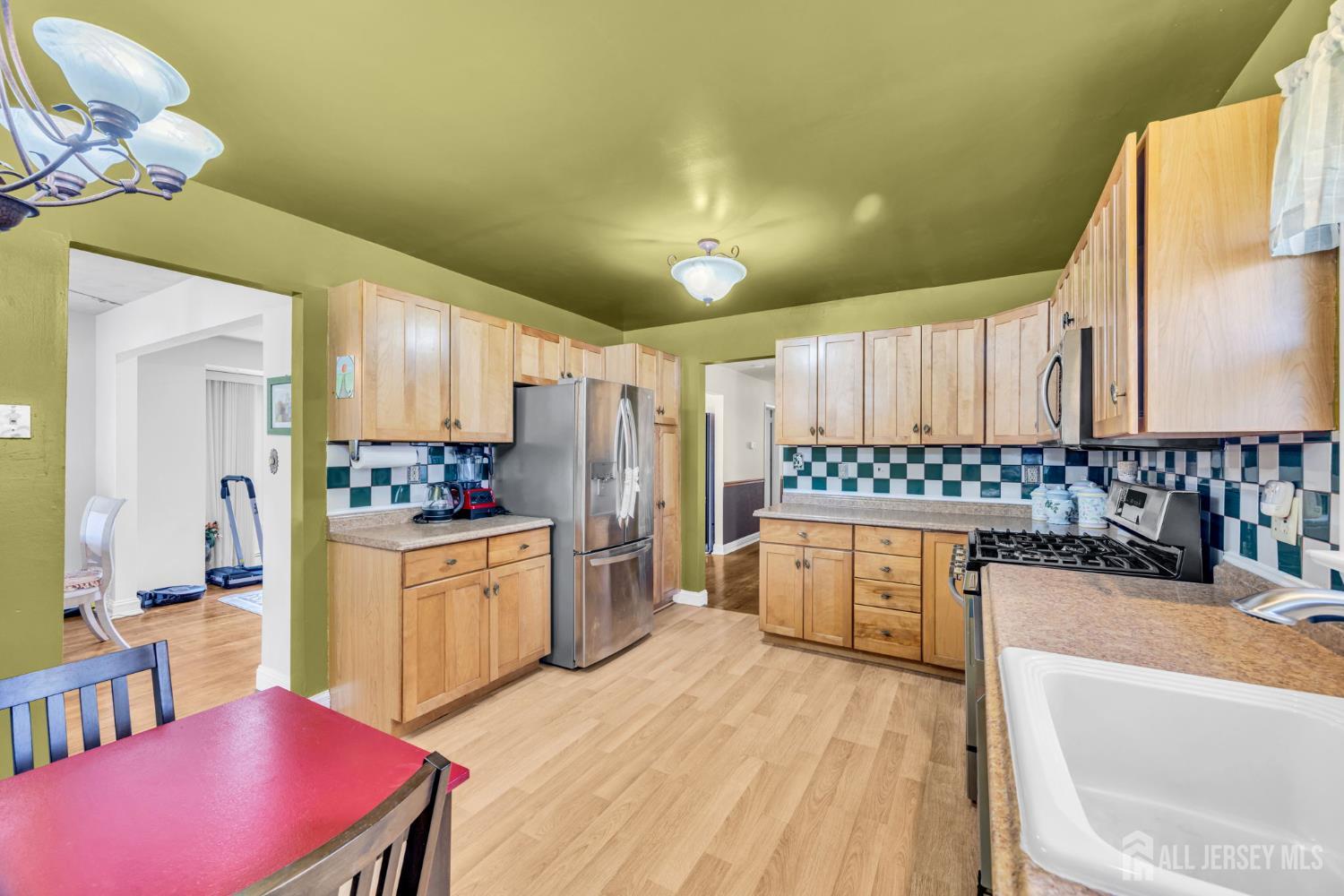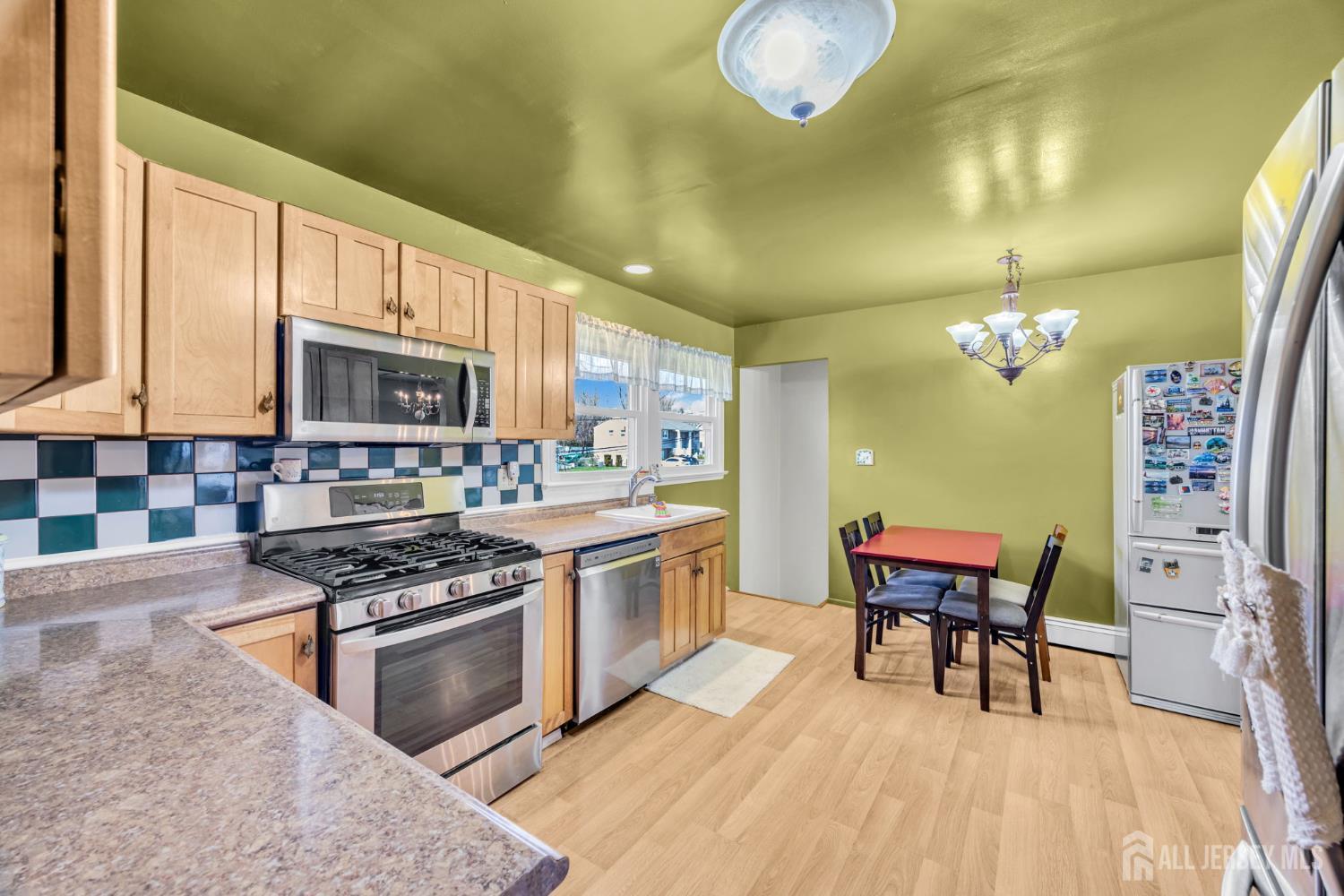 Beautifully well maintained Bilevel home sweet home with 4 bedrooms 2 full bathrooms featuring hardwood floors throughout and efficient baseboard heating along with cozy wood-burning fireplace on 1st floor. Enjoy separate wall unit AC for customizable comfort. Eat in kitchen with SS appliances, dinning room and living room with bright windows. The home is west facing, allowing for abundant natural light to fill the living space throughout the day. 1.5 car garage with 2 car wide long driveway, providing ample space for parking and storage. Fully fenced in backyard with large patio, perfect for gathering, relaxation, or outdoor dining. The oversized 0.51 acre lot with shed provides ample space for recreation, gardening, or future possibilities. Located in a quiet neighborhood with highly desired North Edison school systems, this home offers the ideal blend of comfort, space and location.