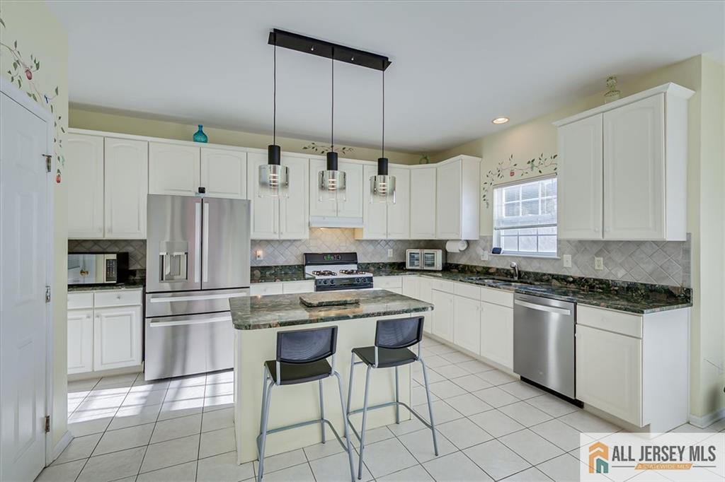 This sun-filled, northeast-facing colonial offers 4 bedrooms and 2.5 baths and is ideally set in a quiet development in the Dayton section of South Brunswick. From the moment you enter, you're welcomed by an abundance of natural light and high ceilings. The main level features a spacious dining room, living room with serene park views, a comfortable family room, half bath, and a versatile office or playroom. The spacious eat-in kitchen is equipped with a full appliance package including brand new stainless steel dishwasher, external exhaust fan, granite countertops, and a sliding door that opens to a raised paver patioperfect for indoor-outdoor living. Upstairs, the primary suite is a true retreat with tray ceilings, recessed lighting, two walk-in closets, and a private bath with both a soaking tub and stall shower. An attached bonus space provides the ideal sitting room or home office. Three additional bedrooms and a full hall bath complete the second level. The full unfinished basement offers endless potential for future living space and storage. Additional highlights include a whole-house generator and a Tesla car charger, adding both comfort and convenience to this exceptional home. Do not miss this beautiful home! Make your appointment today.