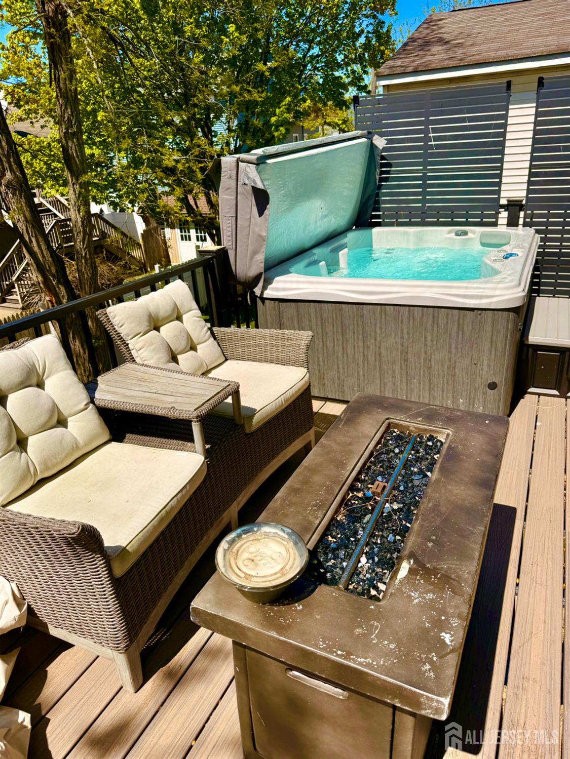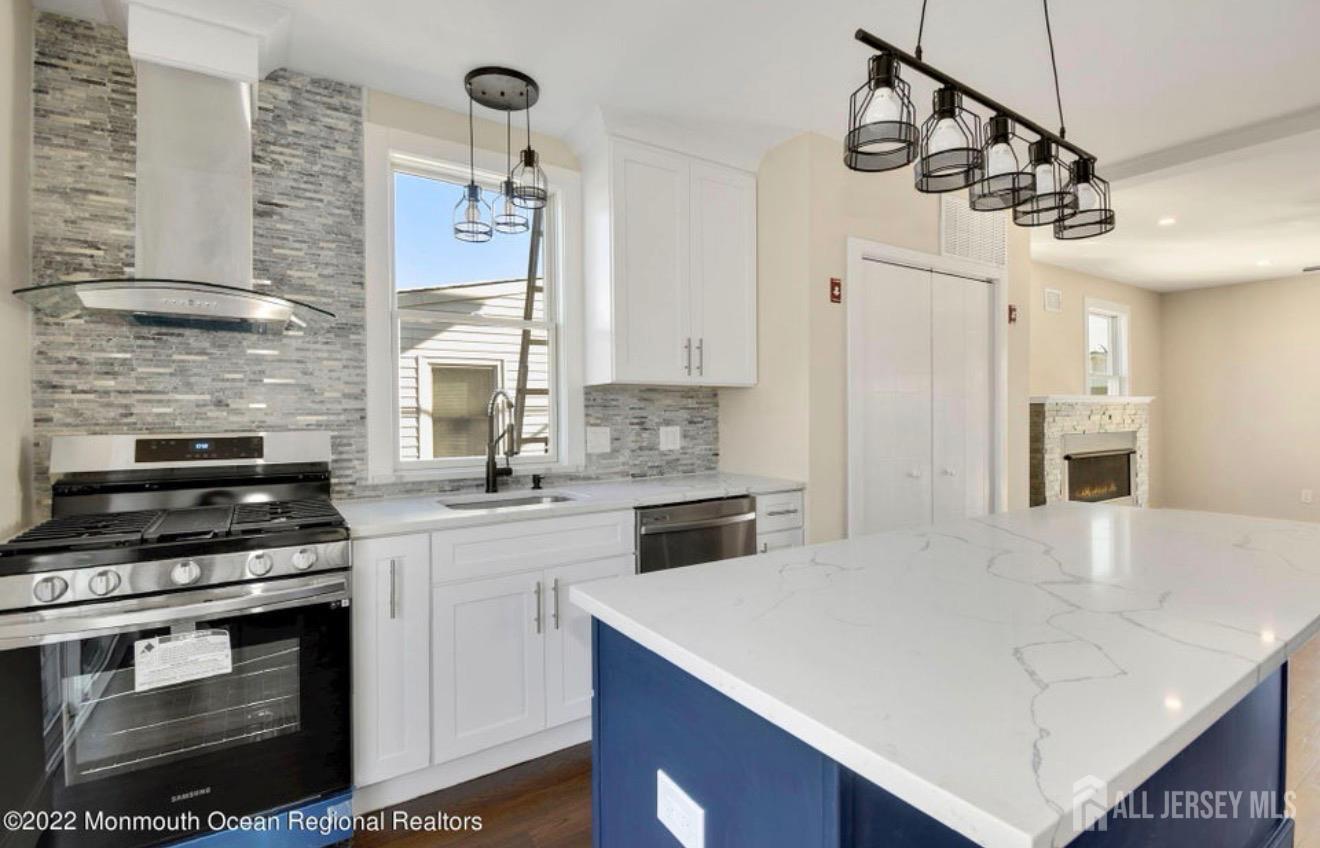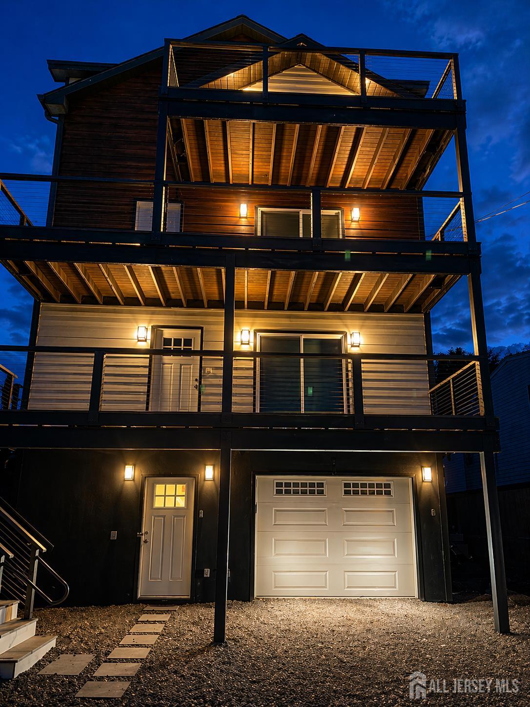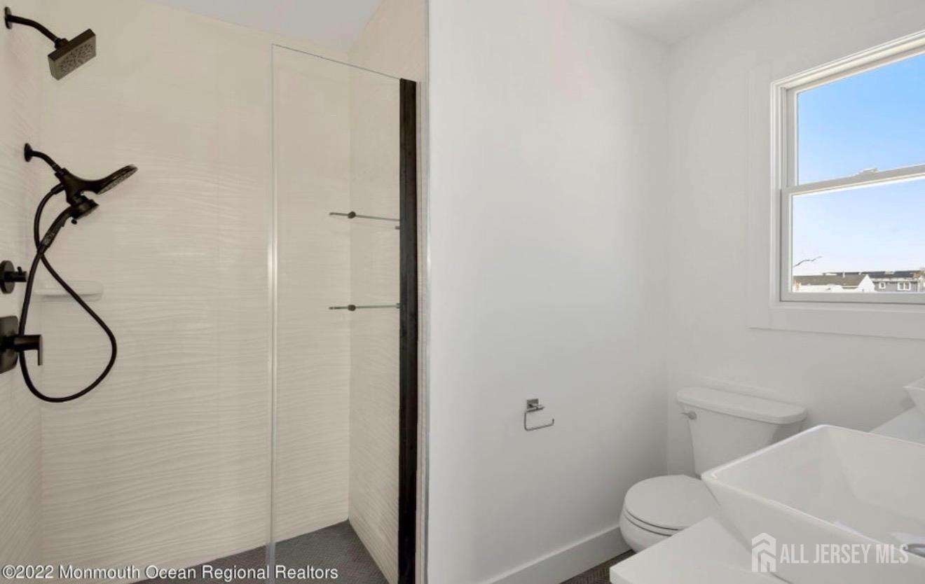 This beautiful home is only four years old, has pretty water views and offers 6 bedrooms and 3 full baths. The remaining six years of the new home warranty is transferable to new owners! The ground level door opens to a mud room with built in coat storage & large closet with access to an oversized one car garage with yard access. Head upstairs to find a well appointed kitchen with stainless appliances, quartz countertops, kitchen island and sliders to the back deck & hot tub! The family room has a cozy gas fireplace that heats the whole room & sliders to a front deck with water views & delightful breezes! There is a first floor bedroom & full bath for guests or multi generational living etc. upstairs find two more levels of beds & baths! The master deck and office has water views as well. Some other features are oak hardwood flooring throughout, Pella windows, 4 trex decks, maintenance free turf in the yard which is convenient for pets and no grass to cut. The entire outside of this home has hard wired security cameras and an alarm system. All of the televisions inside and out are included as well. Located only one block to the water, beach, marina & a few blocks to the Seastreak ferry to NYC. Highlands is a fun & vibrant town! Mosey on over to one of highland's many restaurants, listen to a live band at one of the restaurants or tiki bars or take a quick car or bike ride to Sandy Hook & Sea Bright! There is so much to do or do nothing at all at one of the many beaches in town.. Tour this beautiful home now to move in just in time to enjoy summer at the Jersey Shore!
