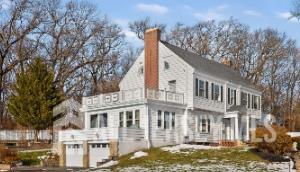 Stunning 6-bedroom, 5-bath Colonial offering 5,412 sq. ft. of refined living on 1.33 beautifully landscaped acres overlooking Woodwild Park Reservation. This elegant home features a grand foyer with sweeping staircase, hardwood floors, crown molding, and three fireplaces. The gourmet, updated kitchen showcases top-of-the-line Thermador appliances, custom cabinetry, and high-end finishes. Enjoy multiple living and entertaining spaces with French doors and classic architectural details throughout. Outdoor highlights include multiple porches and patios, two expansive second-floor decks, and a backyard oasis with an inground saltwater pool. Full basement with half bath and ample storage. A separate renovated 2-bedroom guest house with loft, central A/C, and in-unit washer/dryer adds exceptional flexibility for guests or income potential.